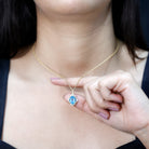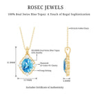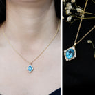 Brighten your day with the charming sparkle of this Swiss Blue Topaz Necklace. Crafted in 14k yellow gold plated silver, this Art Deco Necklace brings a vintage inspired style to life with its graceful curves and elegant glow. At the center sits a gorgeous 8X10 MM oval shaped Swiss Blue Topaz, held securely in prong setting. Surrounding the center stone is a beautiful lab grown diamond halo, with larger diamonds placed at each side, creating a floral-like frame. These sparkly stones add just the right amount of brilliance and make the design feel timeless and romantic. The Vintage Oval Locket hangs from a sleek chain that drapes naturally along your neckline, perfect for both everyday wear and special moments. The AAA quality Swiss Blue Topaz and EF-VS quality lab grown diamonds make this piece not just pretty, but also long-lasting. A great gift for birthdays, Valentines Day, Mothers Day, Christmas, New Year, or simply treating yourself, especially for those who adore December birthstones. It arrives ready to gift in a beautiful jewelry box, making it easy to share joy with someone you love, or to keep for your own collection.