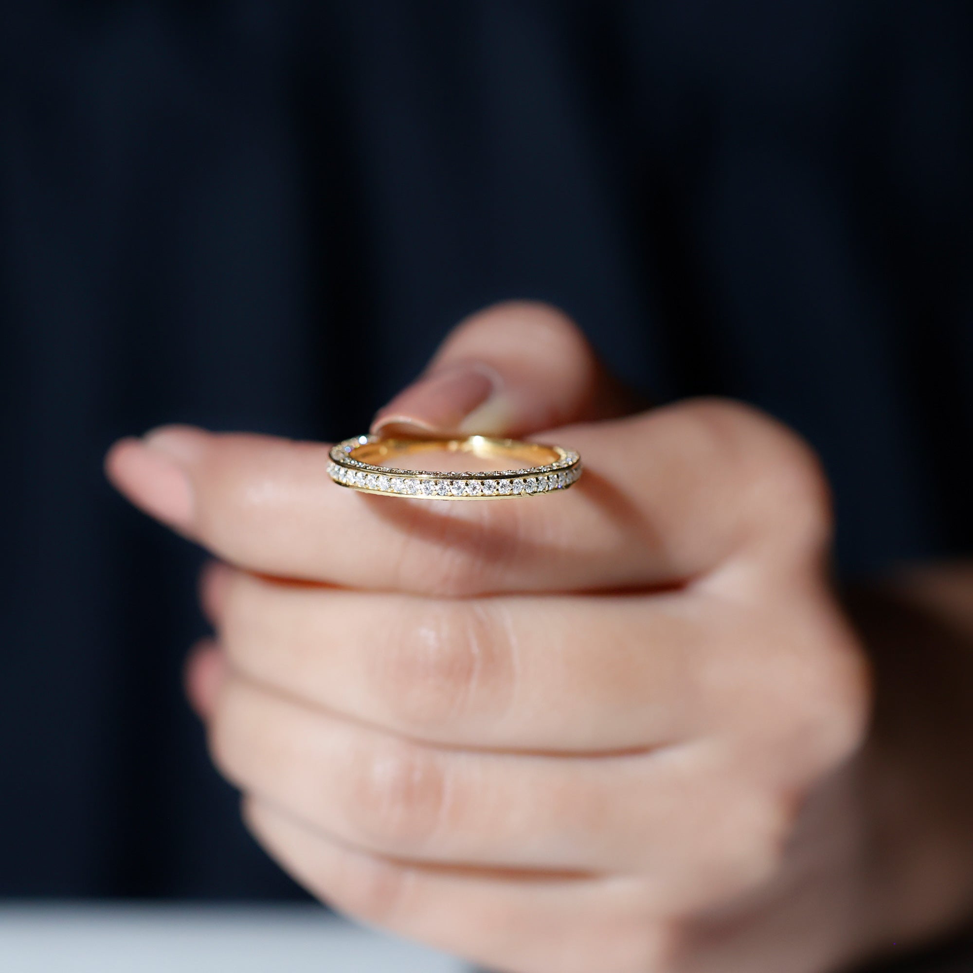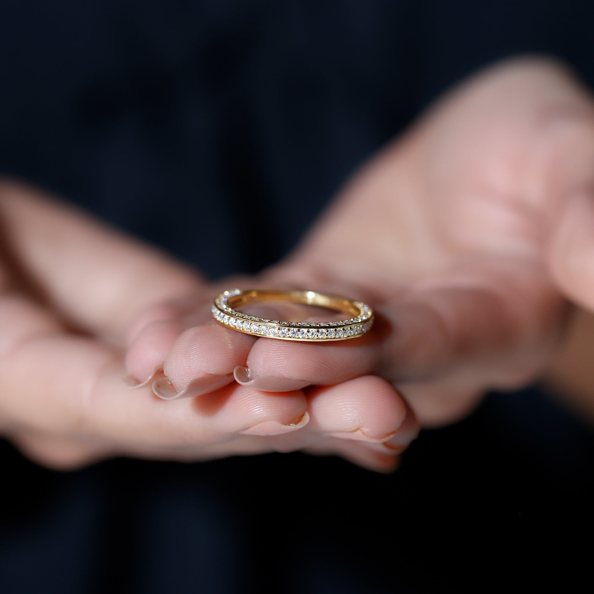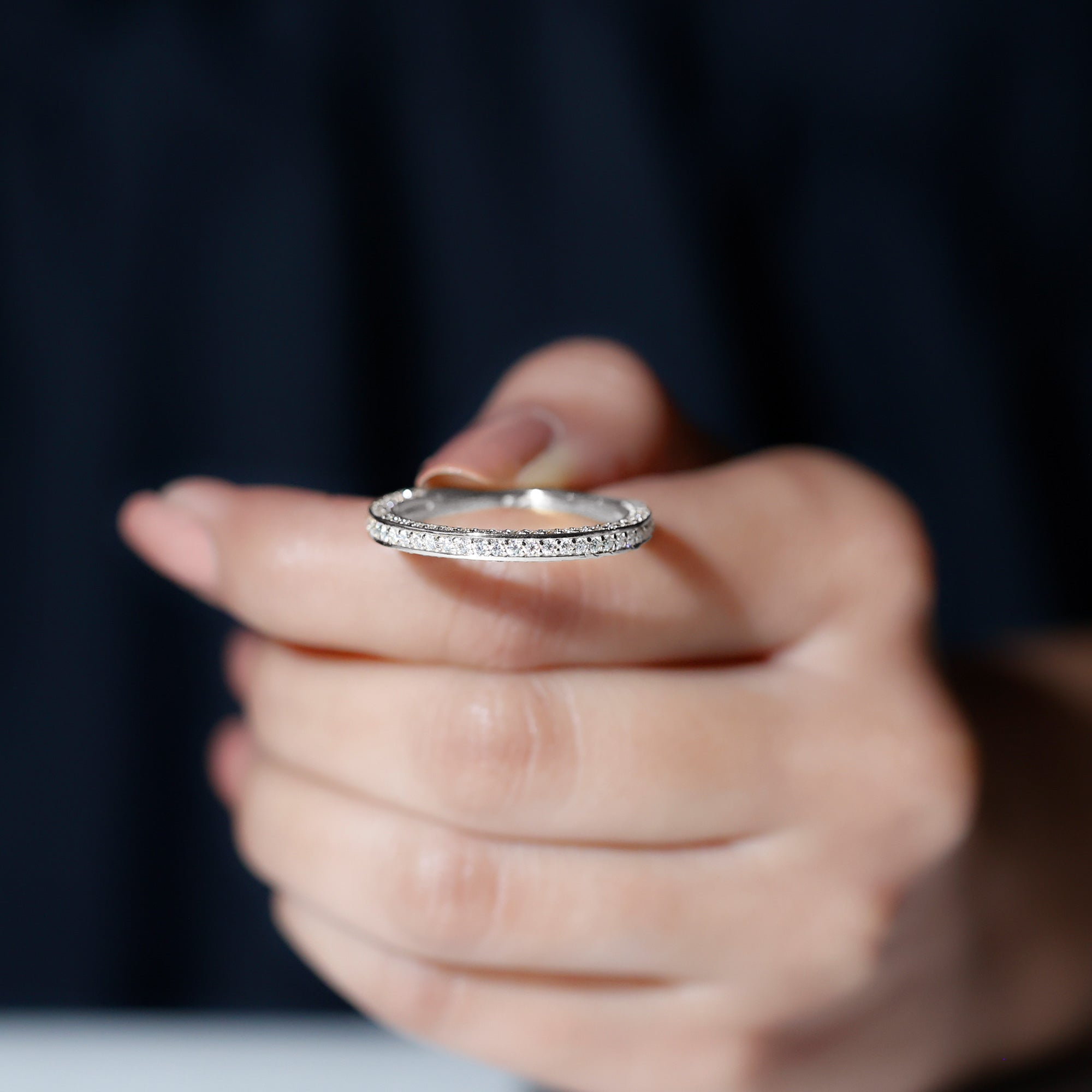 Celebrate love with a sparkle that lasts forever. This Moissanite Half Eternity Ring blends classic charm with modern elegance, designed to honor your love story with brilliance that never fades. Set with D-VS1 quality round cut moissanite stones on three sides of the band in surface prong setting, it captures light from every angle, creating a stunning display of fire and beauty. Whether worn solo for a refined, minimal look or stacked with your favorite rings for added impact, this piece transitions effortlessly from everyday elegance to special occasion glam. Thoughtfully crafted for both comfort and style, the Eternity Wedding Band offers a smooth, secure fit that feels as good as it looks. Available in multiple sizes, its easy to find the perfect fit for you or your loved one. Arriving in a signature jewelry box, this Wedding Anniversary Ring is a meaningful gift for anniversaries, proposals, milestones, or simply because she deserves something special. More than an accessory, this Moissanite Stackable Ring is a daily reminder of connection, commitment, and celebration. With its dazzling presence and thoughtful craftsmanship, this Moissanite Eternity Band is a beautiful way to mark life’s most cherished moments.