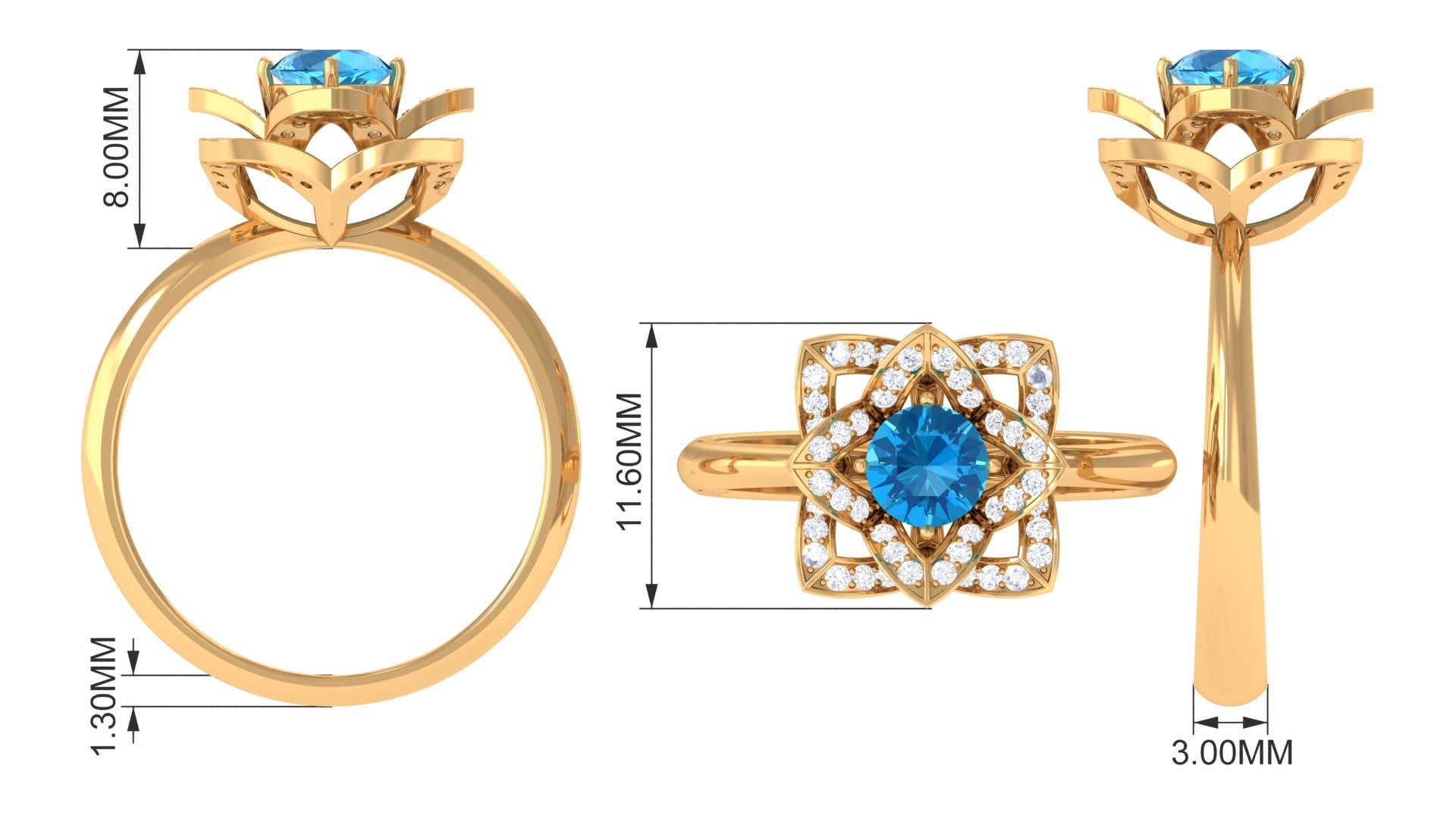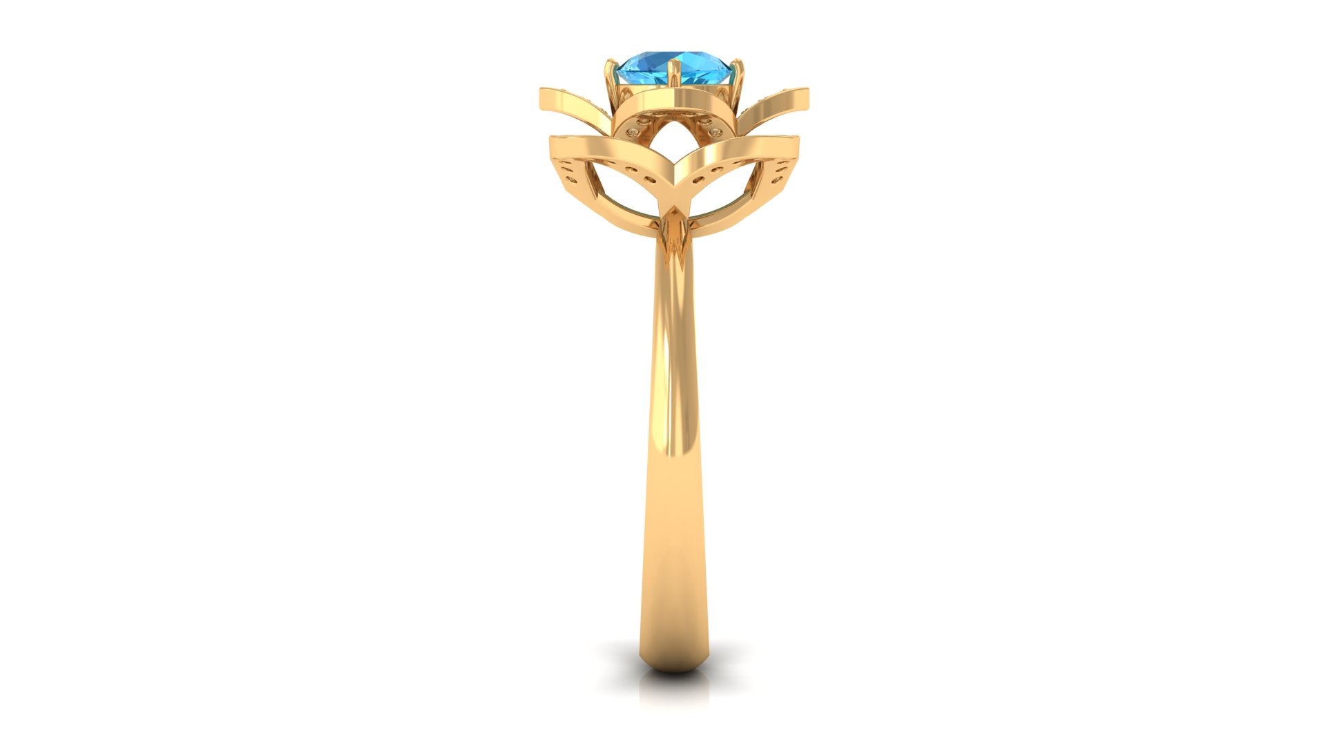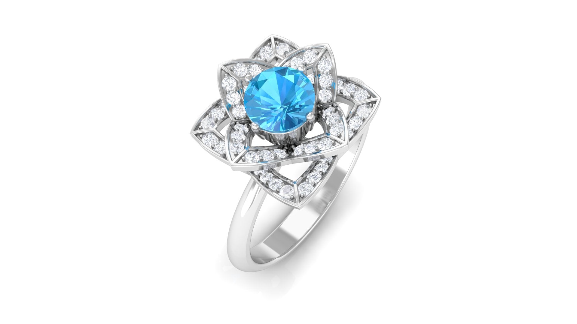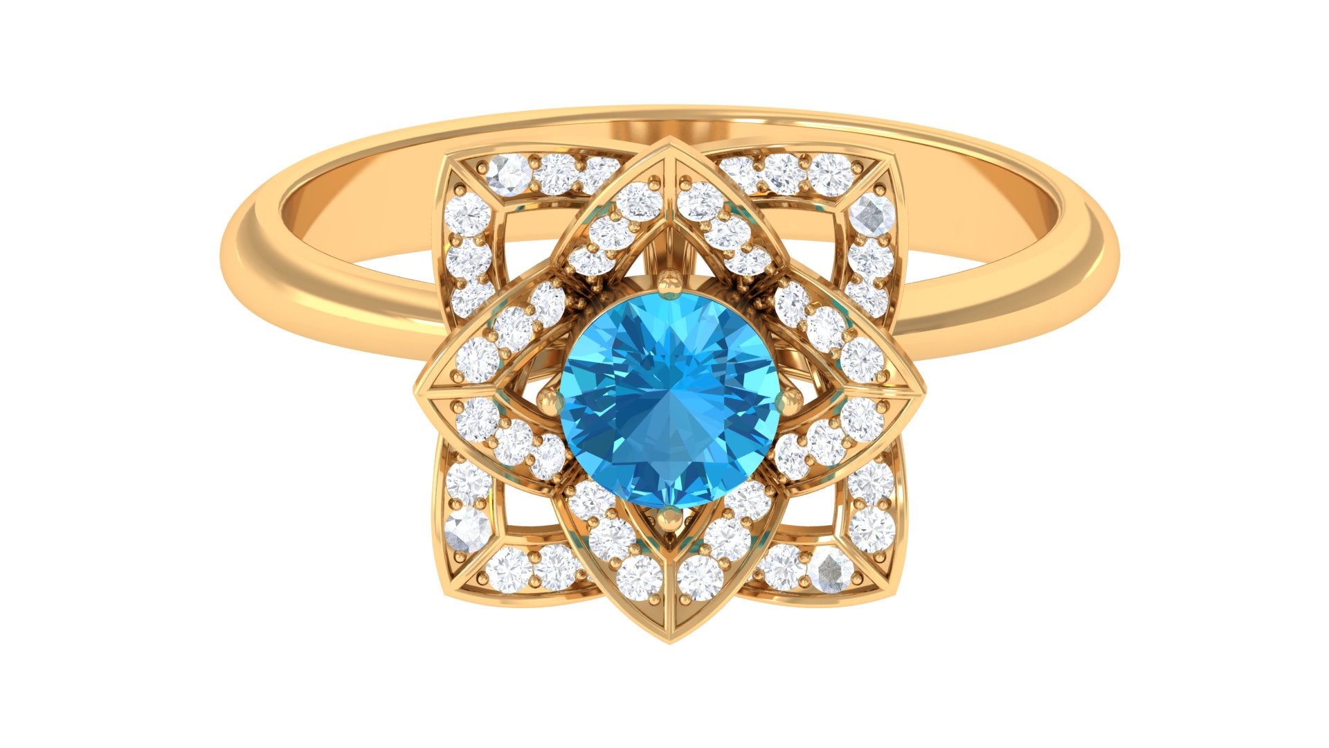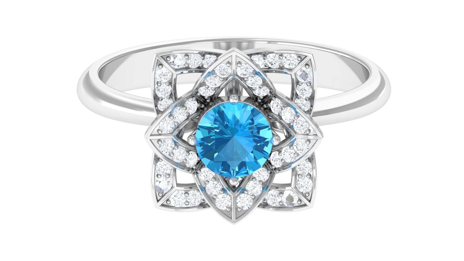 This Floral Engagement Ring is adorned with Round Shape Swiss Blue Topaz and Diamond in Accents. The 5 MM Swiss Blue Topaz Ring will be a unique present for a woman to make her feel happy.