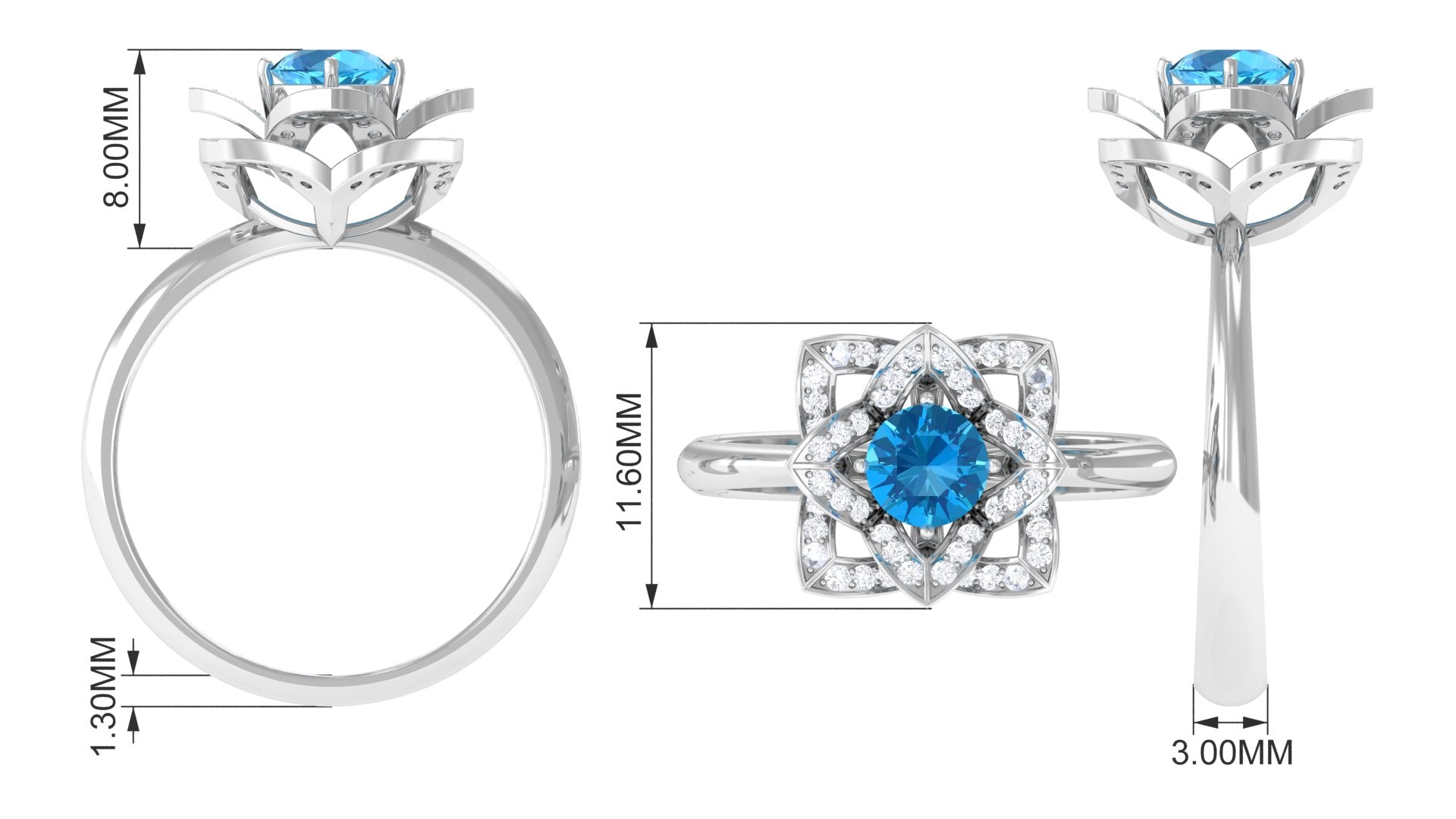Swiss Blue Topaz and Diamond Floral Engagement Ring