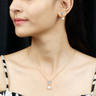 This Drop Pendant Necklace and Earring Set is embellished with Freshwater Pearl set as Drop, the Pear Cut Swiss Blue Topaz in Prong Setting and Diamond makes it an alluring piece to wear. Swiss Blue Topaz - Brilliant Cut Swiss Blue Topaz Gemstone exhibits AAA Quality and possess vibrant color. Semi-Precious December Birthstone summons prosperity and wealth. It is Natural and Certified, helps in bringing abundance, joy, and perfection to the wearer. Its Durability and Luster is enhanced by Heat and Irradiated Treatment, to further make it a captivating and desirable gem. Freshwater Pearl - Freshwater Pearl exhibits AAA Quality and possess subtle color. Semi Precious June Birthstone summons faith and innocence. It is Natural and Certified, helps in enhancing personal integrity and grow sincerity of the wearer. The extremely durable nature and luster makes it a captivating and desirable gem. HI-SI Quality exhibited by Brilliant Cut Diamond give justice to its incredible value. Diamond summons beauty, attractiveness and unbreakable love. It is Certified and helps in bringing success and luxury to the wearer.