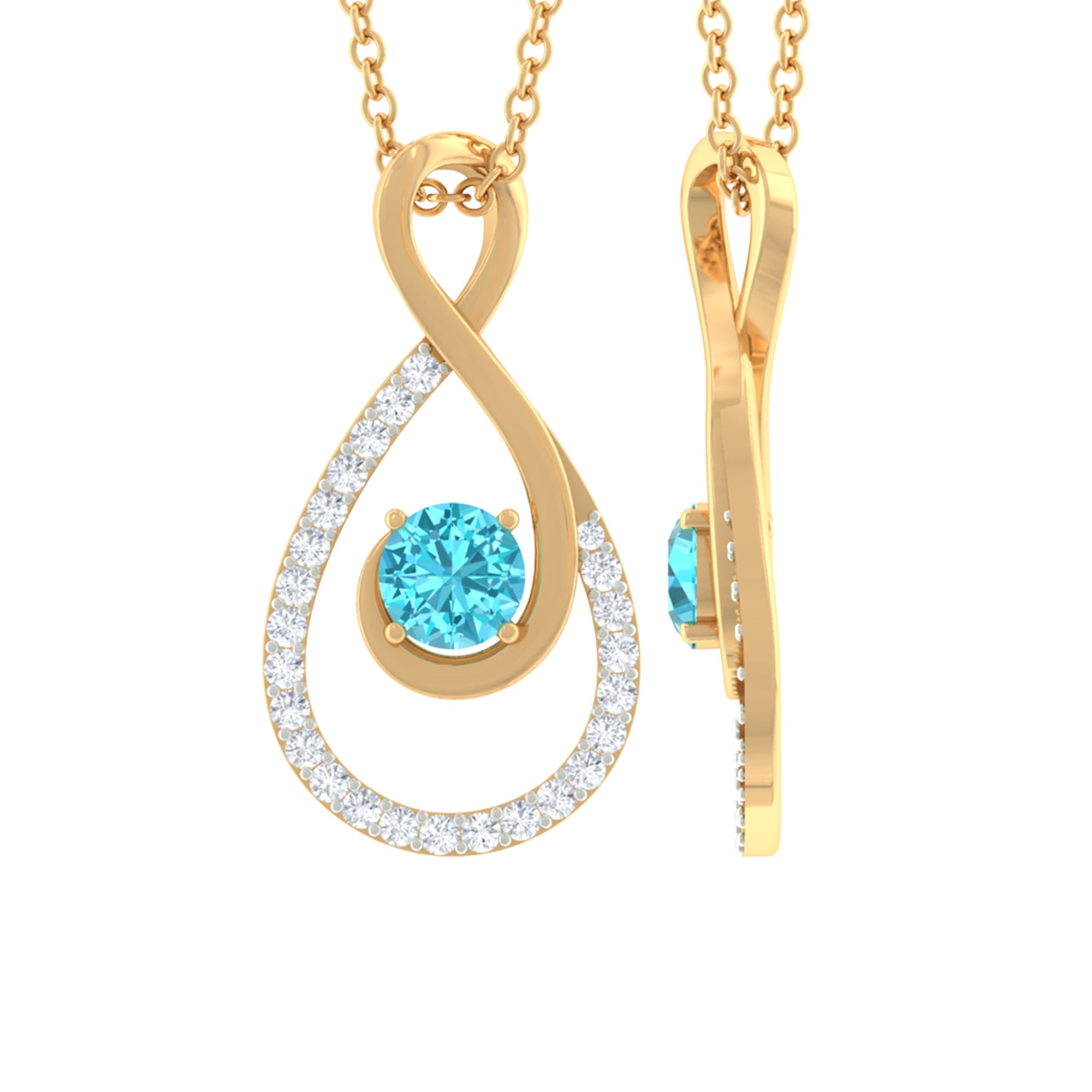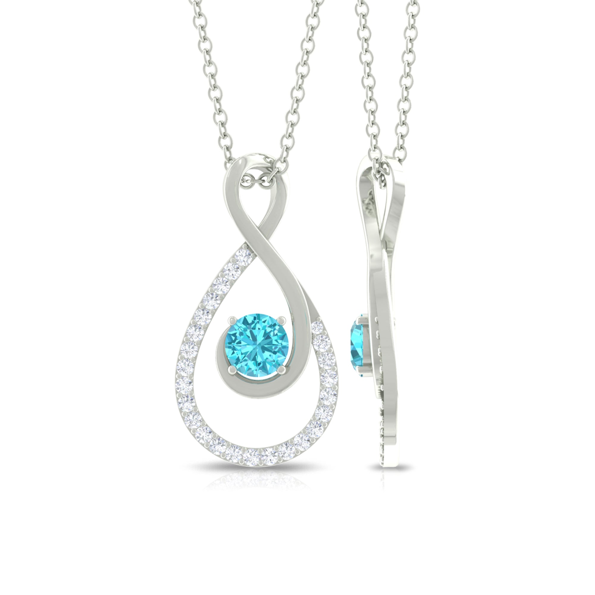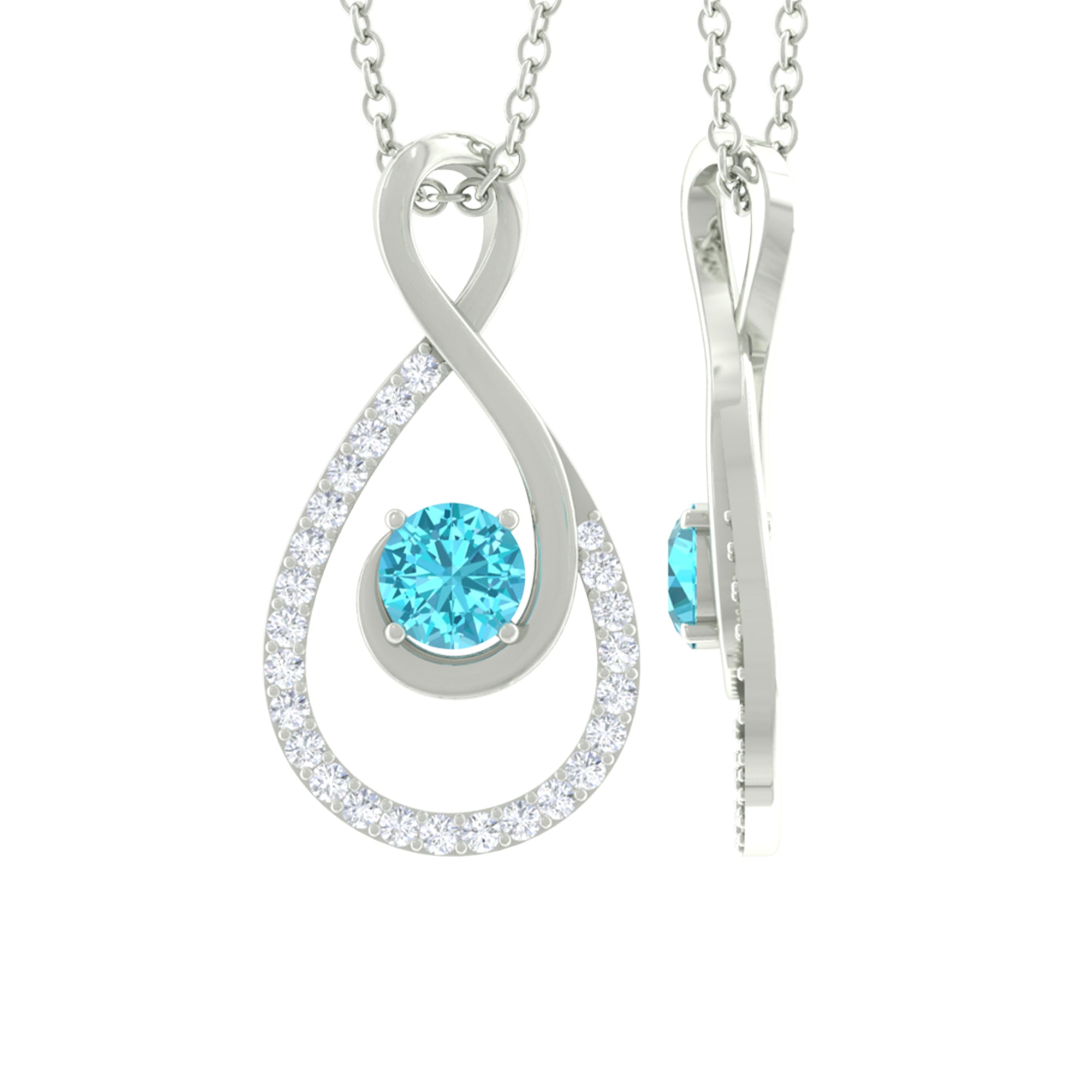 Experience the captivating beauty of the Infinity Pendant Necklace, where a sparkling Solitaire Swiss Blue Topaz gracefully dances at its center. Surrounding this stunning Swiss Blue Topaz, brilliant Round Diamond is elegantly encased, enhancing the shimmer and elegance of the Teardrop Pendant Necklace. It serves as a perfect gift for your special person on Valentines Day or your anniversary, showcasing your love and appreciation. Embrace the allure of this gorgeous piece, and let it be a symbol of your enduring affection and timeless style.