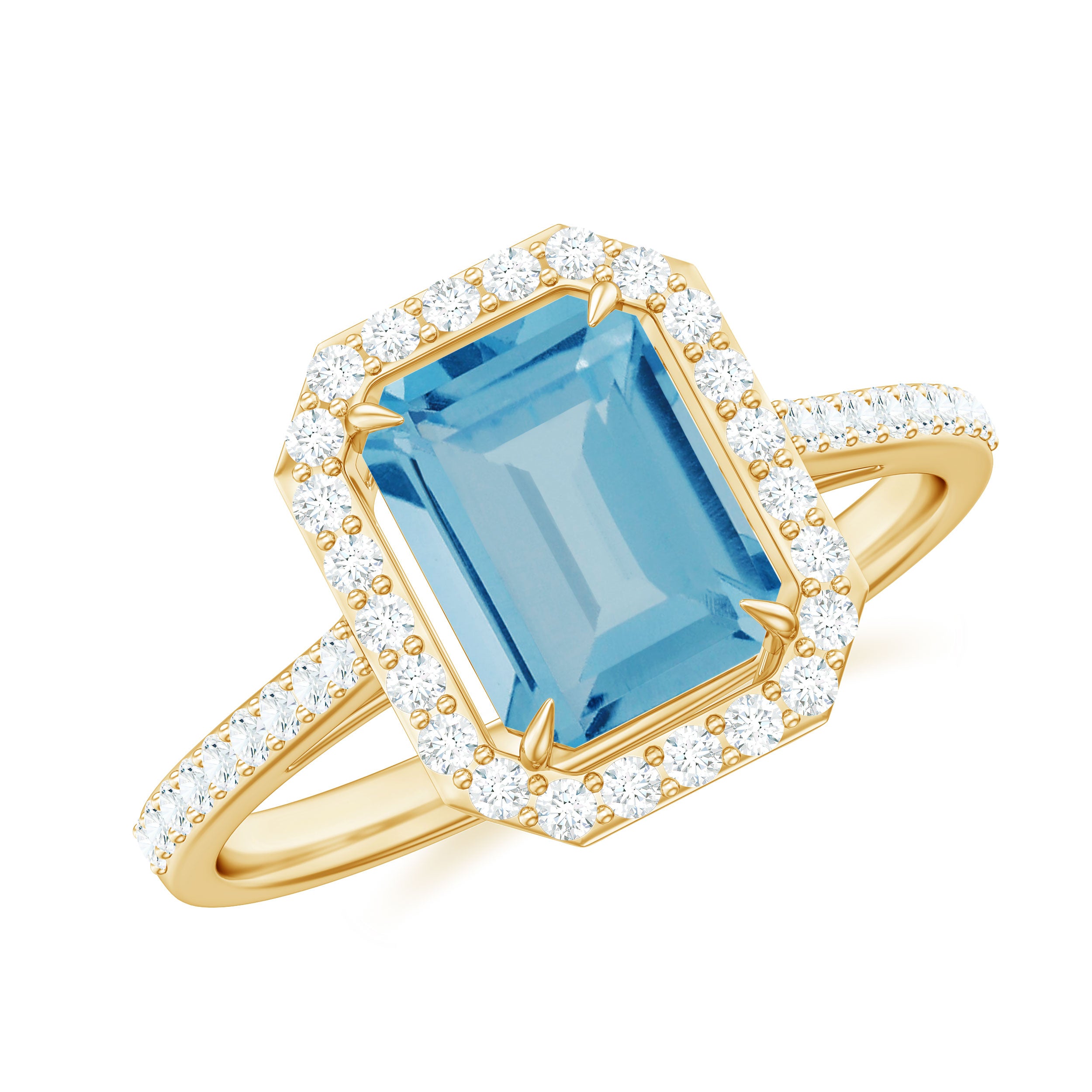Swiss Blue Topaz Engagement Ring with Diamond Halo