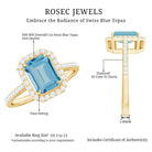 Celebrate loves brilliance with this Swiss Blue Topaz Engagement Ring embraced by a dazzling Diamond halo, a radiant symbol of everlasting devotion.