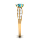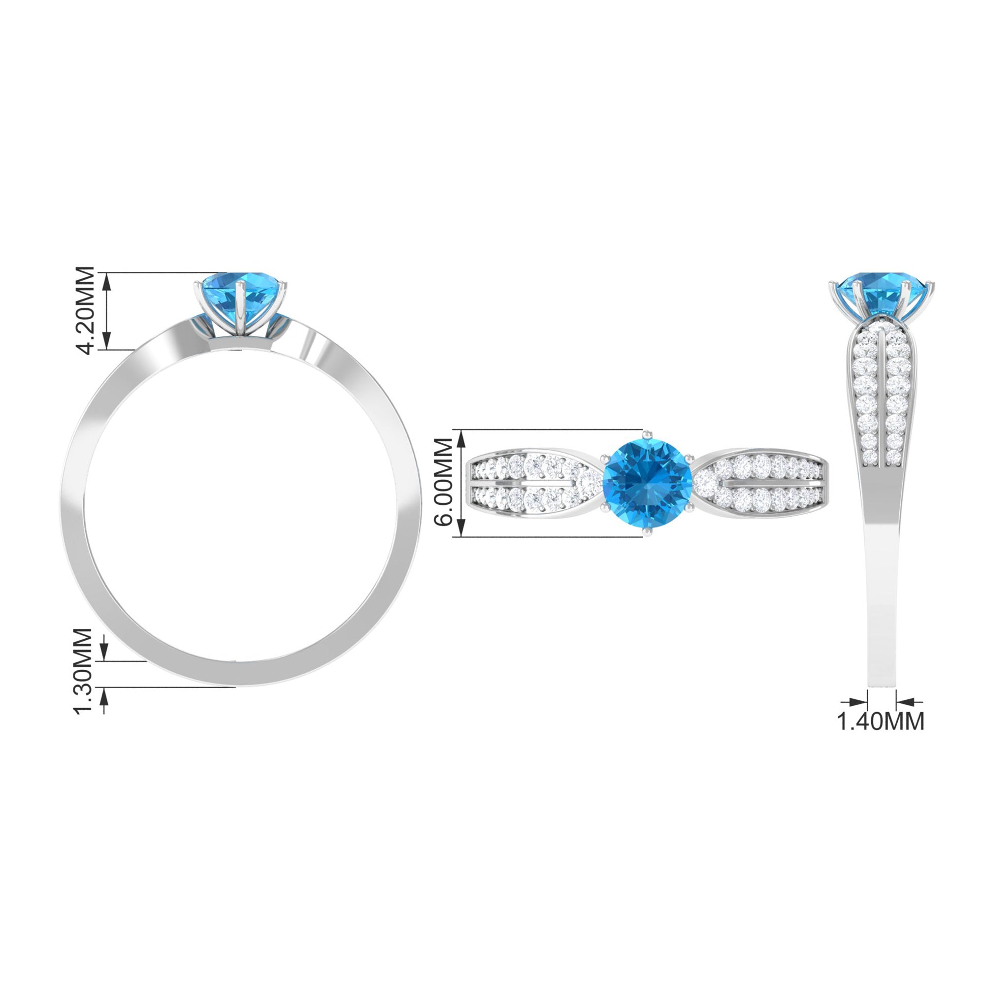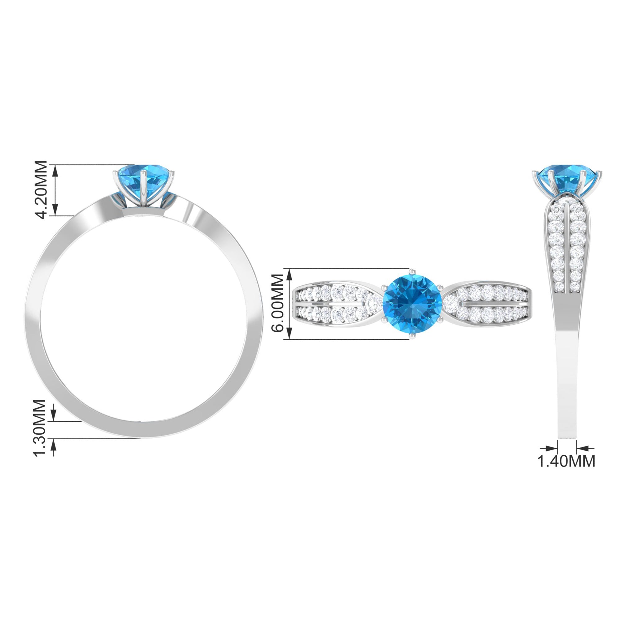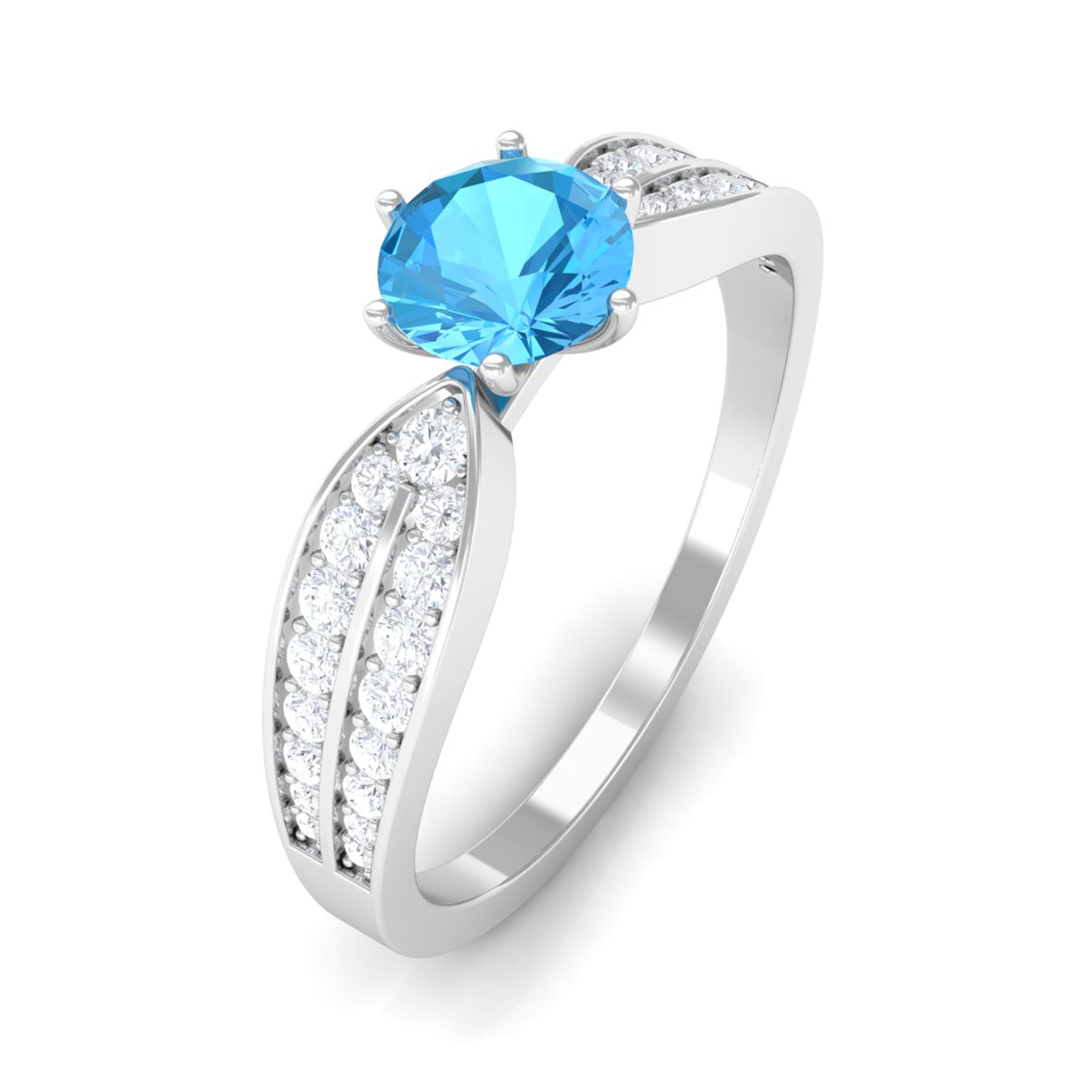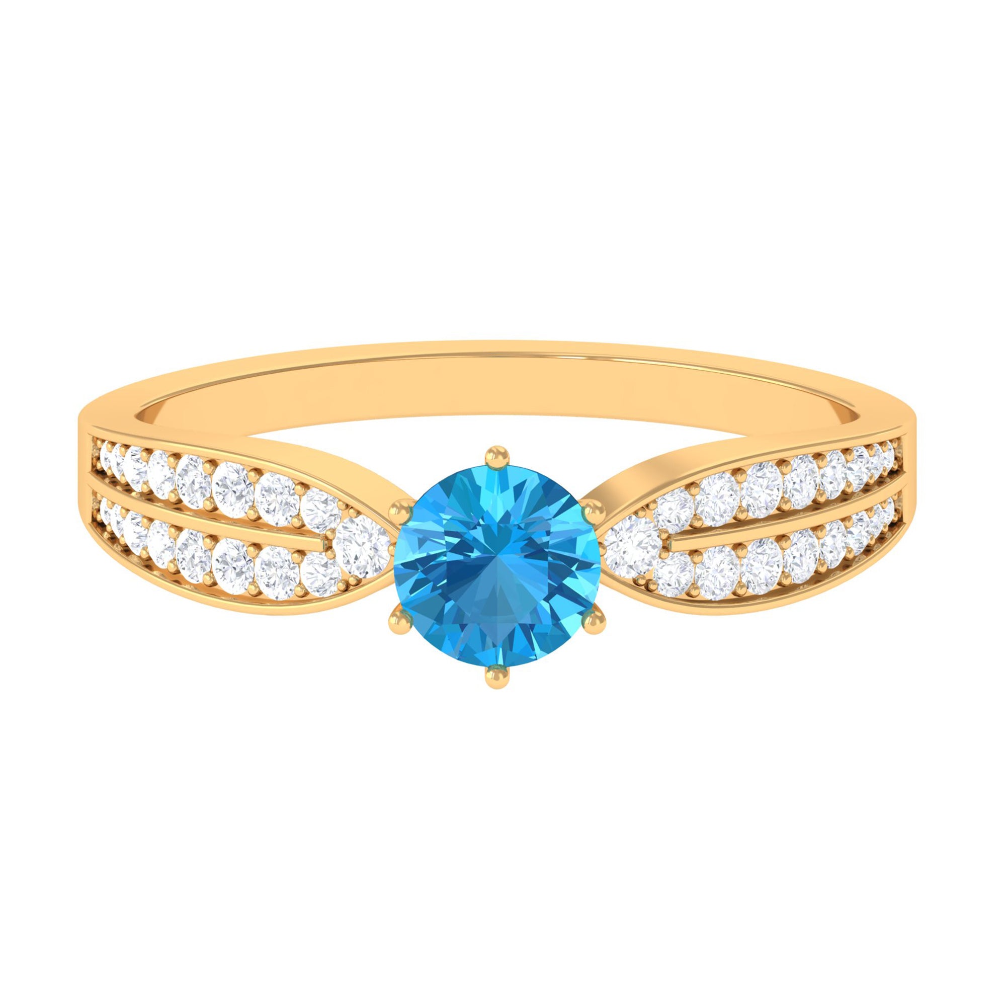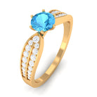 Make her feel special with this Engagement Ring is embellished with Round Shape Swiss Blue Topaz is set as a solitaire in a 6 prong setting and round shape Diamond as side stones.