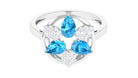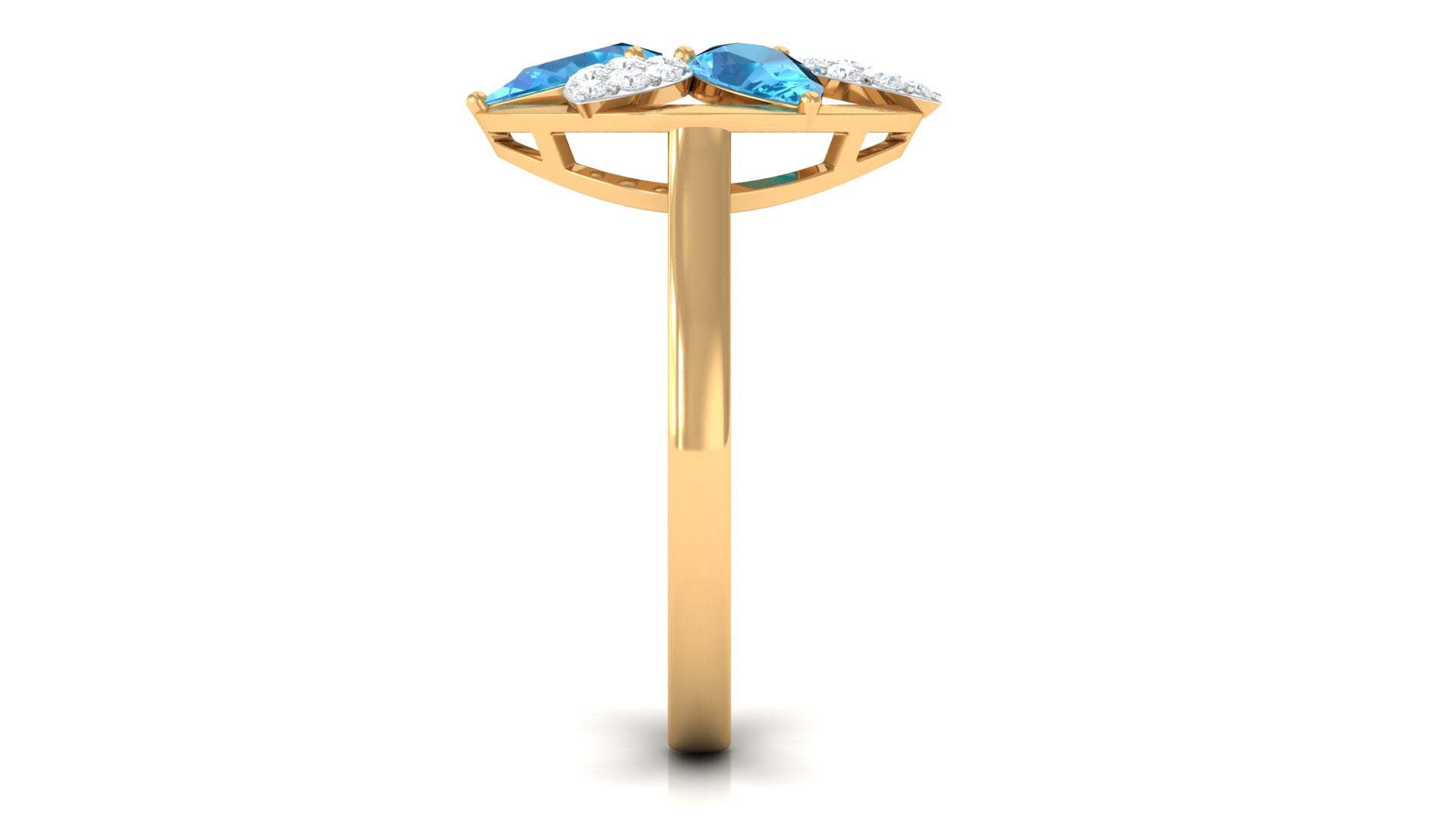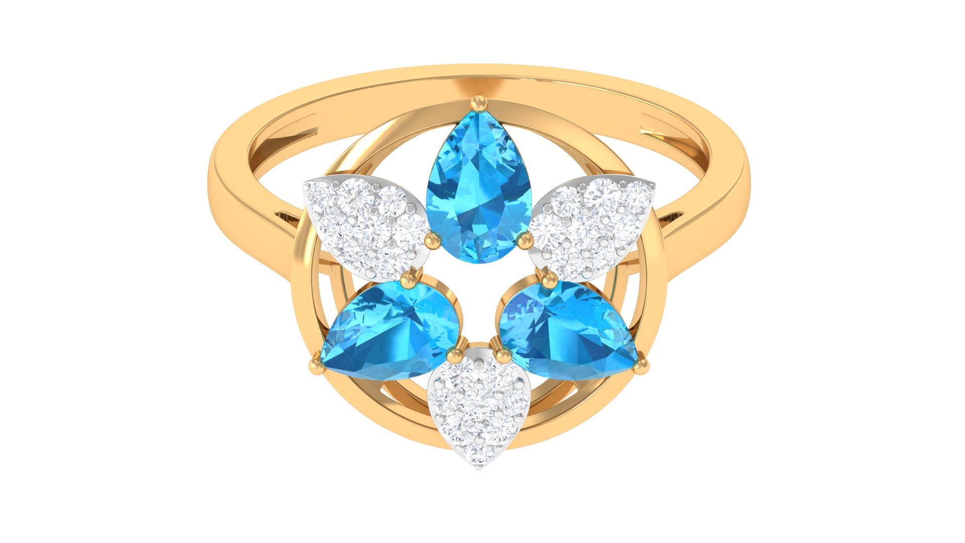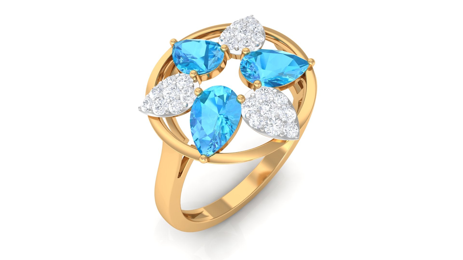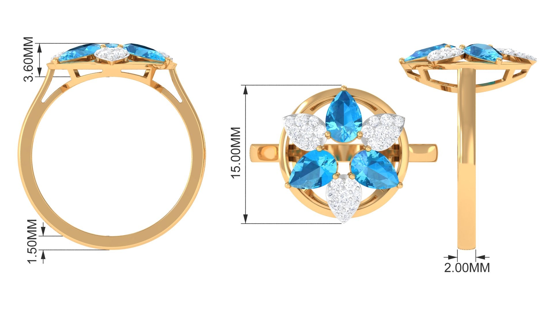 Swiss Blue Topaz Floral Cocktail Ring with Diamond