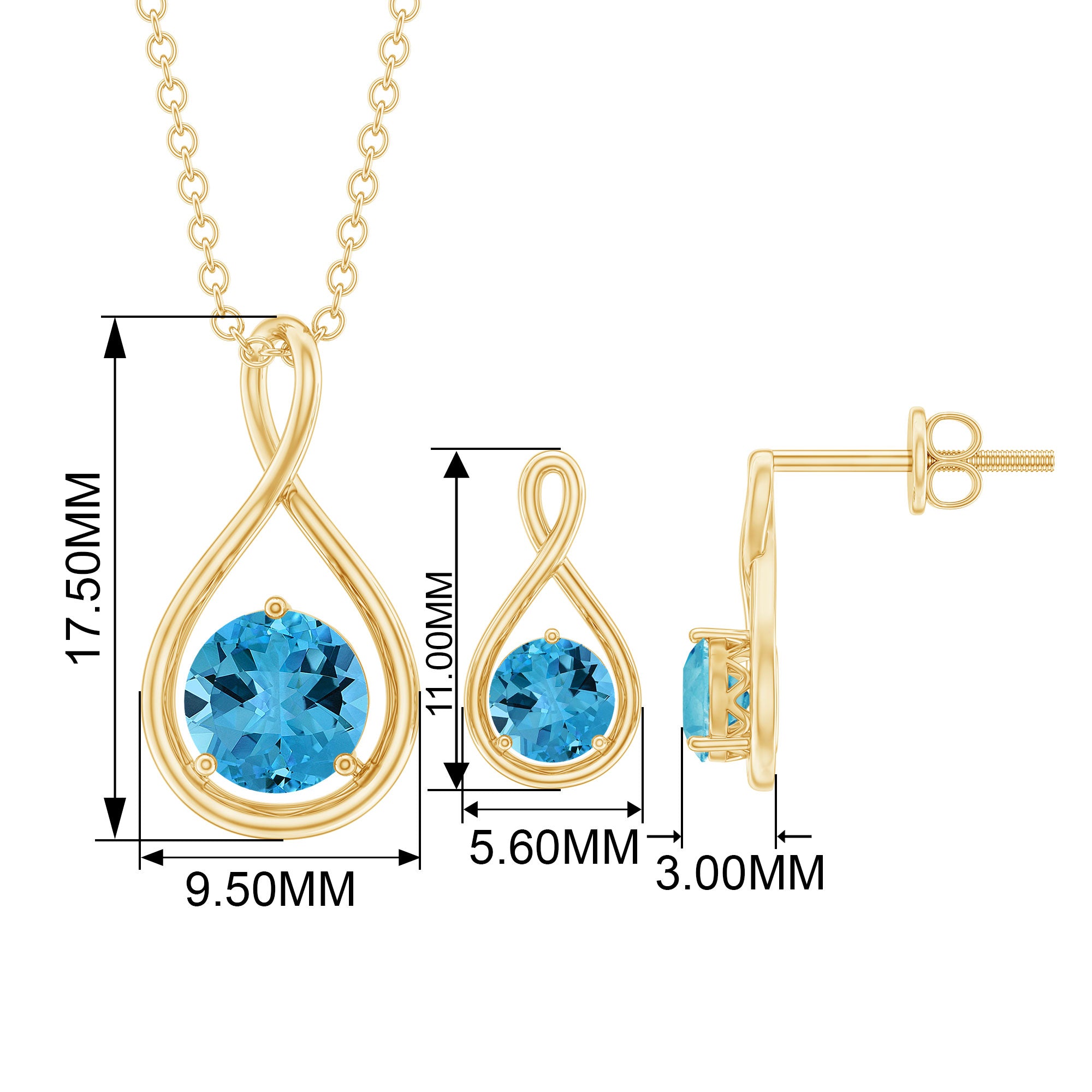 Swiss Blue Topaz Solitaire Pendant and Earring Set with Infinity Design
