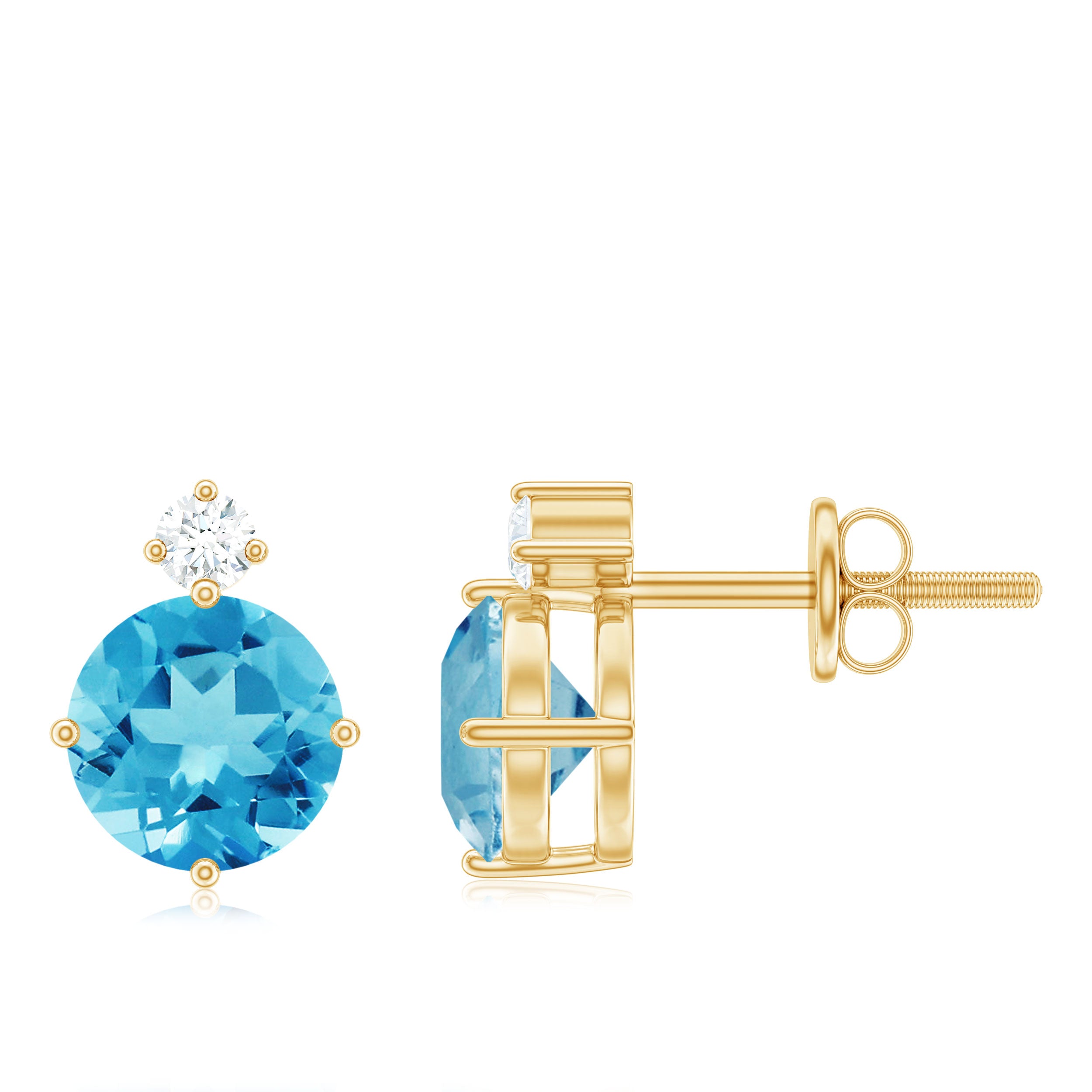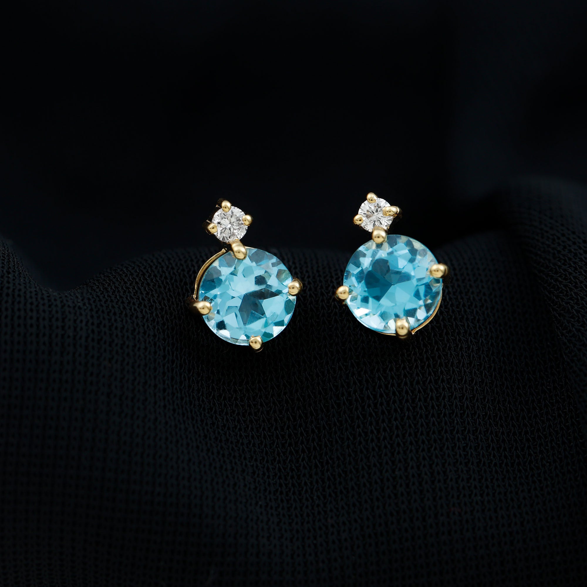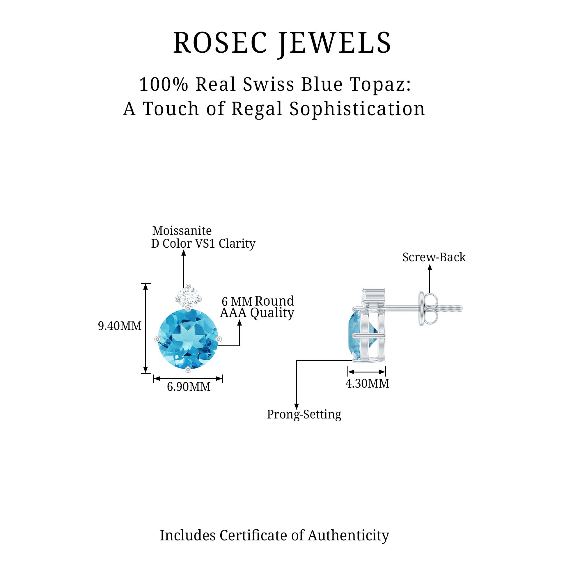 Swiss Blue Topaz Solitaire Stud Earrings with Moissanite