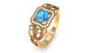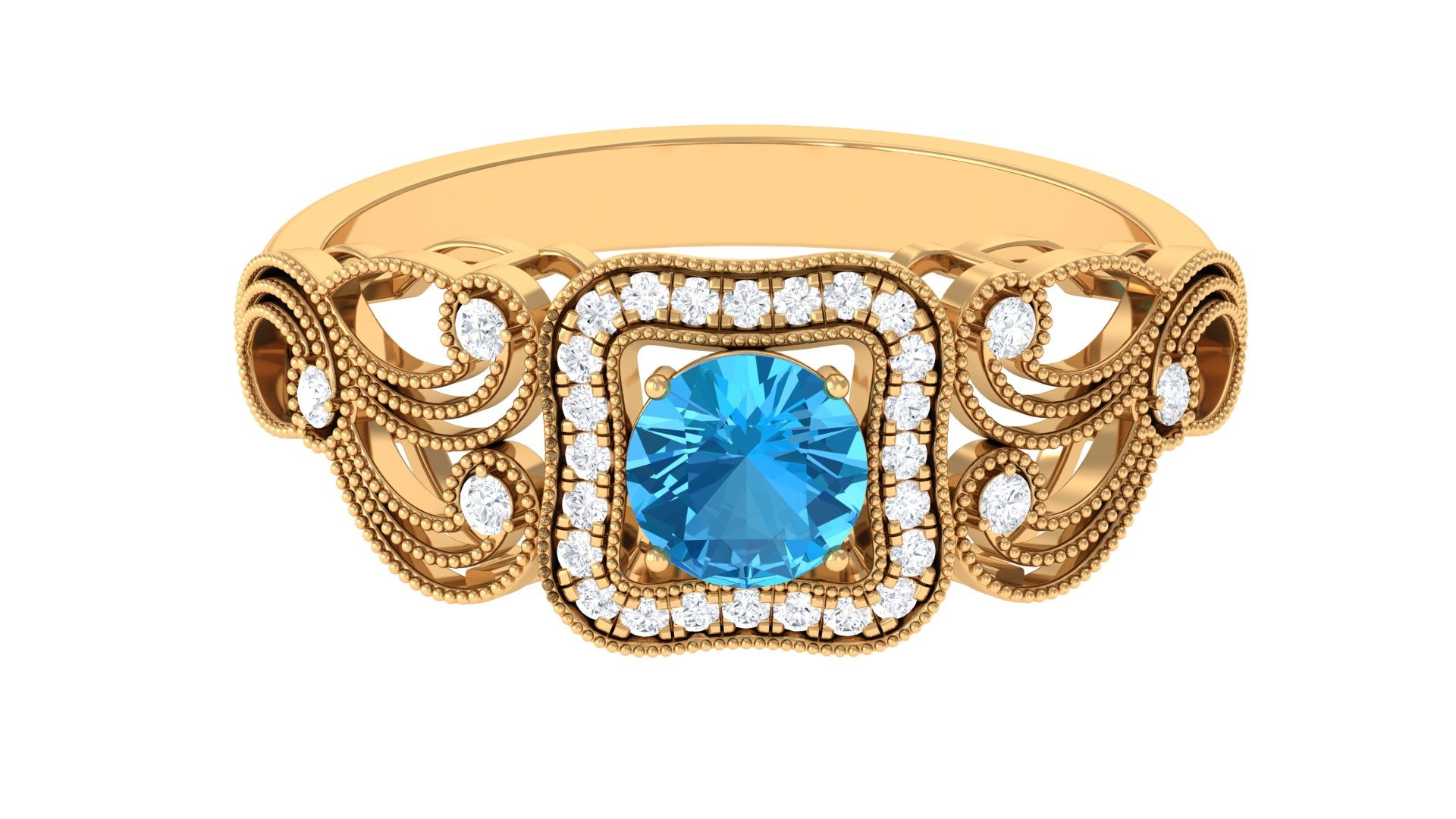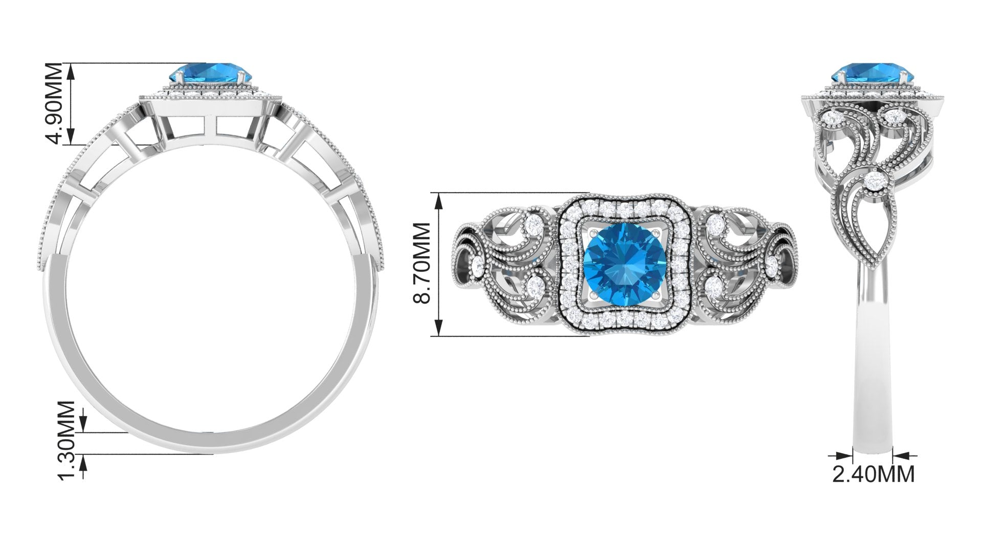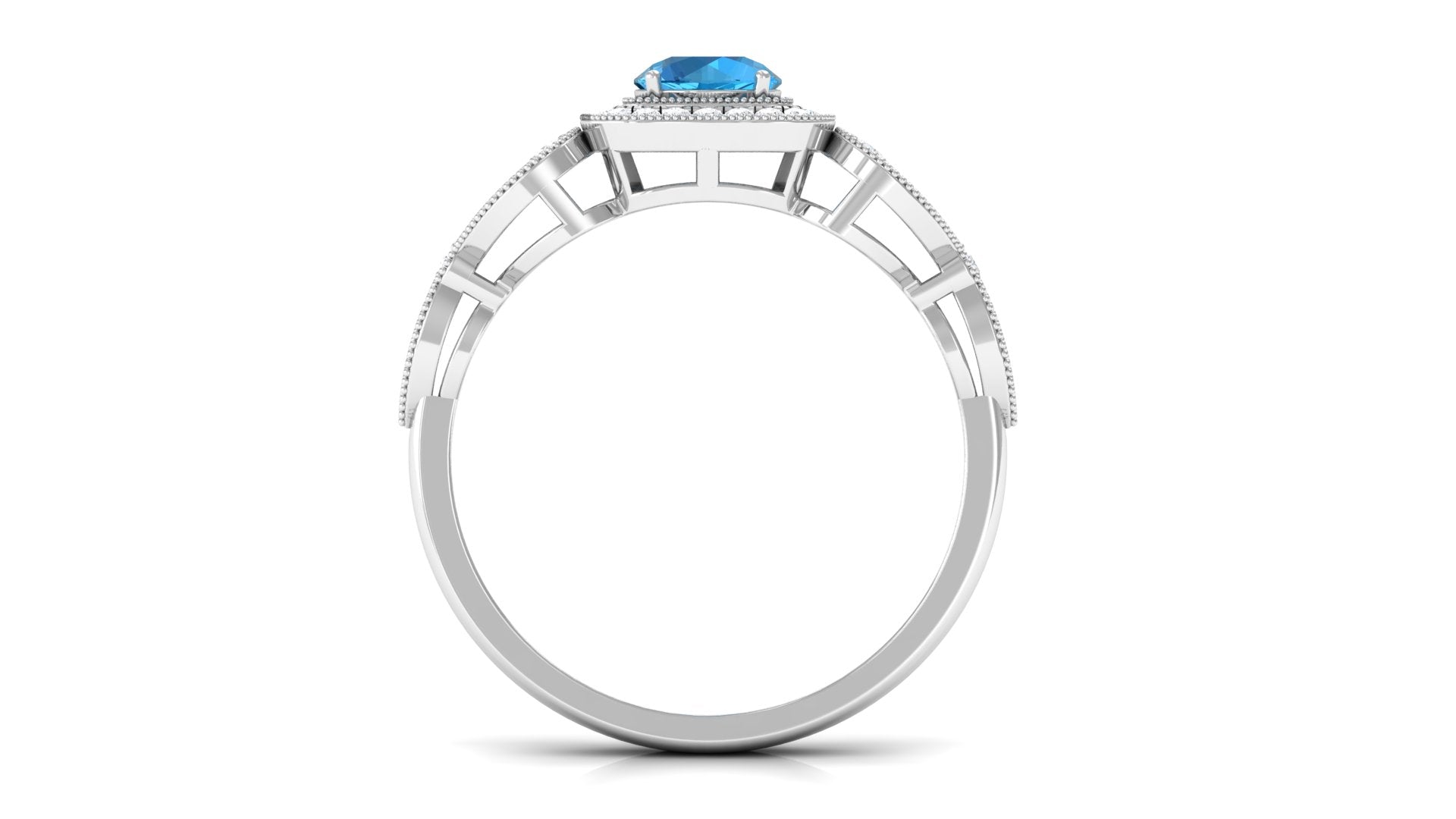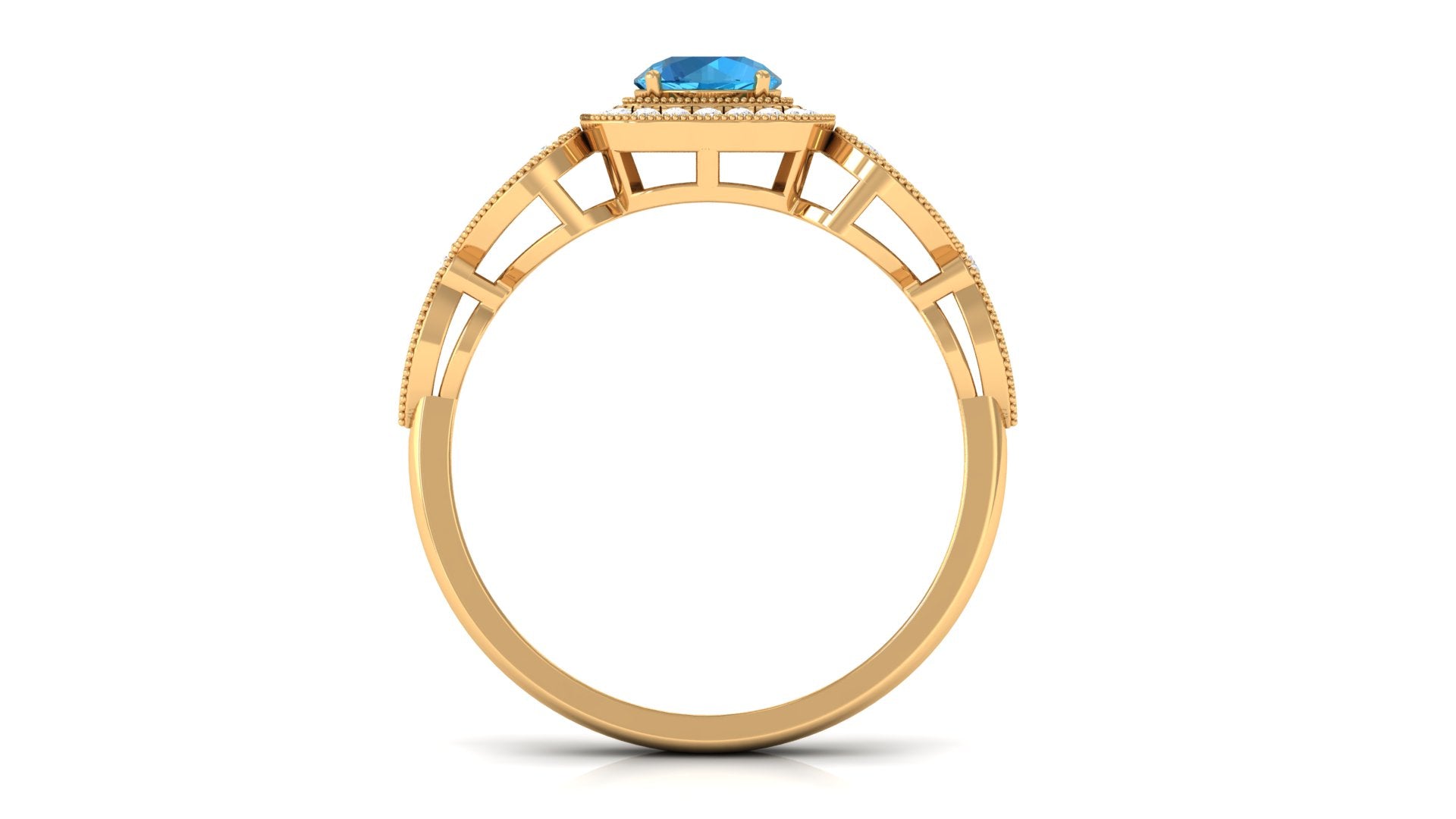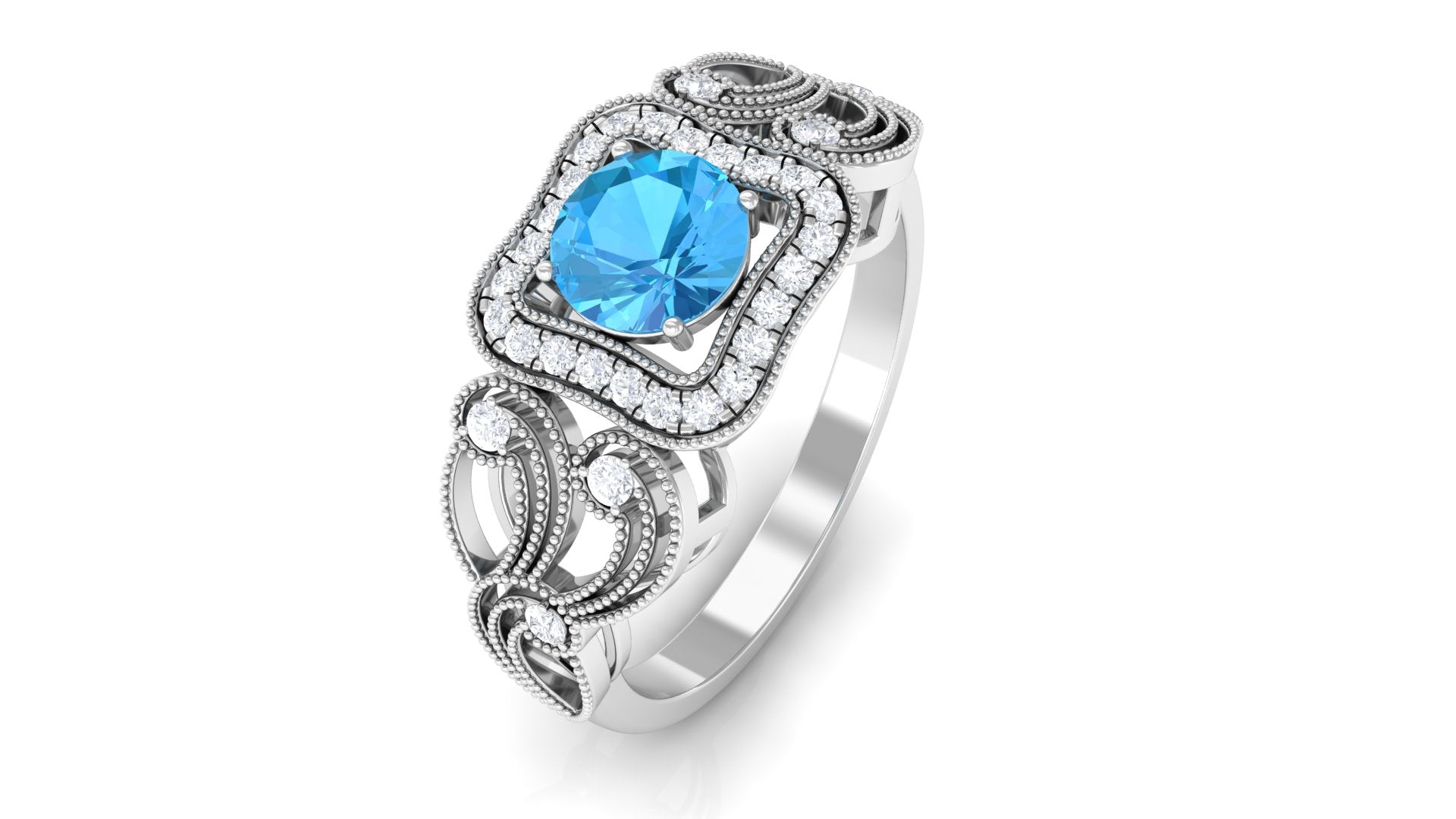 Swiss Blue Topaz Vintage Style Engagement Ring with Diamond