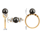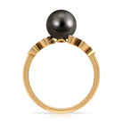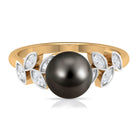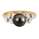 Tahitian Black Pearl and Diamond Leaf Minimal Engagement Ring