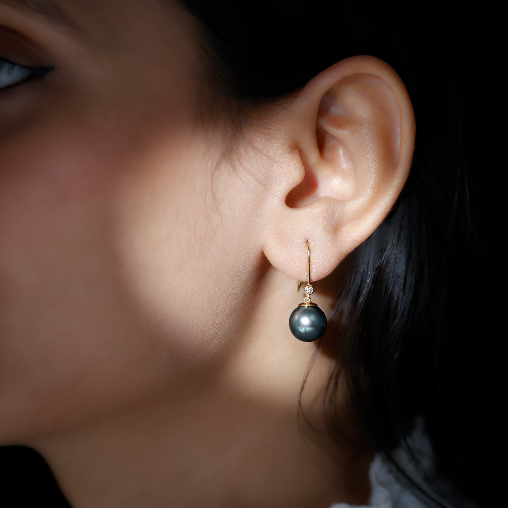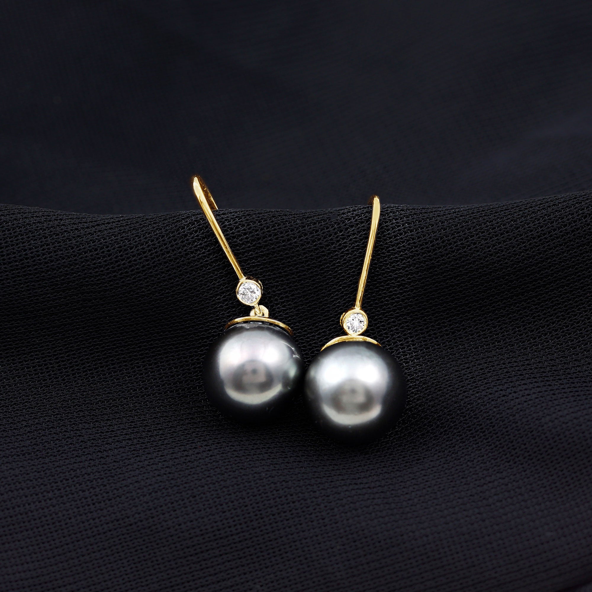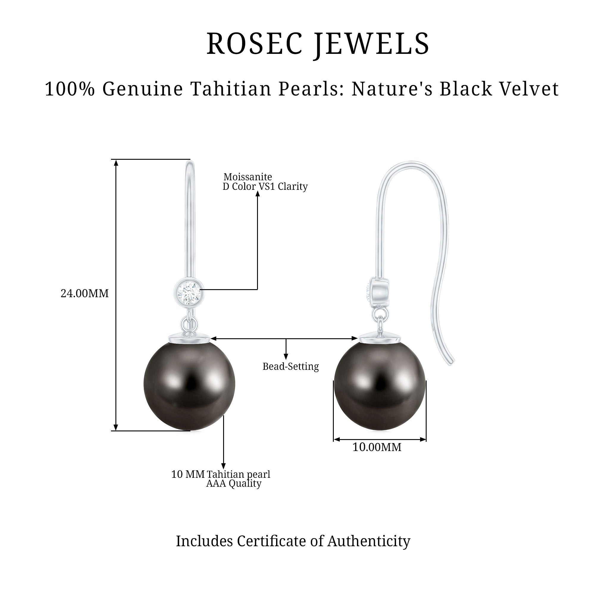 Beautify your ears with elegance by wearing these exquisite Pearl Drop Earrings. Crafted to perfection, the lustrous 10 MM Tahitian Pearl sways gracefully, complemented by the brilliance of Moissanite, creating a mesmerizing ensemble. Each delicate drop exudes luxury and charm, perfect for any occasion where you desire to make a statement. Elevate your style with these timeless treasures, capturing attention and admiration with every movement. This Drop Earring is secured with a Fish Hook Closure which makes it easy to wear. This Fish Hook Earrings undergoes strict quality checks to ensure the high quality of the gemstone.