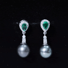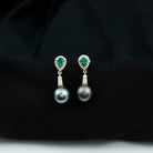 Tahitian Pearl and Created Emerald Drop Earrings with Moissanite