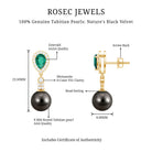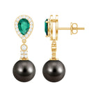 Make your special day even more memorable with our exquisite Black Pearl Dangle Earrings, embellished with a Tahitian Pearl, a Pear Cut Created Emerald, and Round Cut Moissanite stones. These luxurious Designer Drop earrings are crafted in Gold to make for a stunning choice that exudes opulence and sophistication. Perfect for adding a touch of glamour to your bridal look, these Tahitian Pearl earrings are sure to turn heads and make a statement.