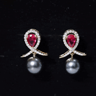 Tahitian Pearl and Created Ruby Drop Earrings with Moissanite
