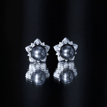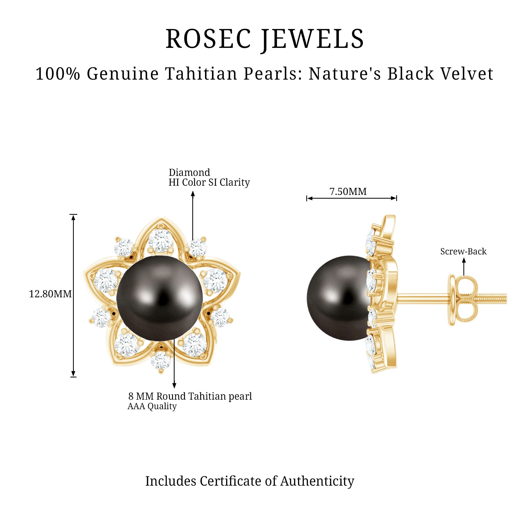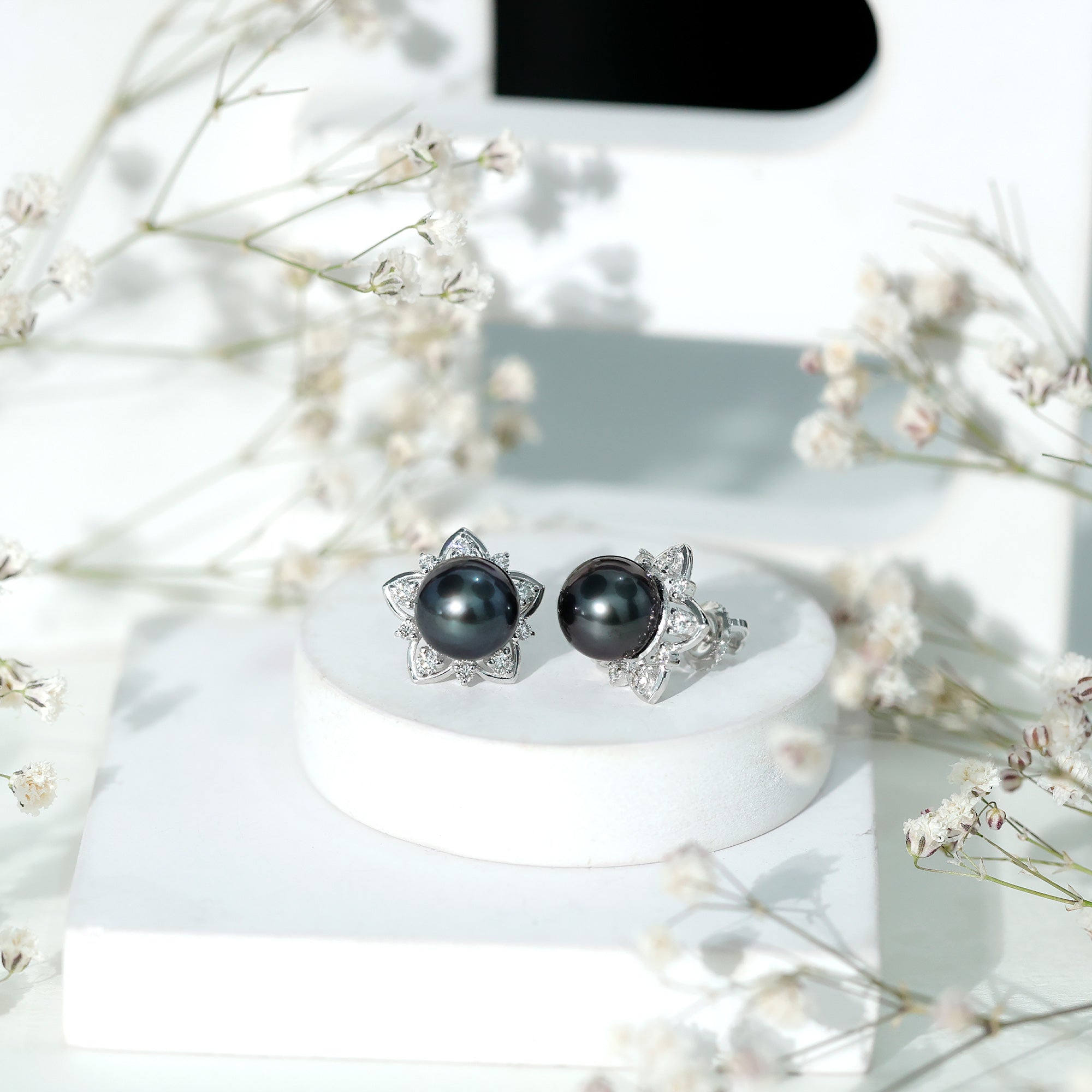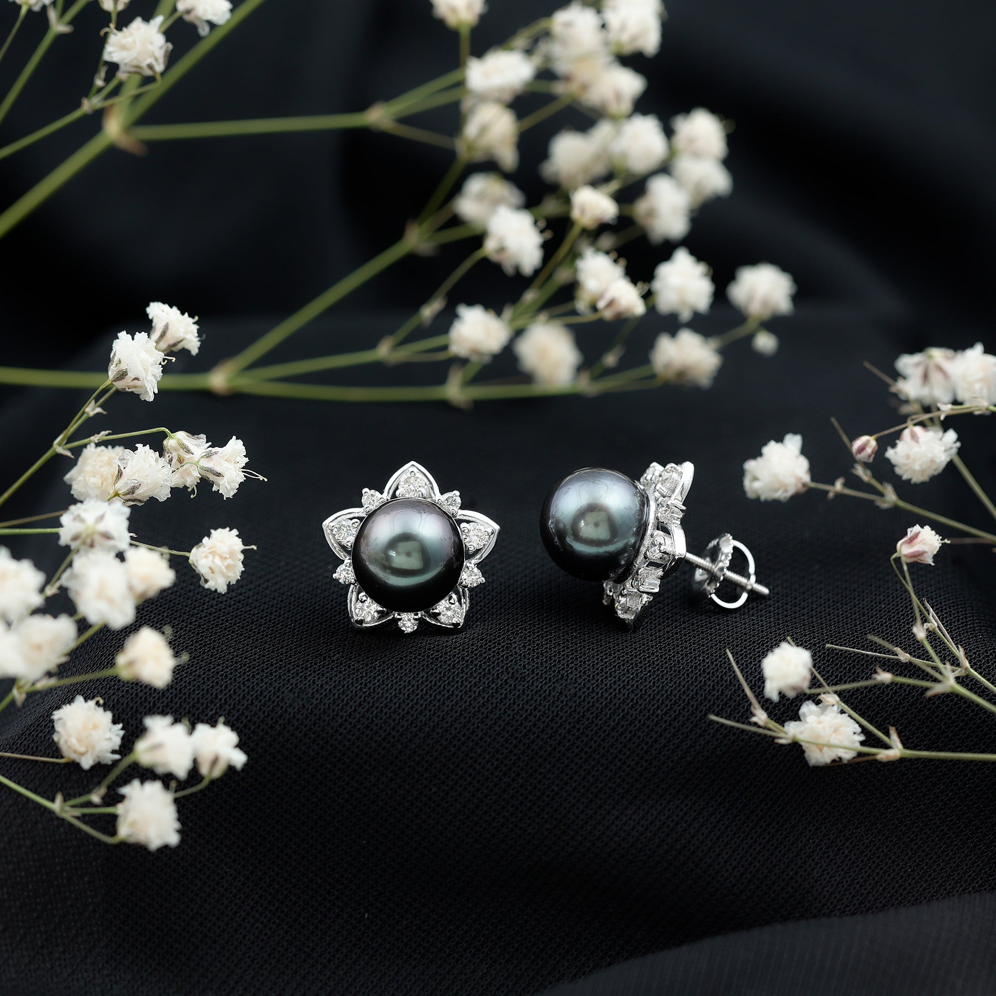 Tahitian Pearl and Diamond Flower Stud Earrings