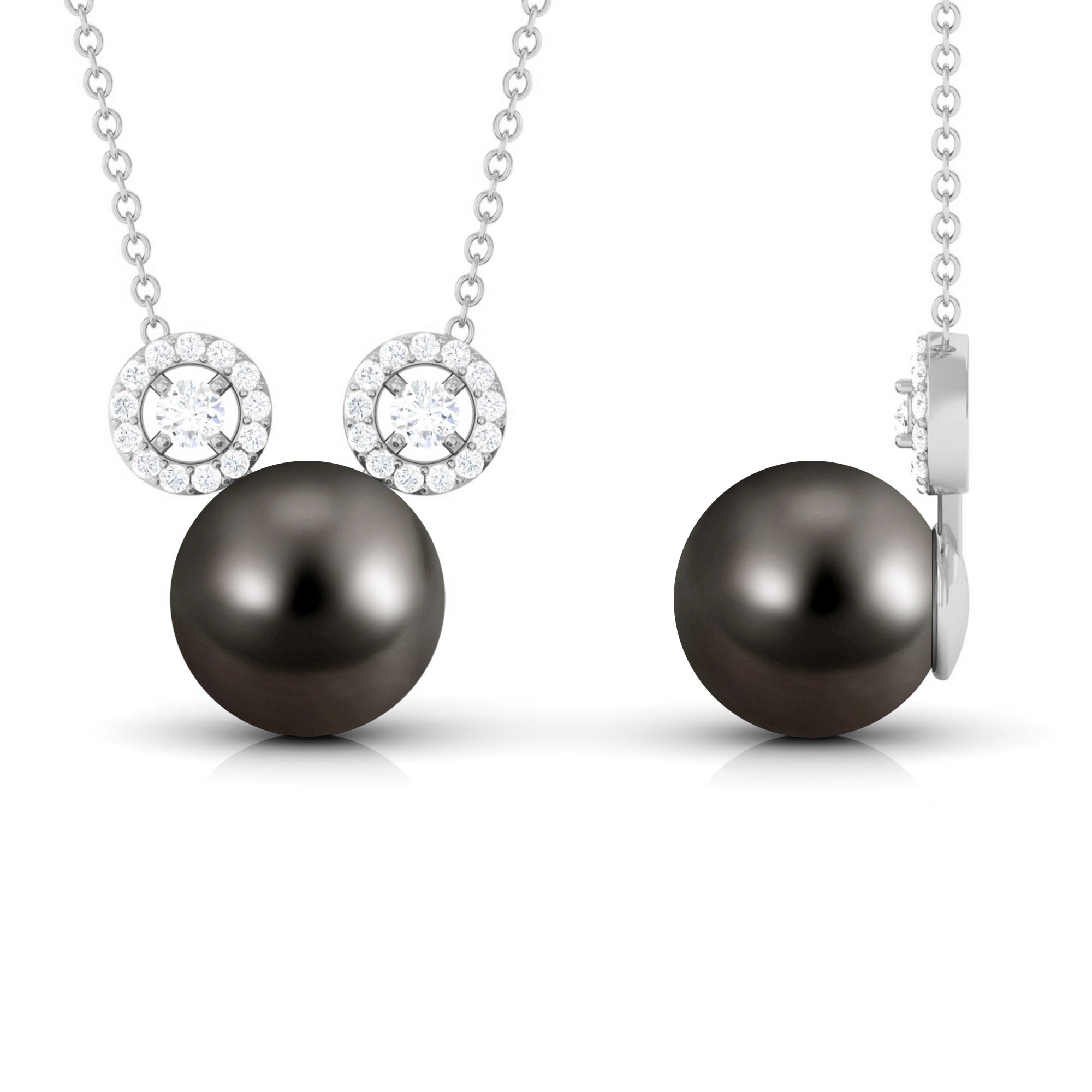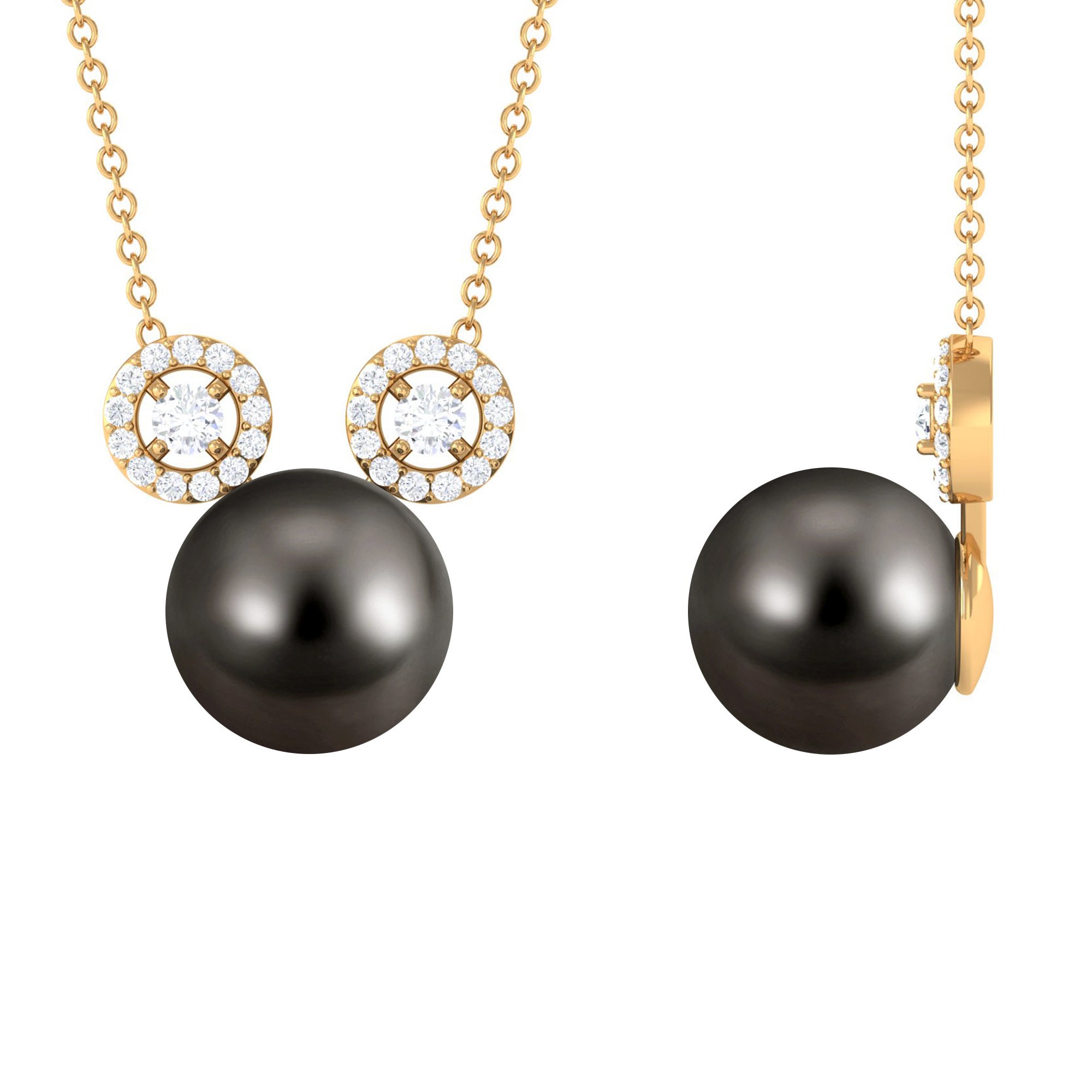 This adorable and unique Mickey Necklace is embellished with Round Shape Tahitian Pearl while dainty Round Shape Diamonds assembled in a mickey design. • You can style this Tahitian Pearl Necklace with your any attire to create not so ordinary looks. Present this Black Pearl Necklace to your someone special as a Birthday Gift.