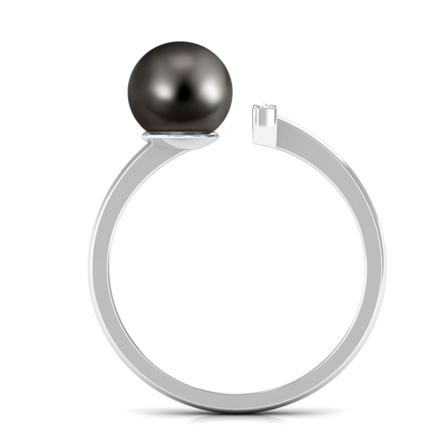 Modern Cuff Engagement Ring is featuring Tahitian Pearl in bead setting and Round Petite Diamond to enhance the look of this tahitian ring. This Gold Cuff Ring is very sober and minimal, it adds a touch of glamour in your look too. Get this beautiful Black Pearl Cuff Ring and flaunt its beauty.