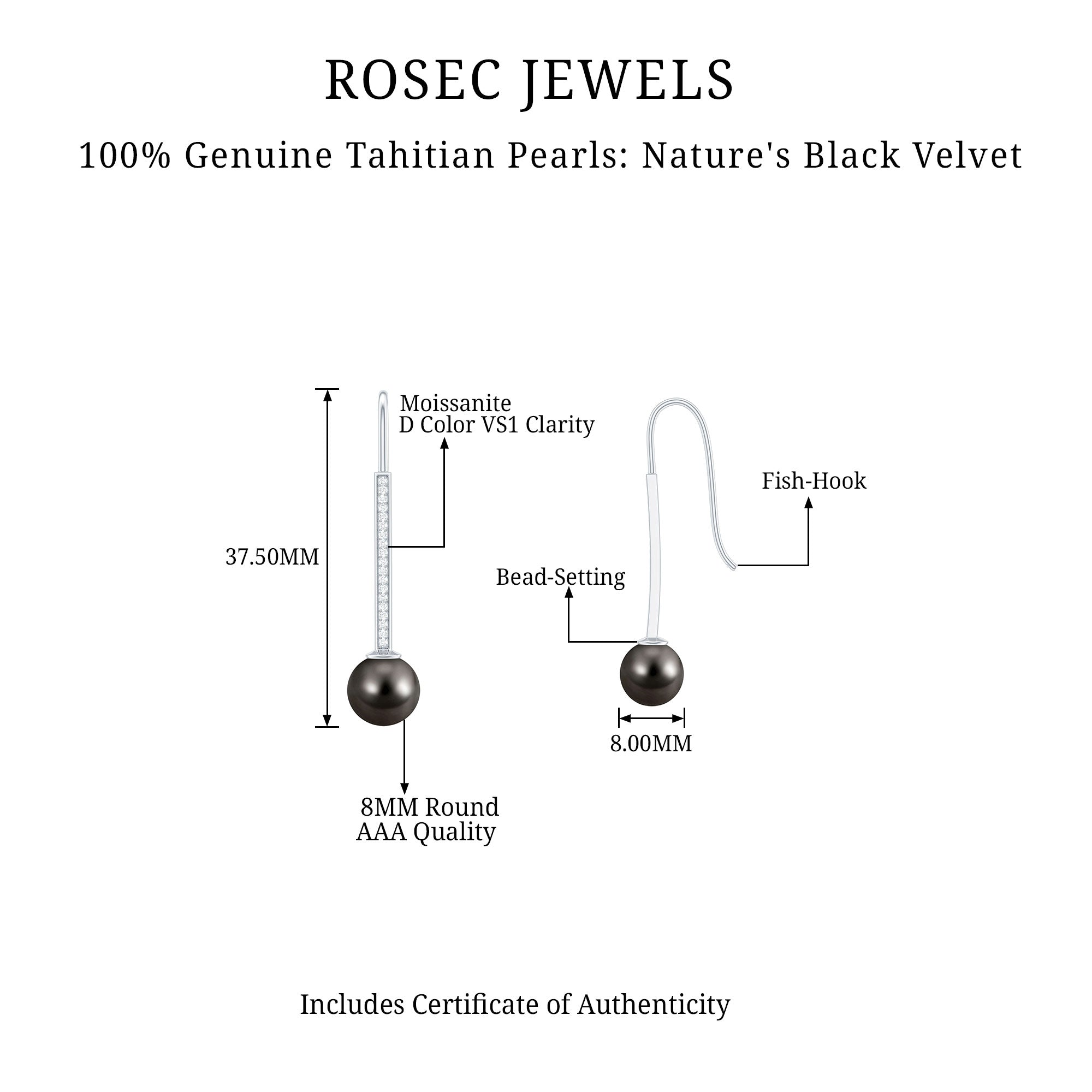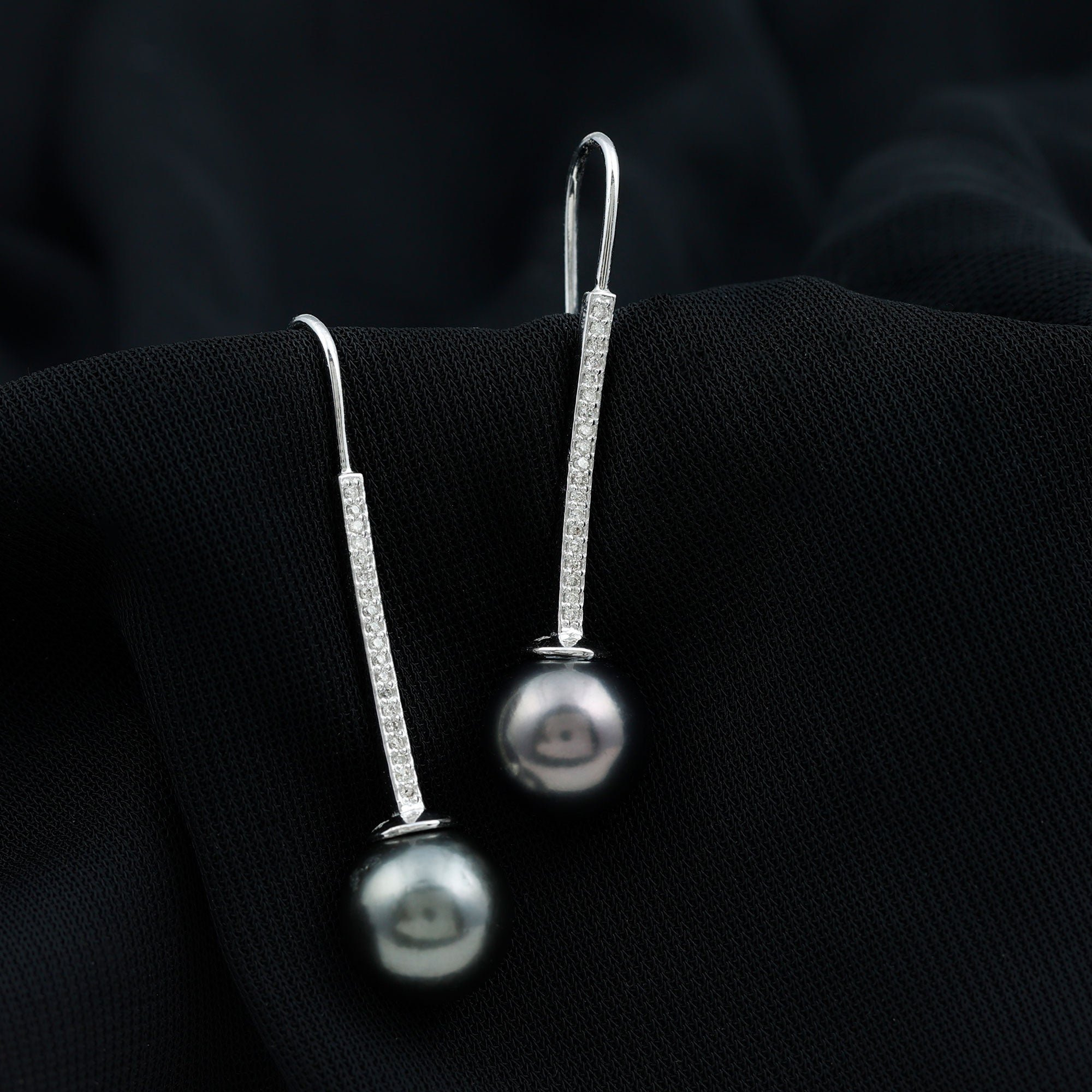 Add a touch of elegance to your formal and party attire with these stunning Dangle Earrings. Featuring a bar design with Round Cut moissanite stones set in prongs, and a gorgeous Tahitian Pearl drop, these Dangle Drop Earrings are a perfect addition to your jewelry collection. Crafted in Gold, these Tahitian Pearl Earrings will add a touch of class and sophistication to your look. Give this mesmerizing pair of Black Pearl Earrings to your best friend as a wedding present, and let her shine bright on her special day.