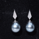 Tahitian Pearl Drop and Diamond Art Deco Earrings