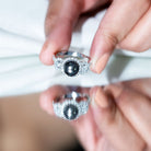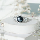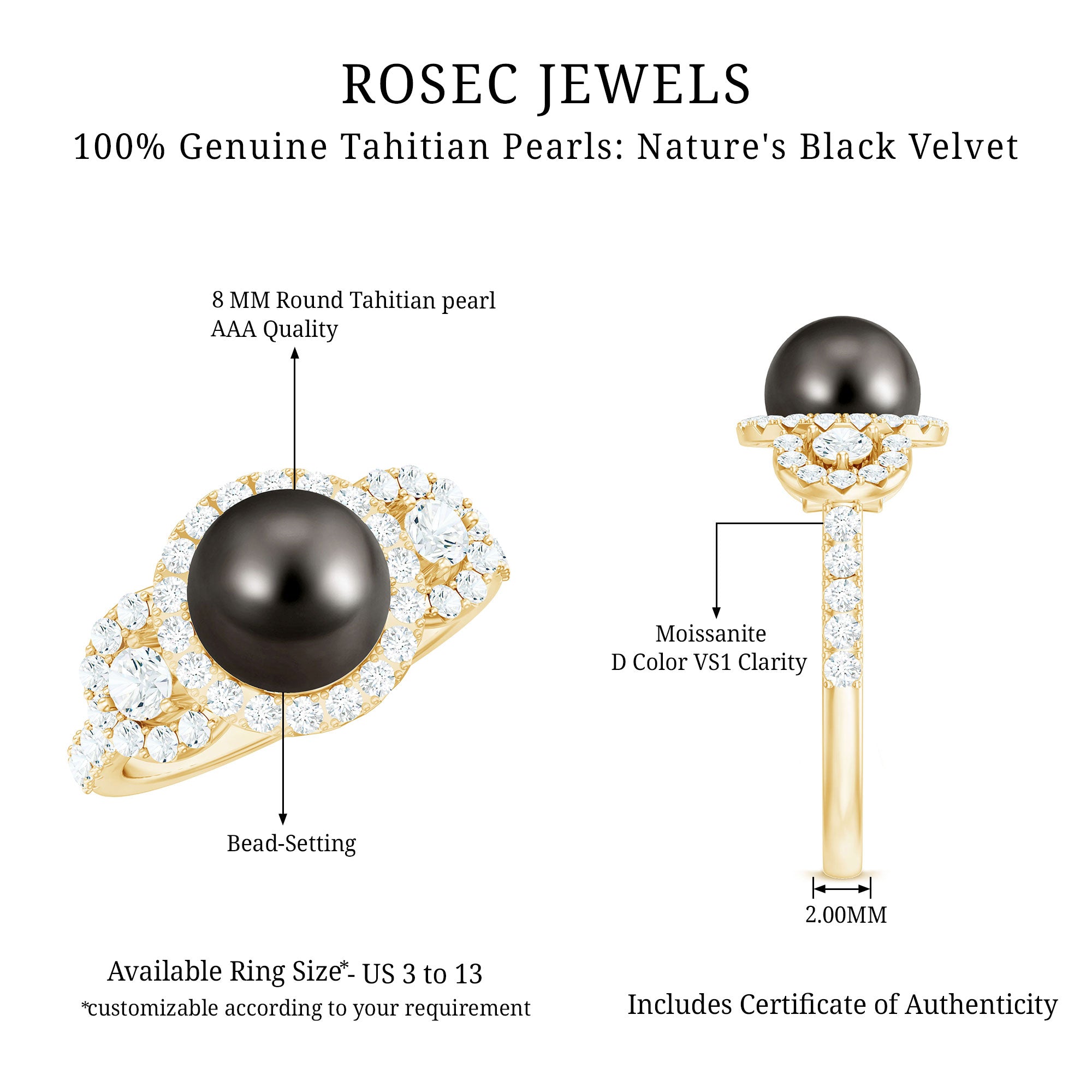 8 MM Round Black Pearl Engagement Ring with Moissanite Accent