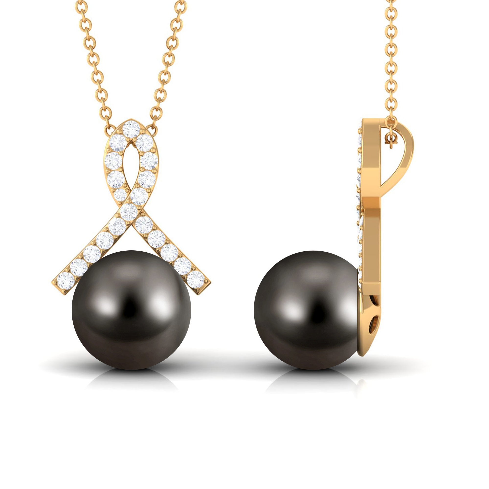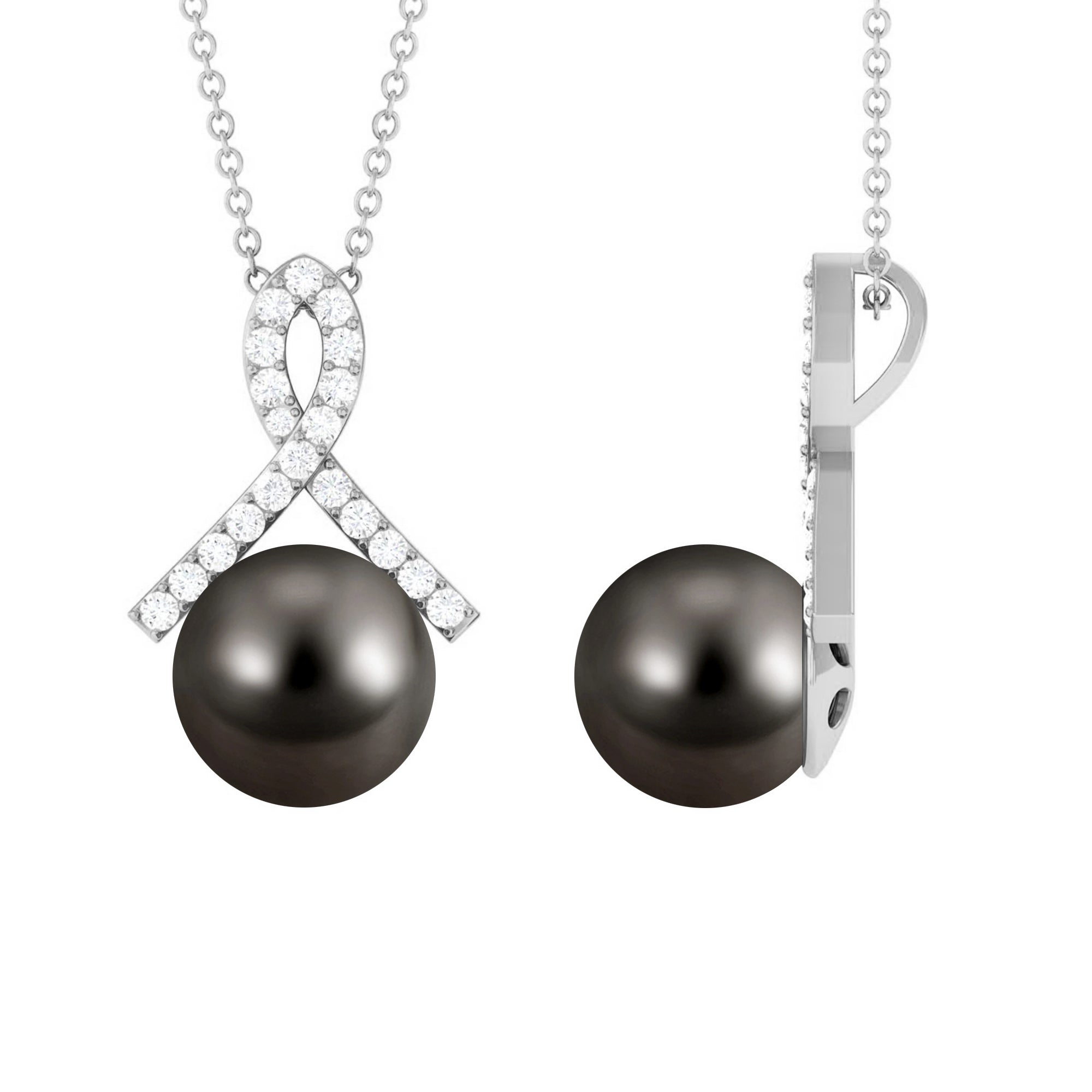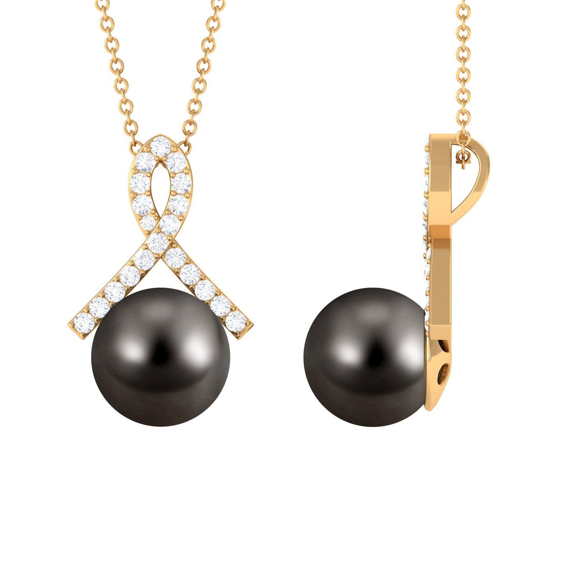 This Pendant Necklace is encased with Round Shape Tahitian Pearl while small Round Shape Diamond studded on the twisted bail, crafted with Hallmarked Metal. The Tahitian Pearl Pendant will make for a sweet addition to your jewelry collection. Surprise your beloved one by getting this Solitaire Pendant Necklace.