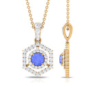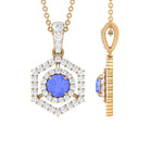 Tanzanite and Diamond Hexagon Pendant Necklace