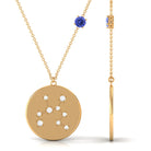 A perfect surprise for December borns, this Zodiac Necklace is handcrafted with Round Shape Tanzanite placed on the chain. The disc is studded with Real Diamonds arranged in the pattern of Sagittarius Zodiac, secured in Pave Setting. December Birthstone Pendant is a meaningful astrological jewelry that reflects your personality.