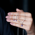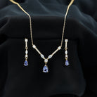 Tanzanite and Moissanite Drop Necklace Earrings Set