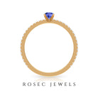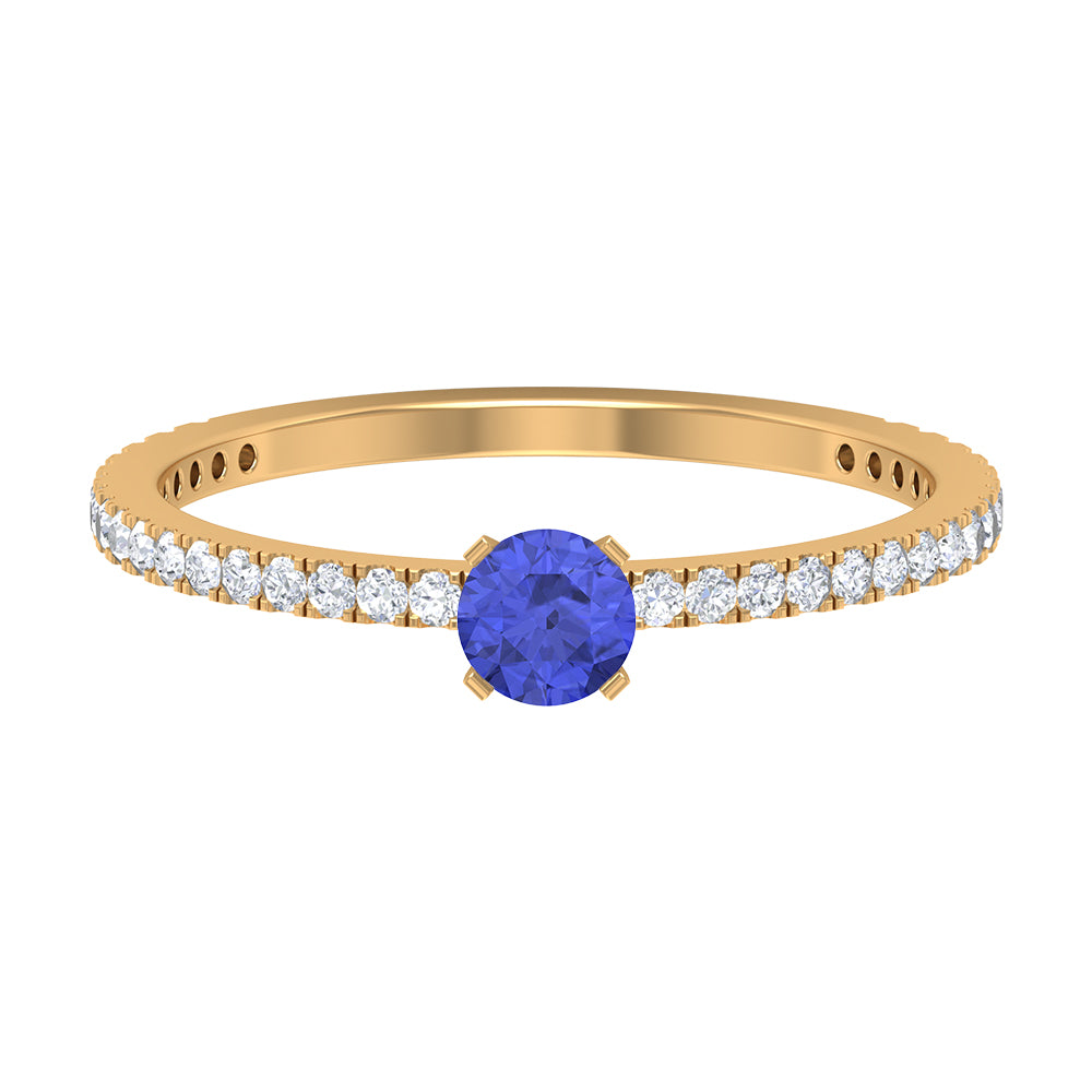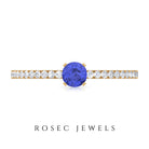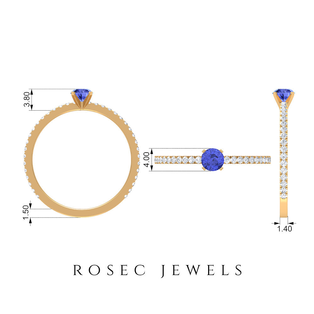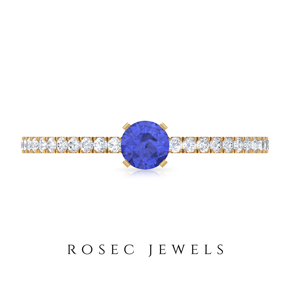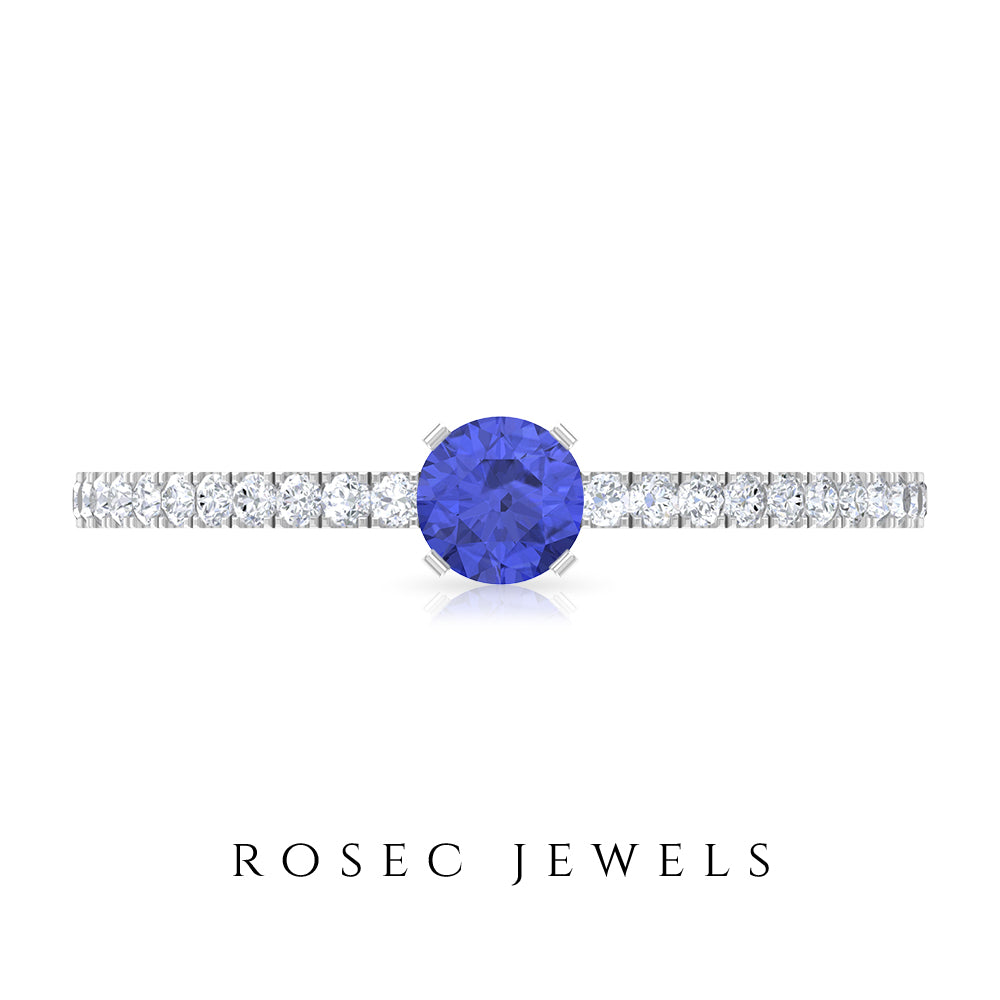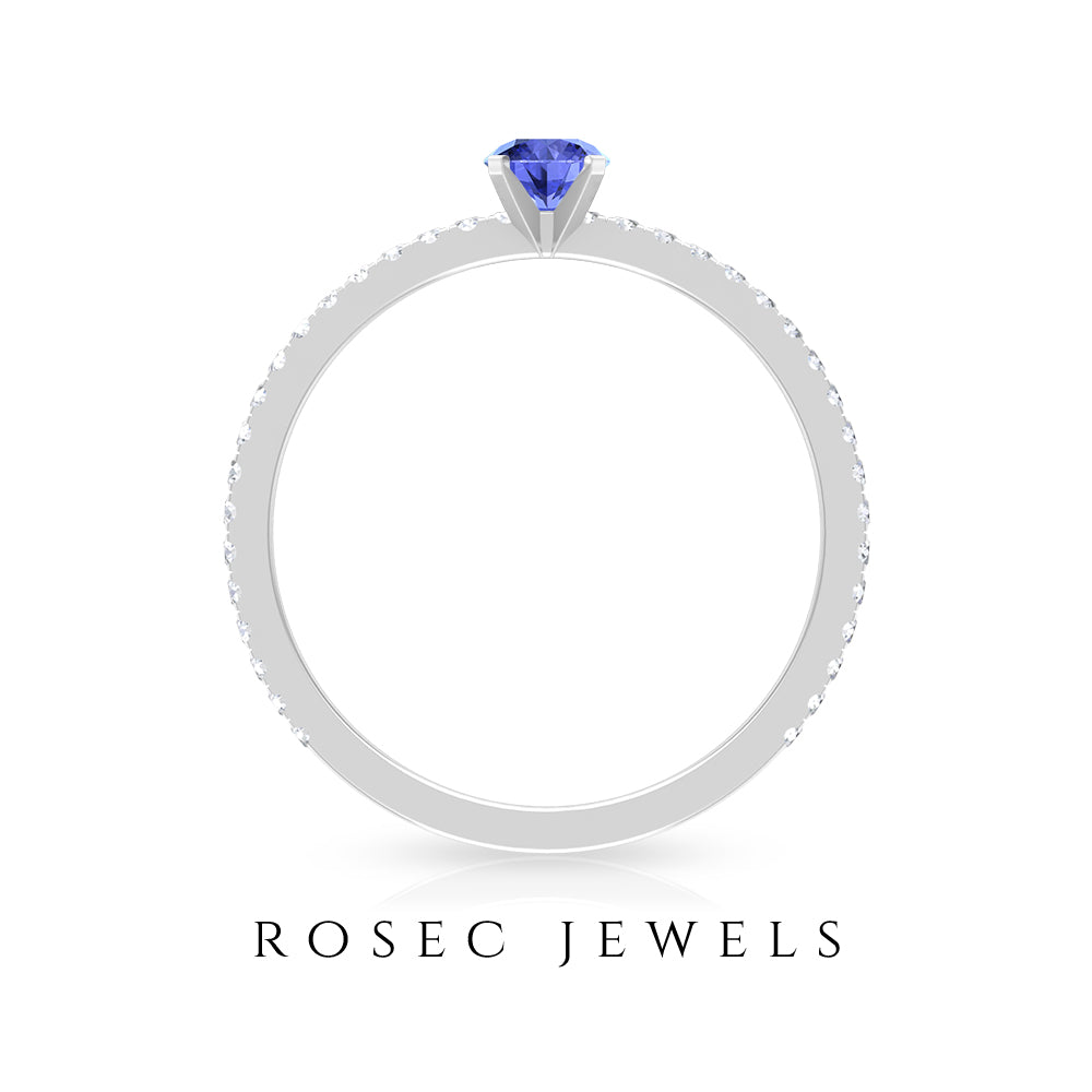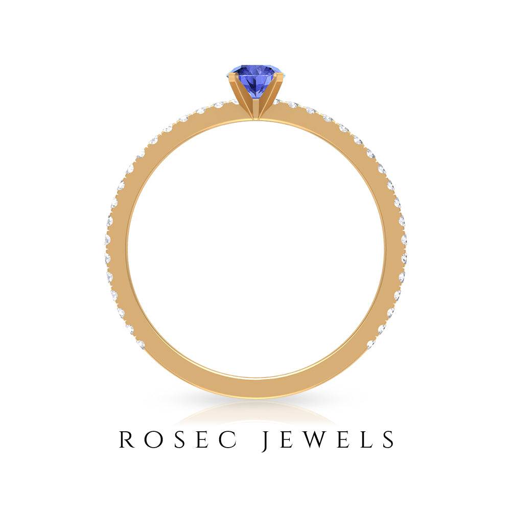 Want to make her day really special and give her something she can keep close to her heart forever then give her this mesmerizing Solitaire Ring showcasing a dainty Round Shape Tanzanite set in peg head setting while pave set Round Shape Diamonds enhances its shank.