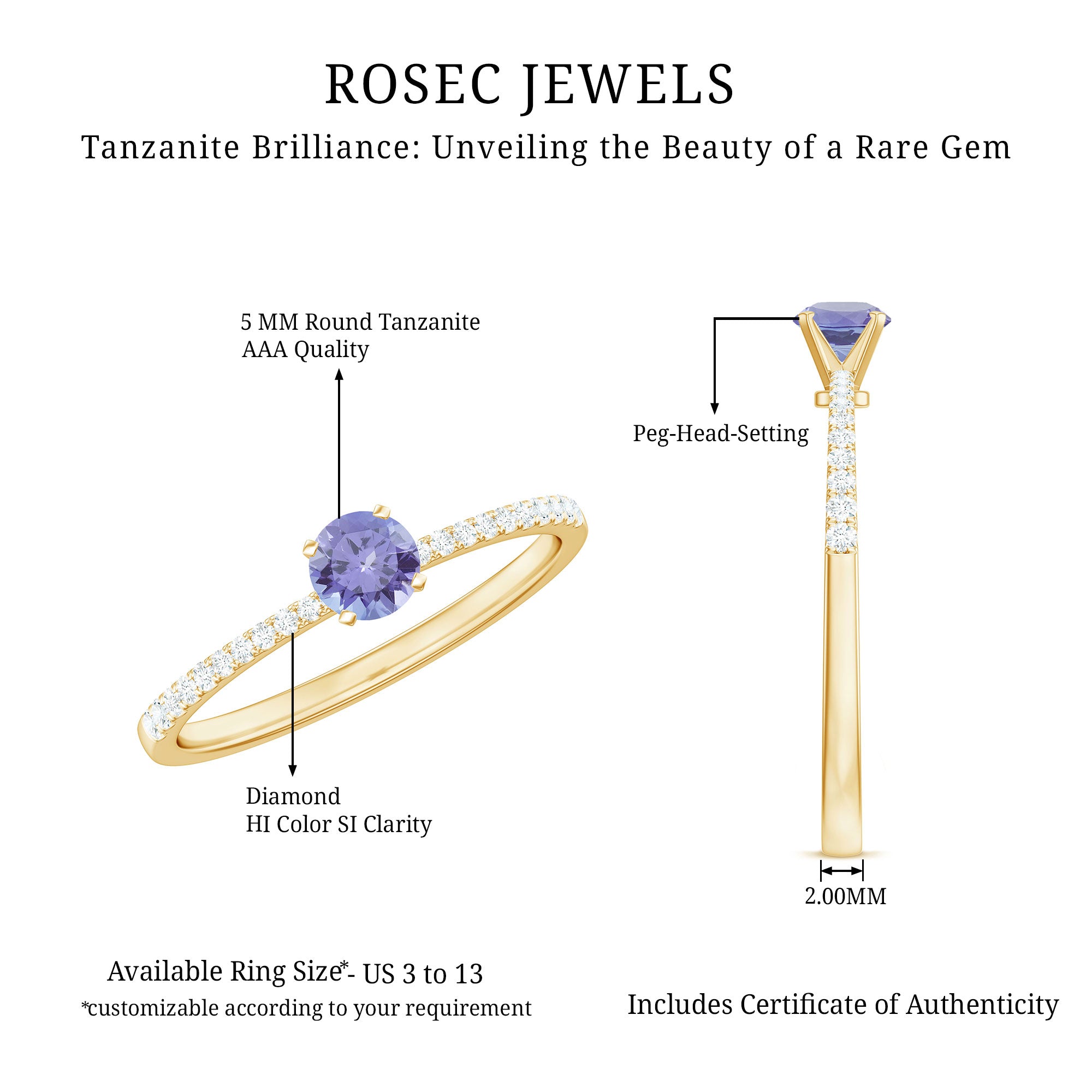 Tanzanite Solitaire Ring with Diamond Side Stones
