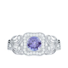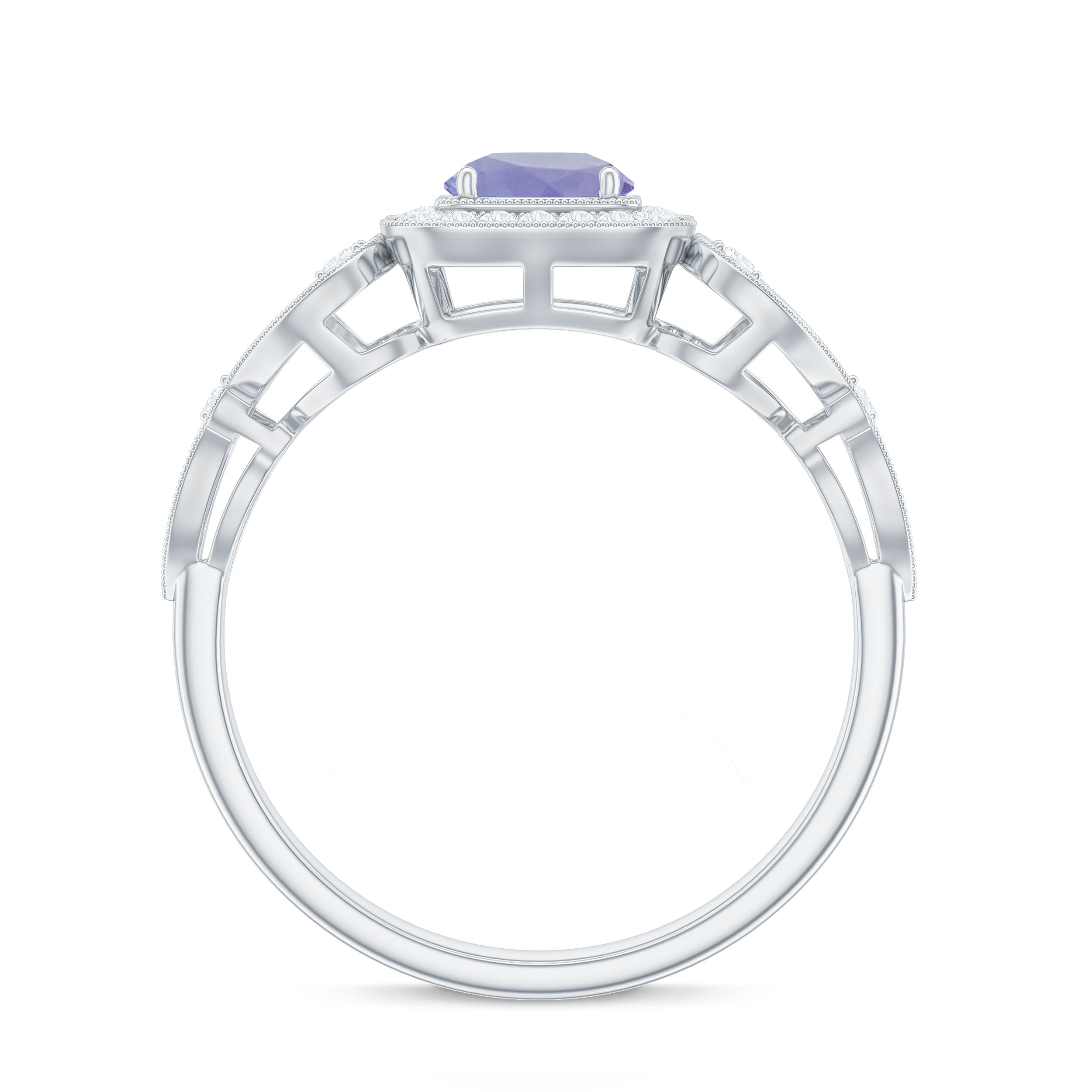 Tanzanite Vintage Looking Engagement Ring with Diamond Halo