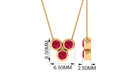 This Three Stone are arranged in Bezel Setting and make a stunning Pendant Necklace Piece. 2.5 MM Round Shaped Ruby are set in triangle cluster design in Bezel Setting. This Three Stone necklace is composed in Gold with the classic Chain design. An Adorable and lovely Pendant for your lady love, perfect gift for her