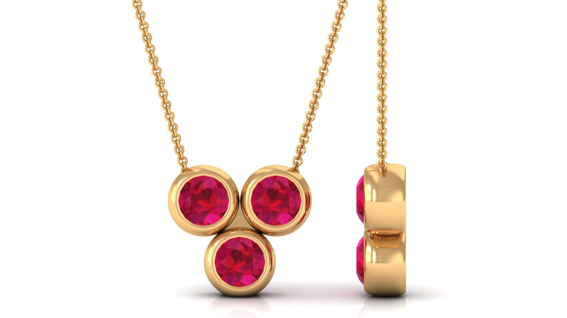 Three Stone Bezel Set Ruby Pendant Necklace For Women
