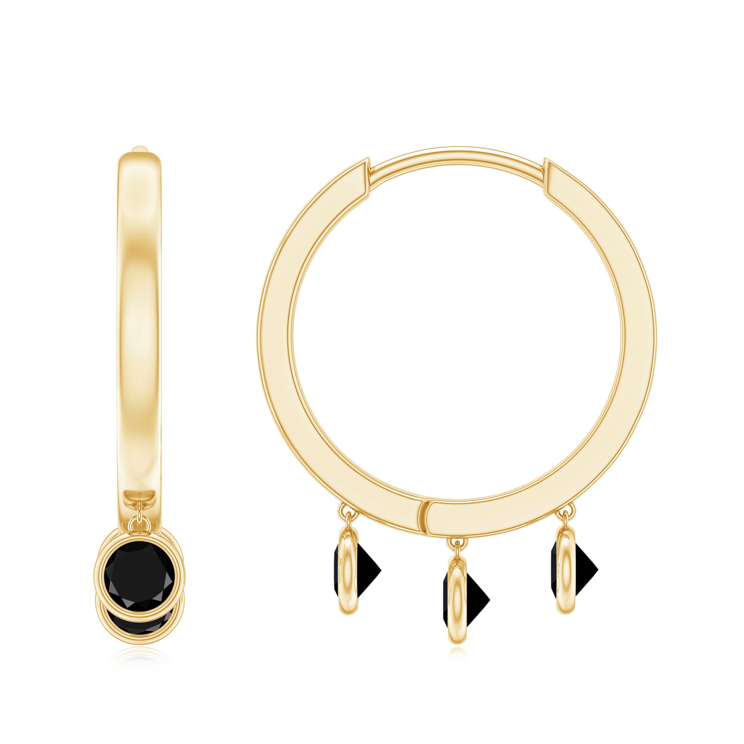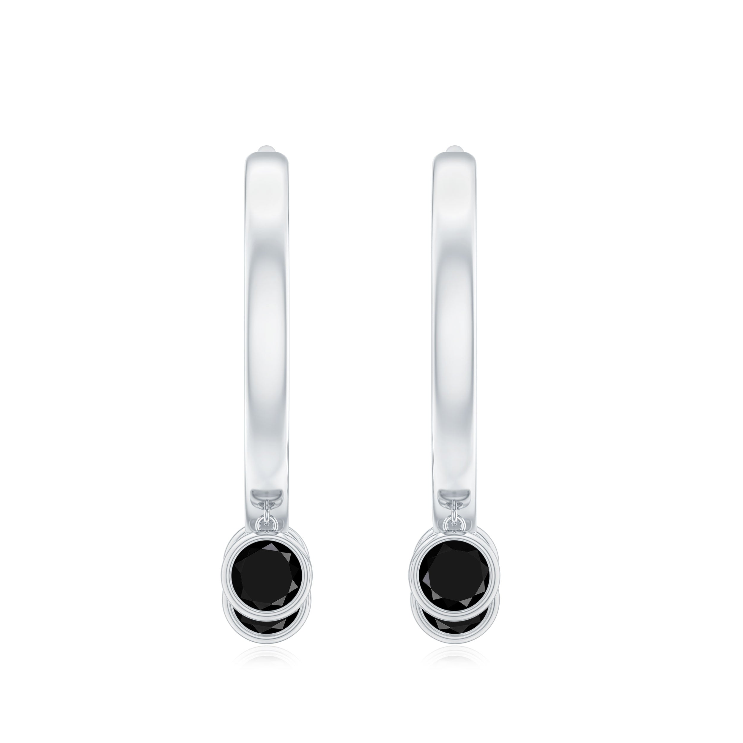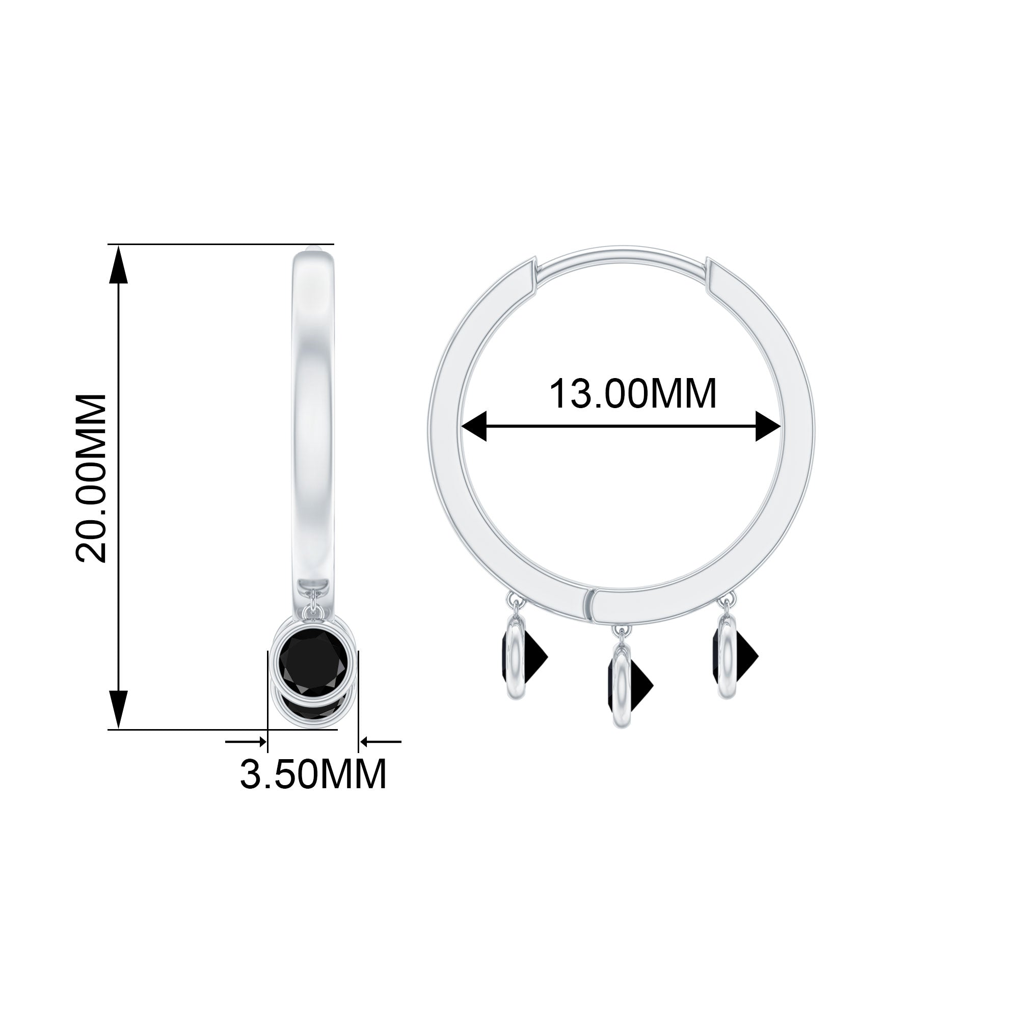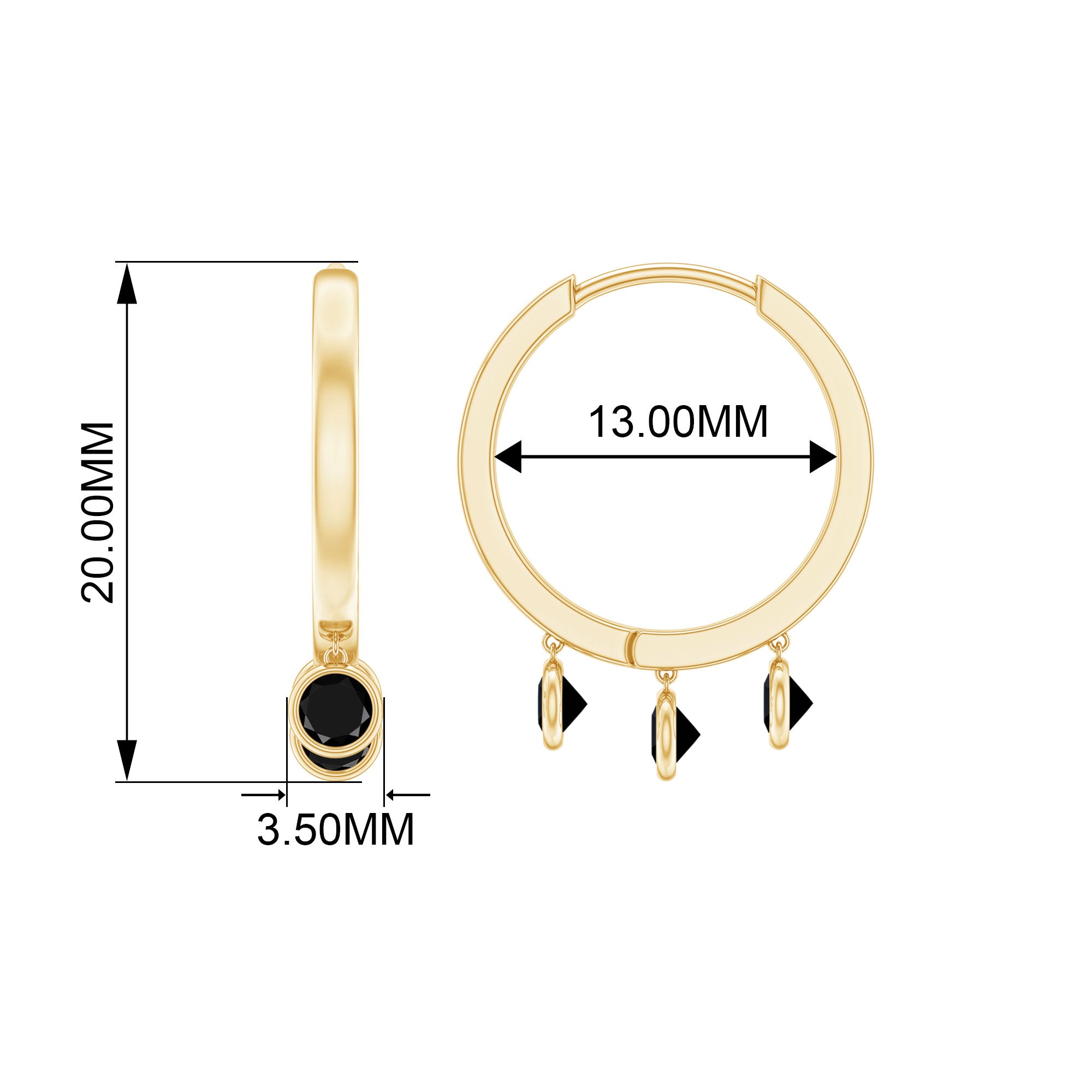 Three Stone Created Black Diamond Hoop Drop Earrings in Bezel Setting