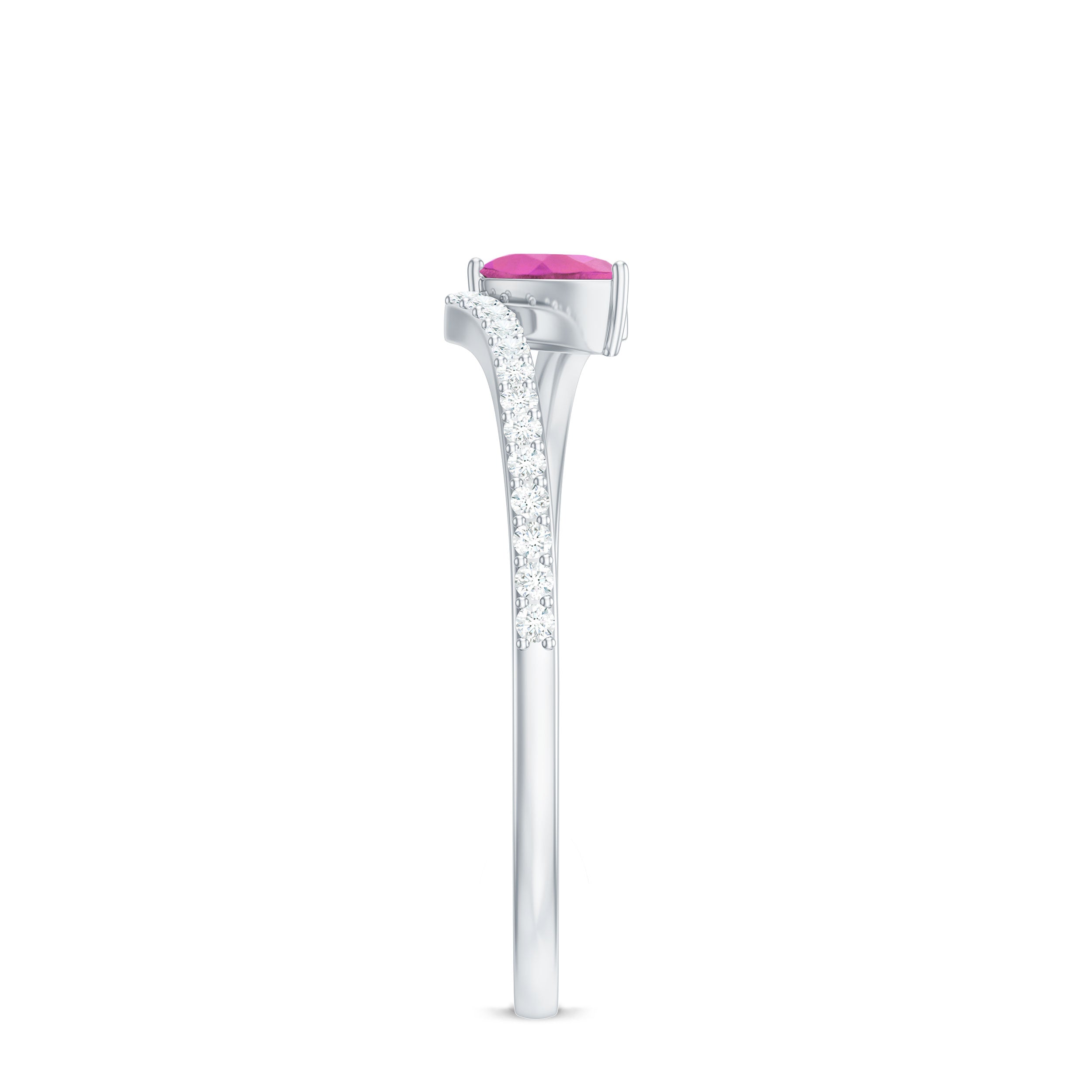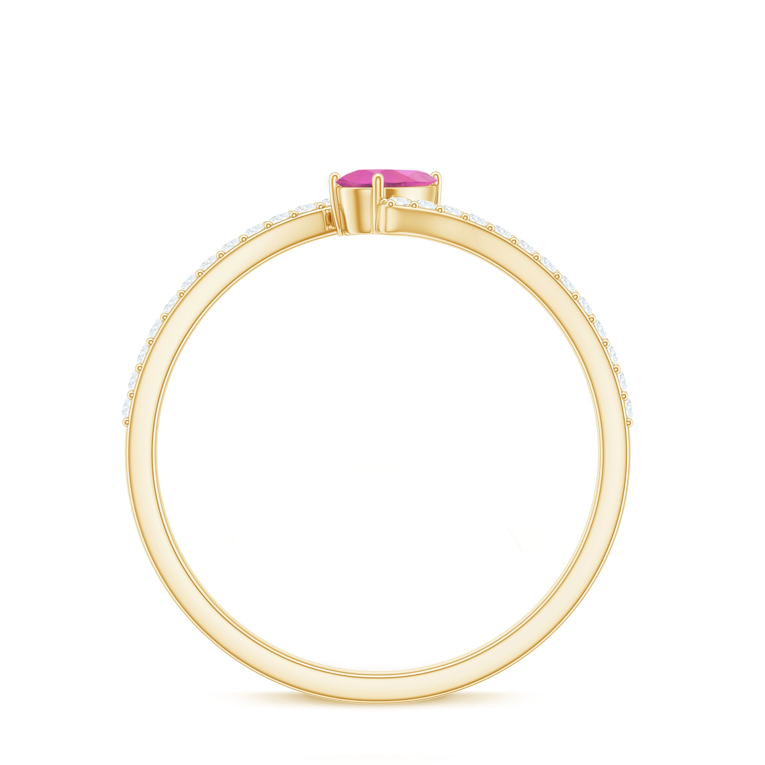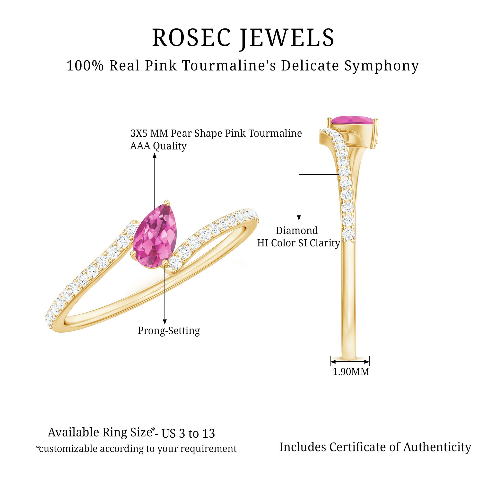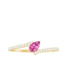 Tilted Pear Shape Pink Tourmaline and Diamond Bypass Promise Ring