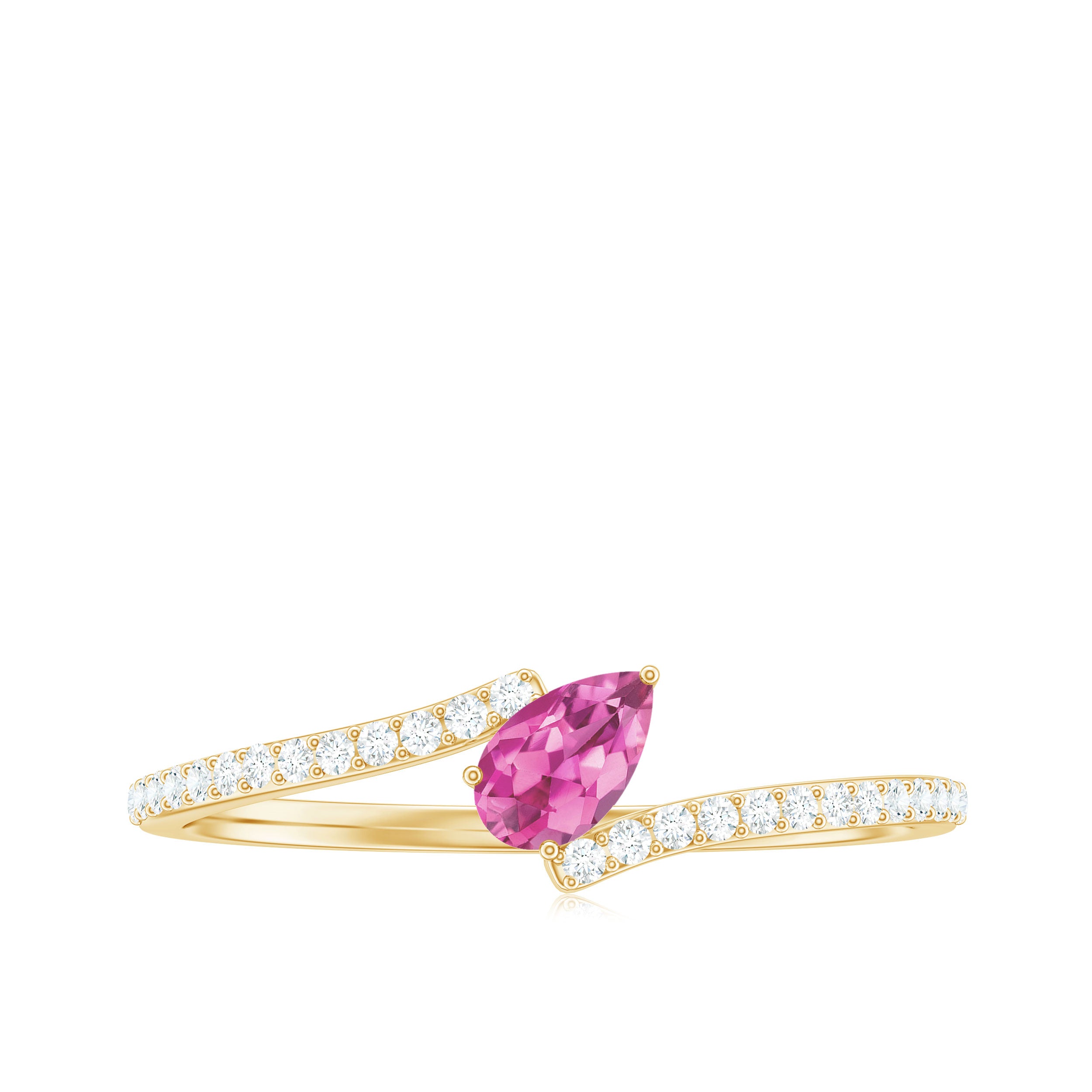 Get this exquisite Bypass Ring showcases a titled Pear Shape Pink Tourmaline secured by Prong Setting, and dainty Round Shape Diamond studded on its Bypass Shank. The Solitaire Ring comes in our ready-to-gift Signature Jewelry Box, it is a perfect choice for Birthday Gift, Anniversary Gift, and Valentines Day Gift for your special one.