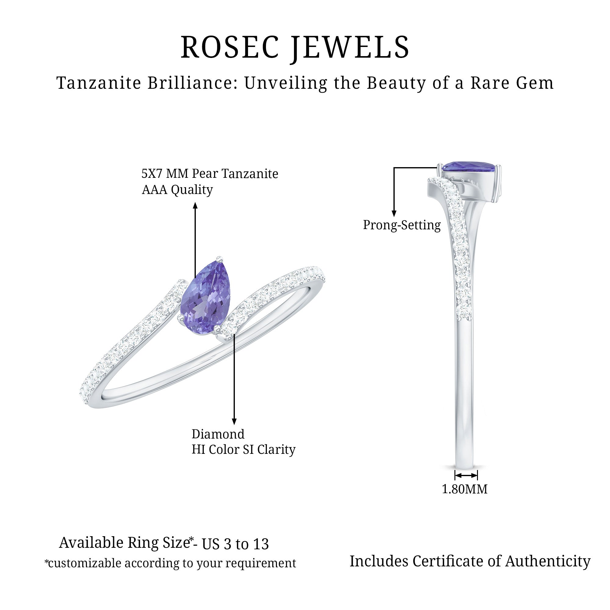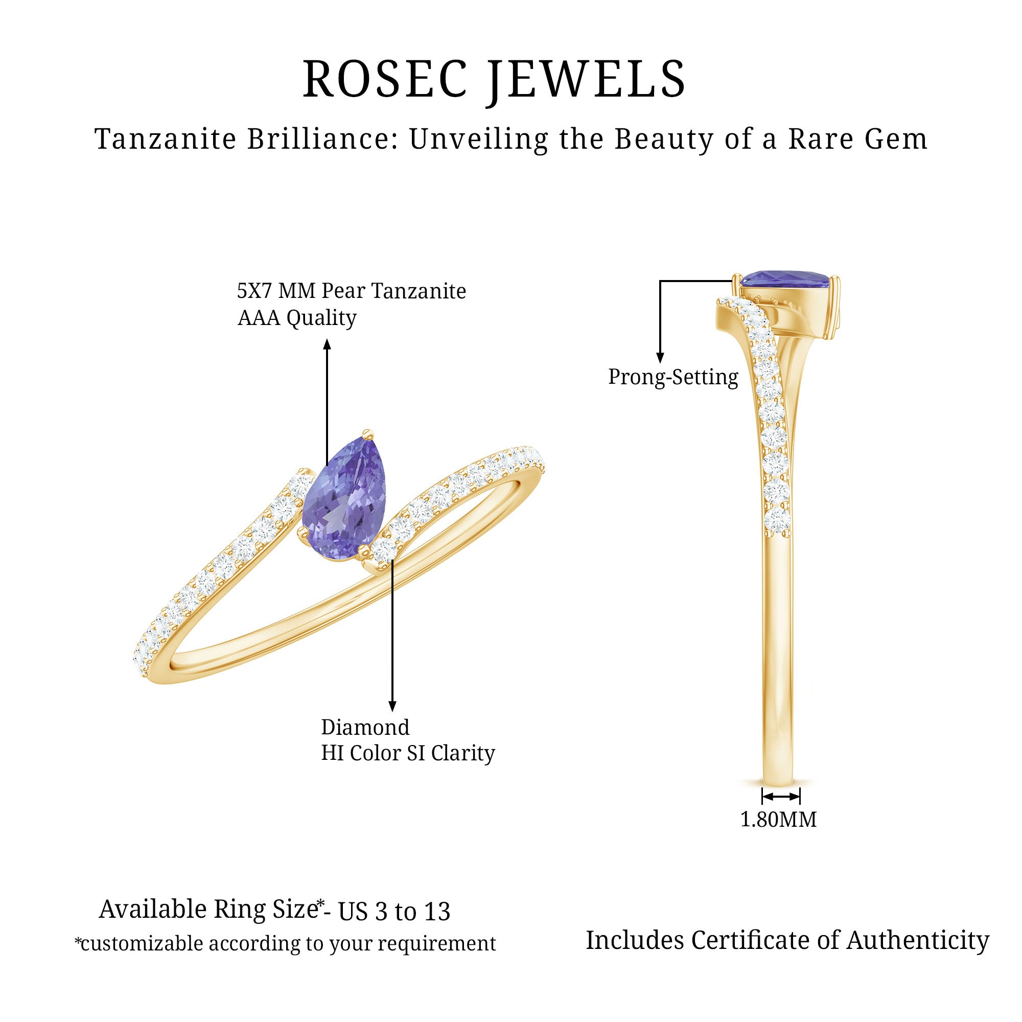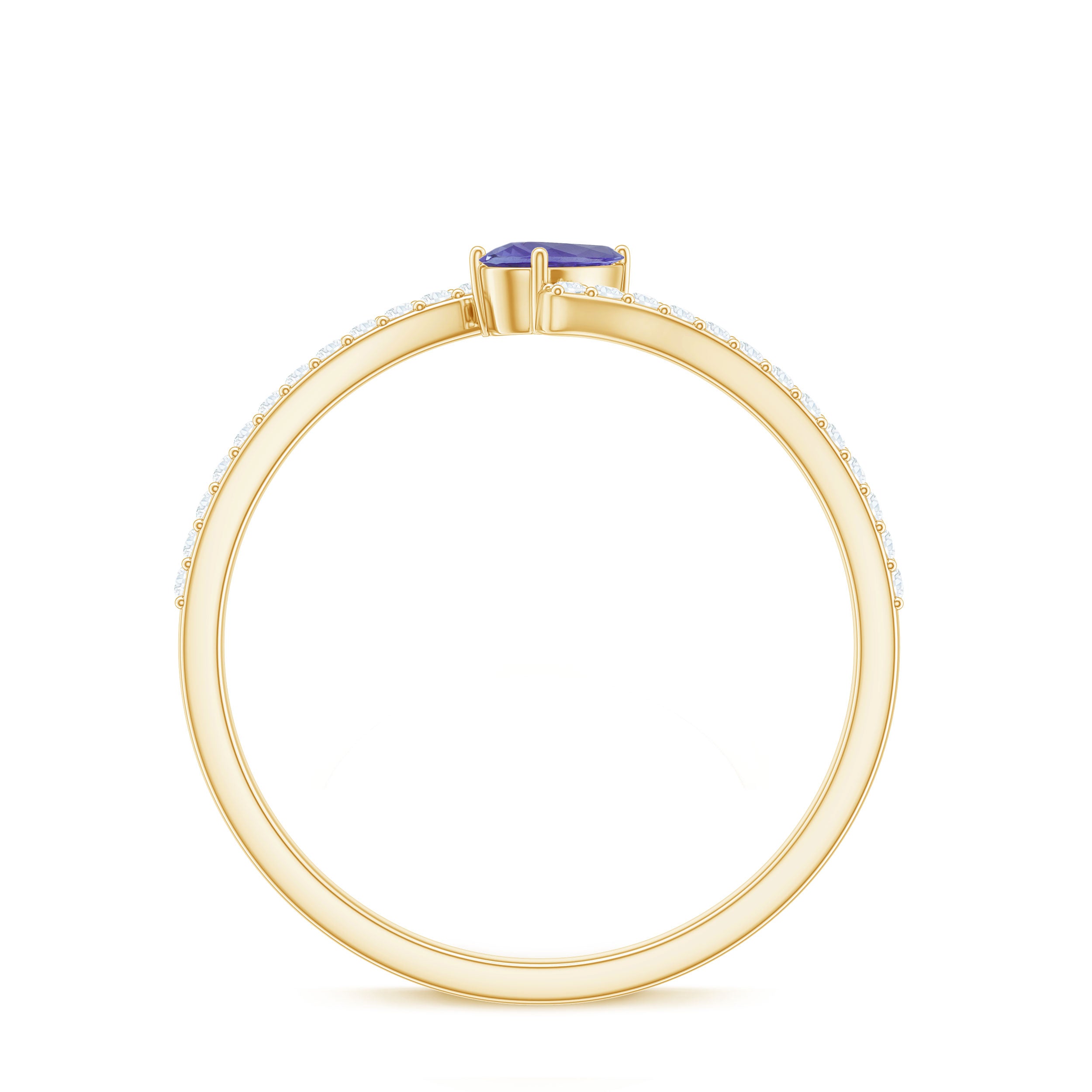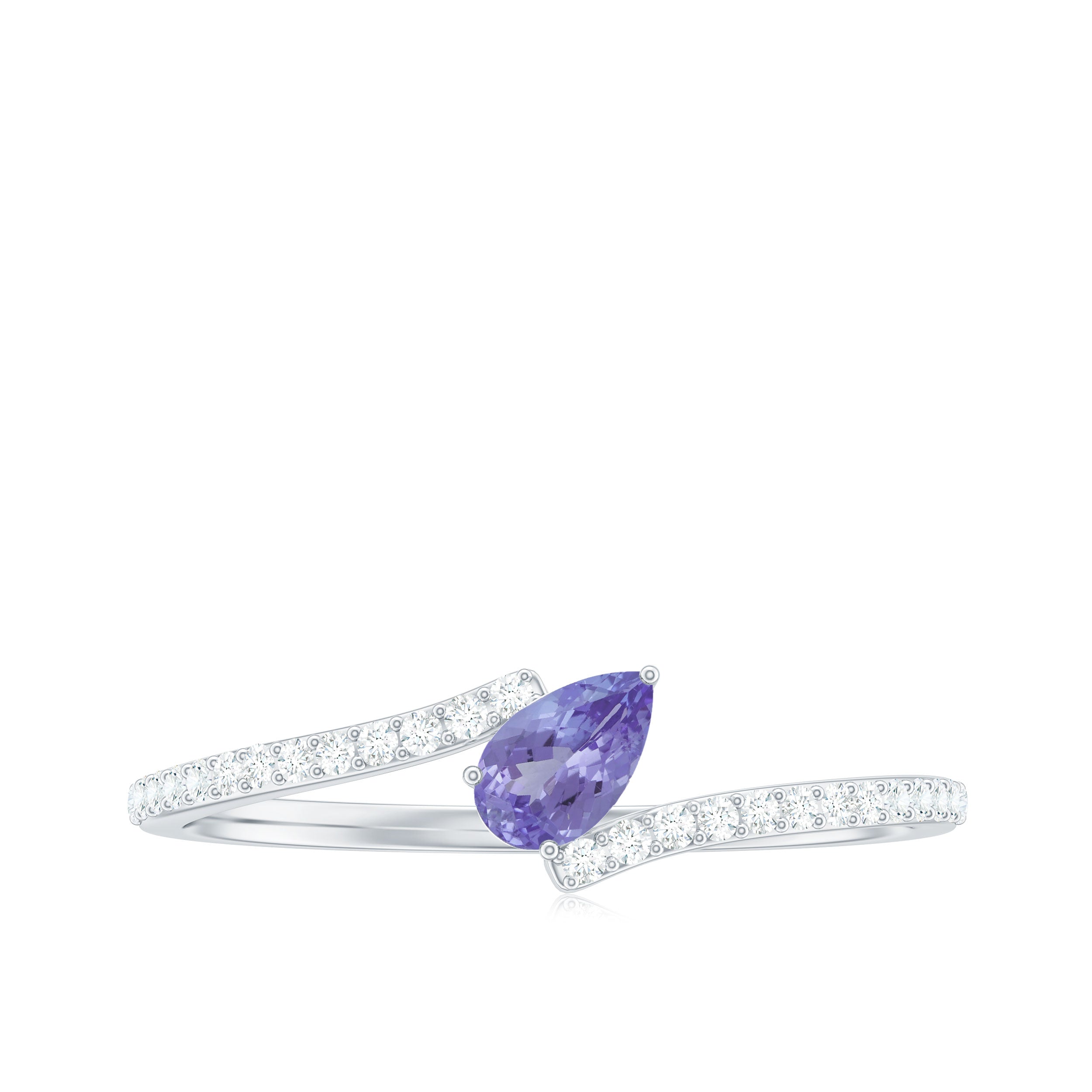 Tilted Pear Shape Tanzanite and Diamond Bypass Promise Ring