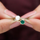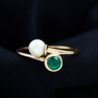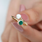 Toi et Moi Emerald and Freshwater Pearl Ring in Gold