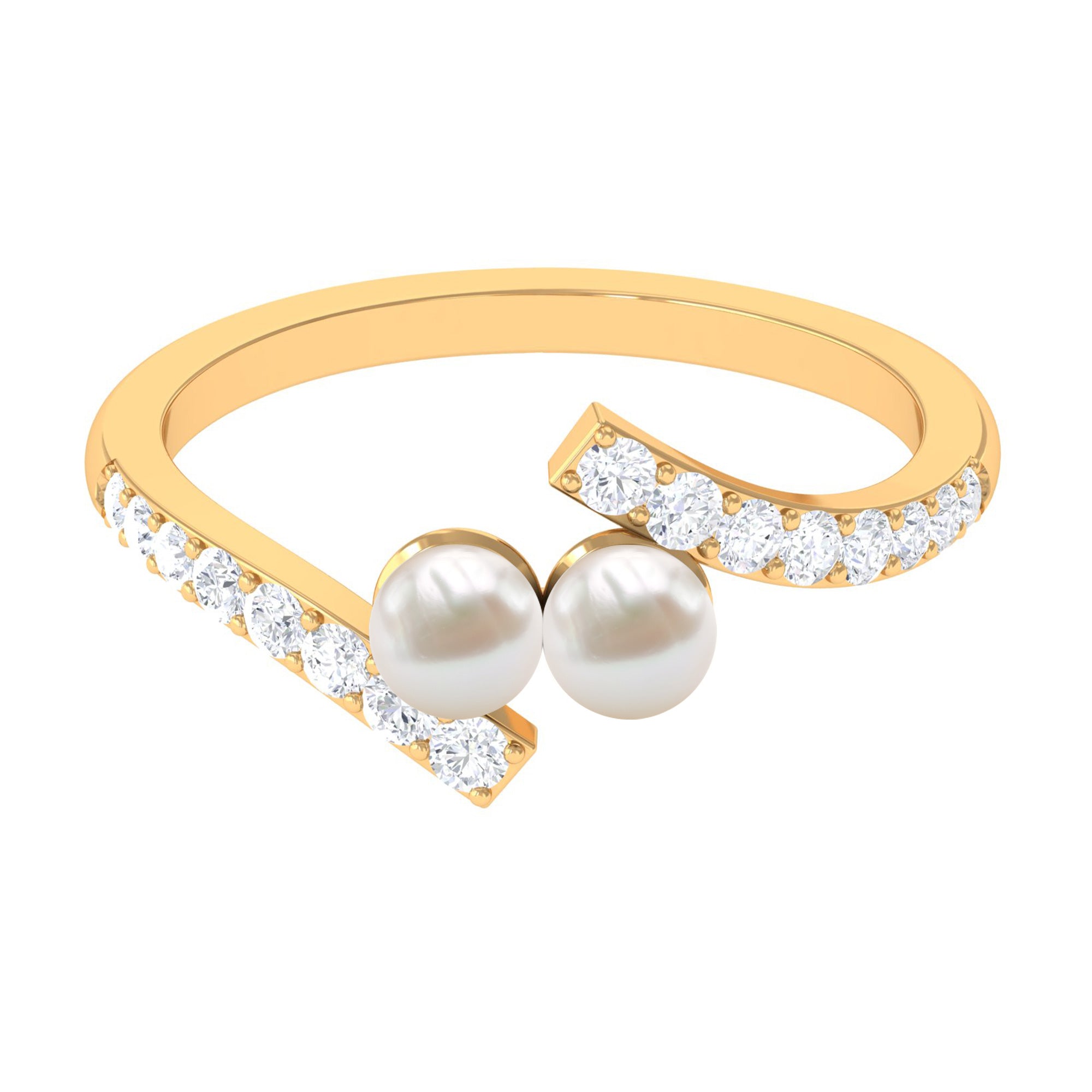 Toi et Moi Freshwater Pearl Bypass Ring with Diamond