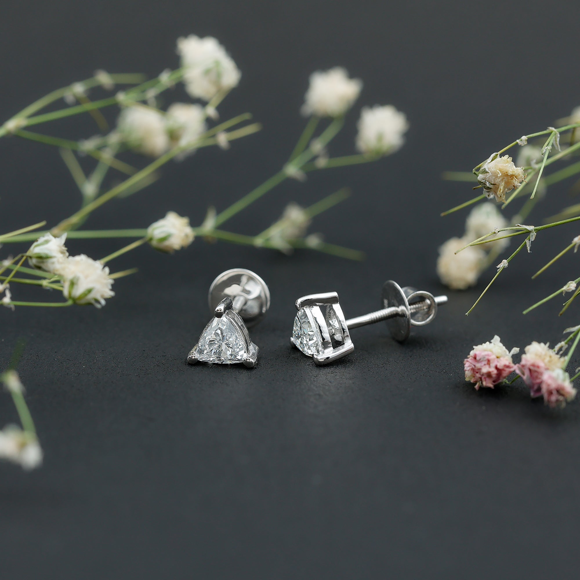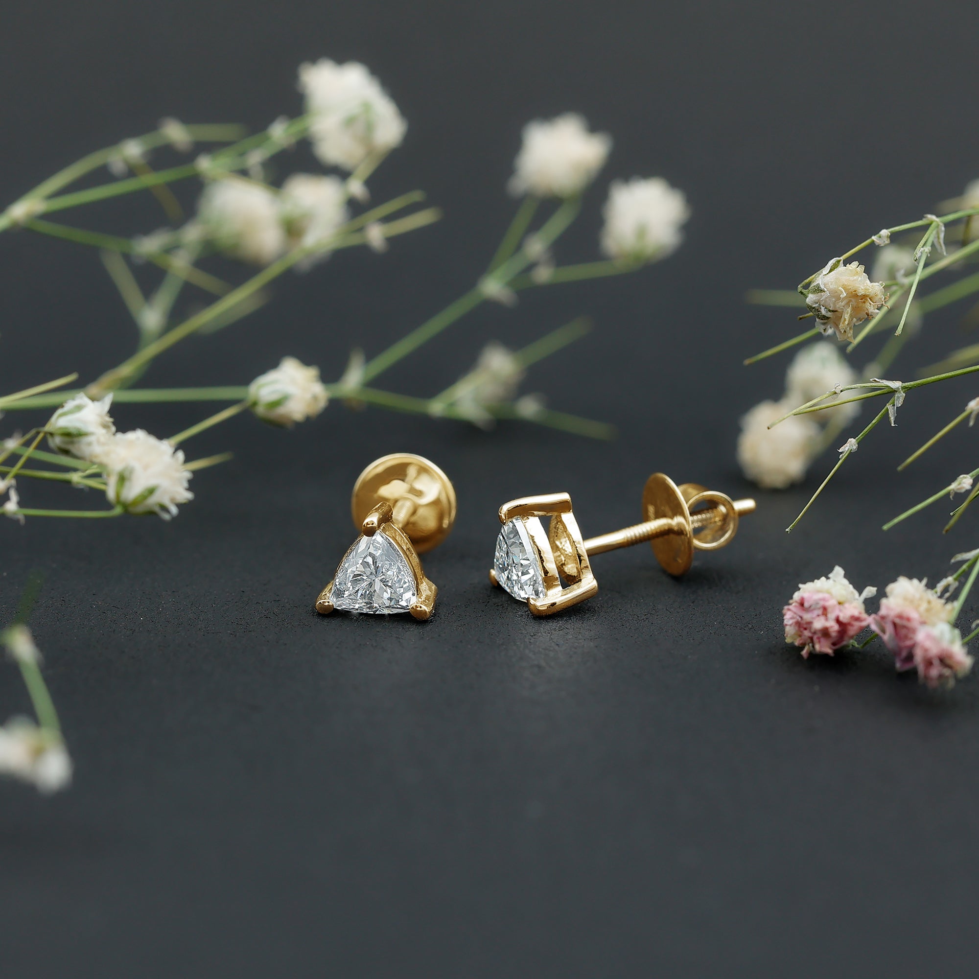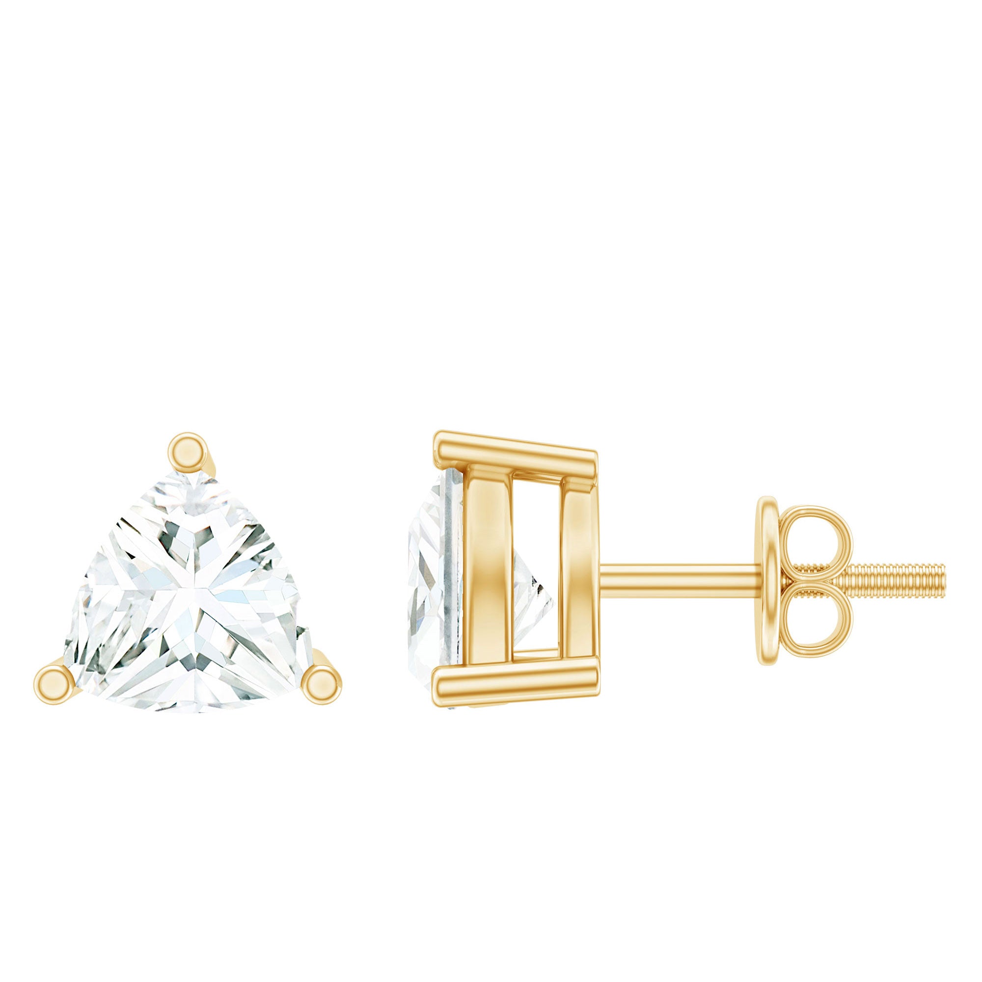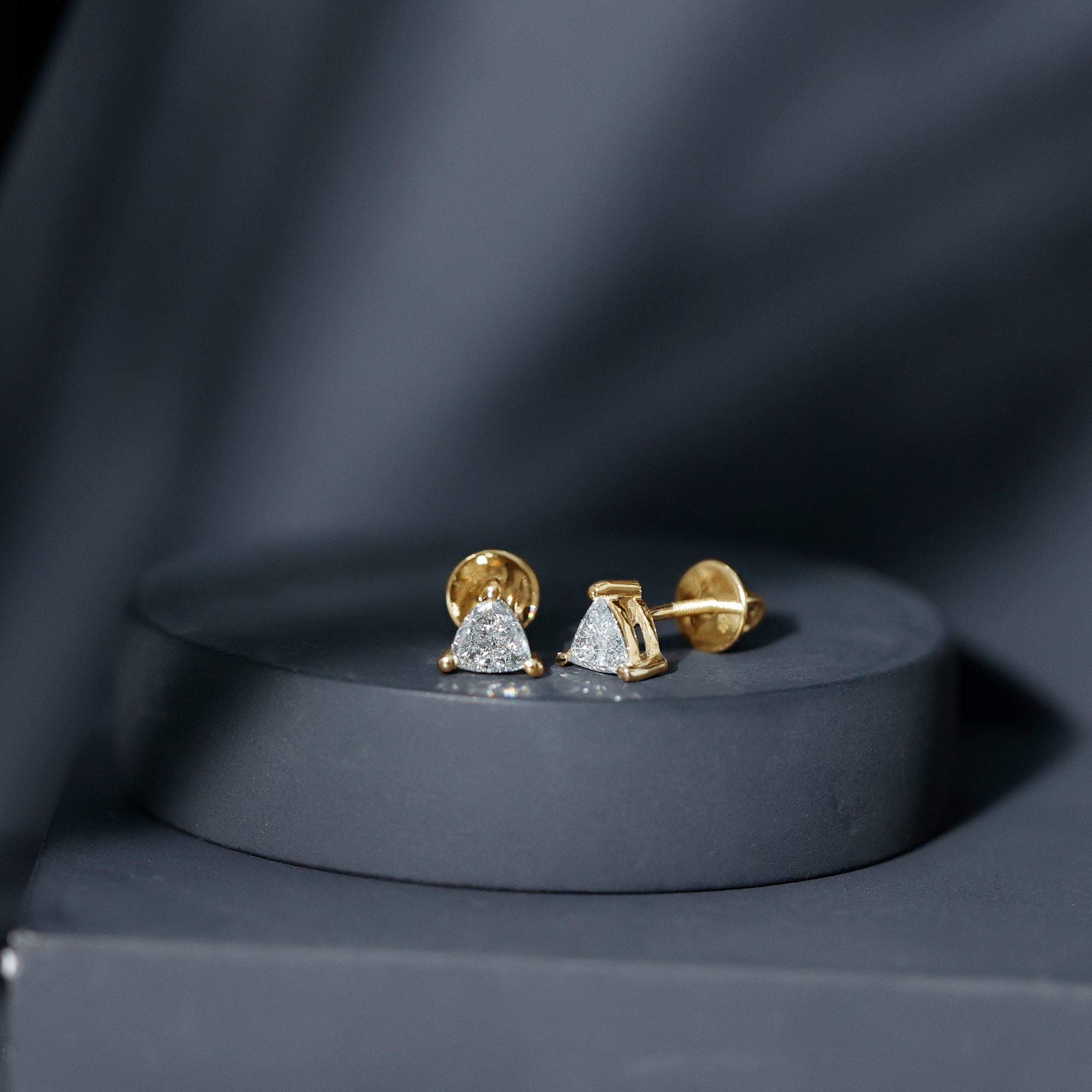 These Lab Grown Diamond Stud Earrings exude effortless elegance, providing just the right touch of sparkle. As a timeless addition, these Everyday Earrings showcase the unique diamond cut that seamlessly fits into your daily essential accessories. This sparkling pair of earrings highlights the fire and brilliance of EF color VS clarity lab-grown diamonds with a classic touch. The timeless charm of these Triangle Stud Earrings features a 5 MM trilliant cut lab made diamond set in prong setting. Renowned for their dazzling shine, these Diamond Solitaire Earrings come with a screw back closure that ensures they stay secure throughout the day, making them an outstanding choice for fashion lovers. They offer a sophisticated and elegant appearance, adding a hint of glamor to your ensemble.