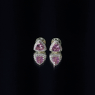 Trilliant Cut Pink Tourmaline and Diamond Stud Earrings in Silver