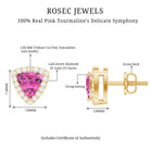 Looking for something that says bold, bright, and beautiful, just like you? These Pink Tourmaline Earrings make every moment shine a little brighter, crafted thoughtfully in 14K yellow gold plated silver. At the heart of each earring sits a 5 MM trilliant cut Pink Tourmaline, securely set in prong setting that highlight its unique triangular shape. Surrounding the center gem is a dazzling halo of round lab grown diamonds, each one precisely placed to form a seamless frame of brilliance. The diamond EF color and VS clarity bring high quality shine that complements the AAA quality tourmaline vivid charm beautifully. These Pink Tourmaline and Diamond Earrings come with screw-back posts, offering both comfort and security, so you can wear them all day or night without worry. Whether you are dressing up for a special occasion or simply adding a pop of personality to your everyday look, these Pink Tourmaline Stud Earrings are a statement of confidence, elegance, and refined beauty. They also make a meaningful gift for birthdays, anniversaries, or any celebration of love and individuality. Because some pieces dont just accessorize, they speak for you.