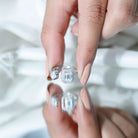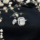 Celebrate the union of you and your lover with this Toi et Moi Ring that depicts two personalities coming together. This ring features a 7X5 MM Emerald Cut Moissanite secured in Prong Setting and encircled by a halo at one end. The other end is decorated with a 4X6 MM Pear Shape Moissanite Secured in Bezel Setting. This Two Stone Engagement Ring beholds the classic shine of D-VS1 Quality, which makes it a perfect ring to be presented on the big day, celebrating love. This Moissanite Ring is been crafted with 14K White Gold Plated Silver and will be delivered to with a certificate of authenticity.