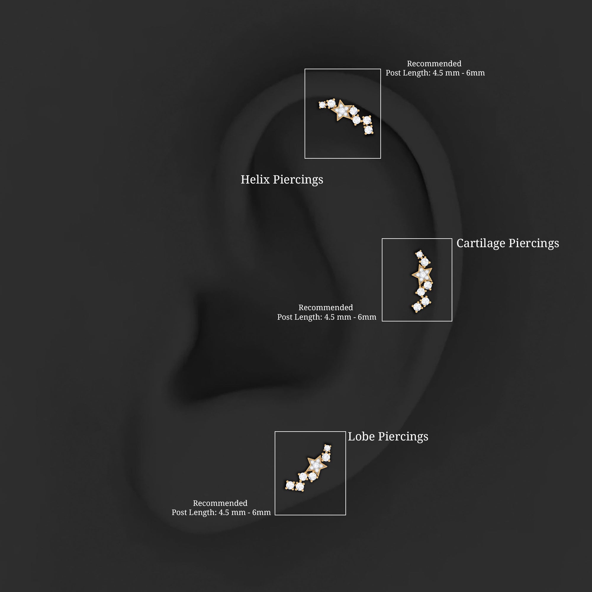 - This piercing earring showcases Round Shape Diamonds set in Prong Setting and features a star design on the top, adding a burst of celestial beauty!