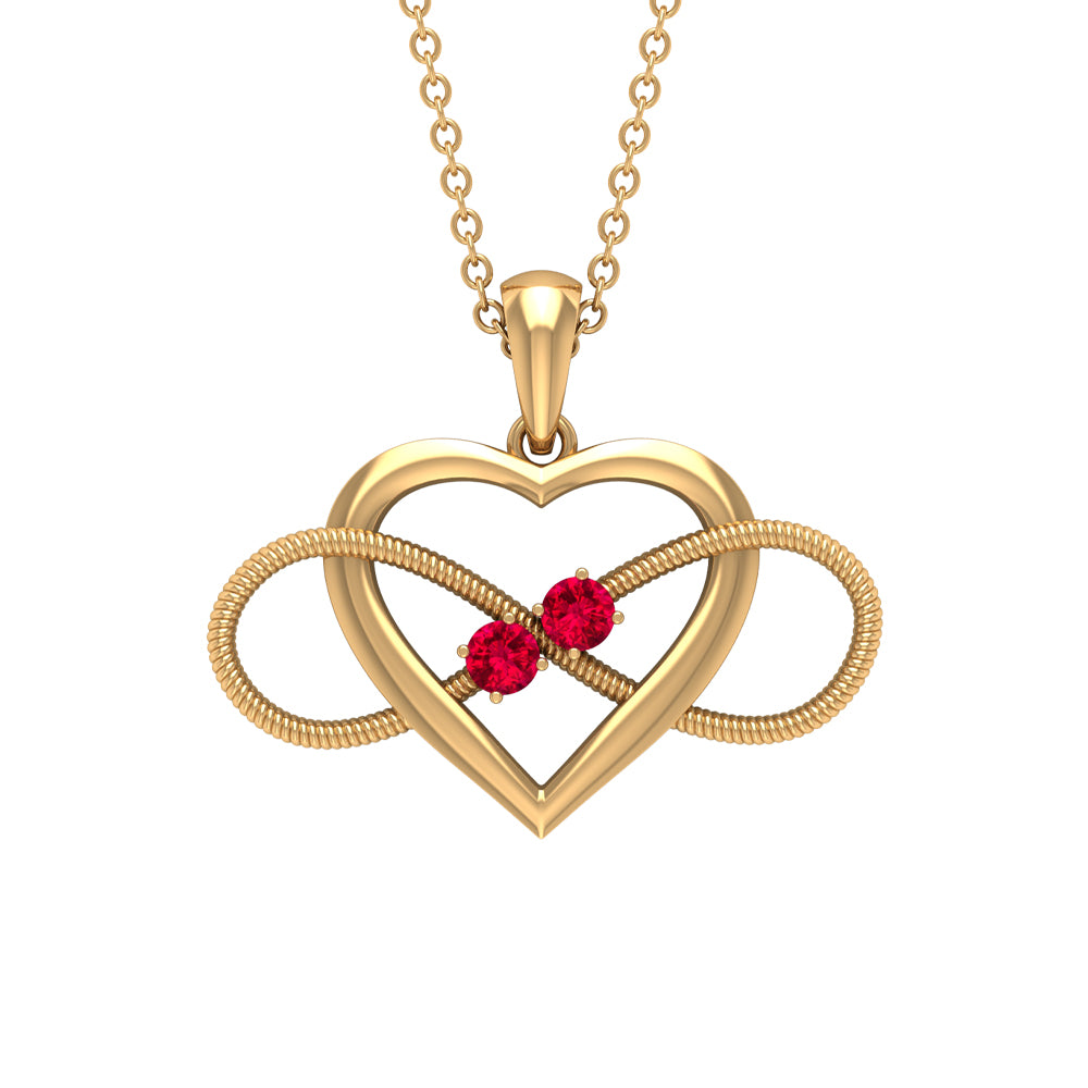 Present this unique looking Pendant Necklace to the one your heart belongs to. Ruby are attached on the Twisted Rope Infinity crossing the Heart Pendant Necklace in a gracious way.
