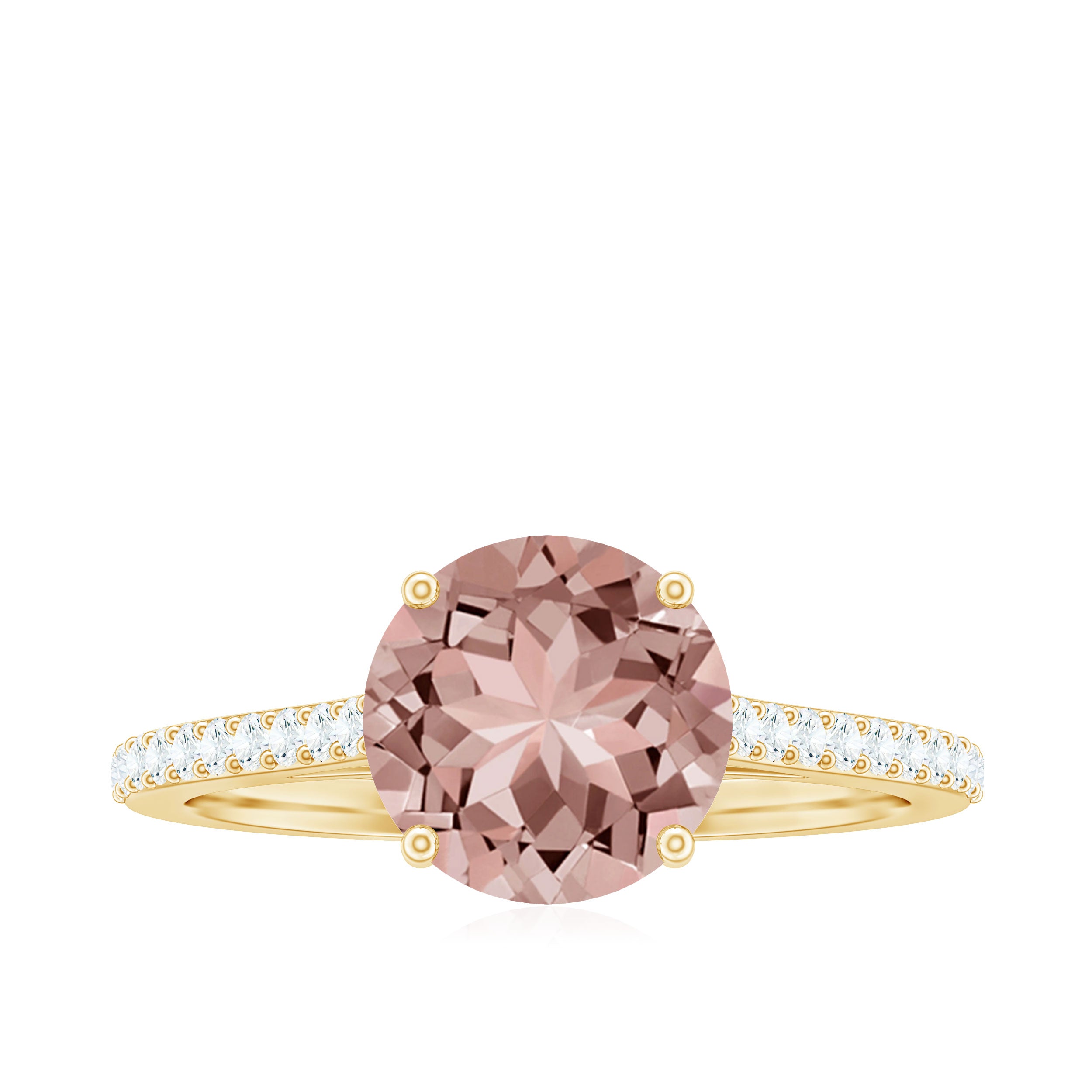 This exquisite Morganite Solitaire Engagement Ring with Diamond is the perfect way to say I love you forever. The ring has a round-shaped morganite gemstone in the center, with its soft peachy hue, symbolizing eternal love and devotion. It is surrounded by sparkling solitaire side Diamond in a basket setting. This ring is crafted with the finest workmanship and will surely become a cherished heirloom that will be passed down for generations. Imagine your beloveds face as she slips on this stunning ring. She will be filled with joy and excitement.