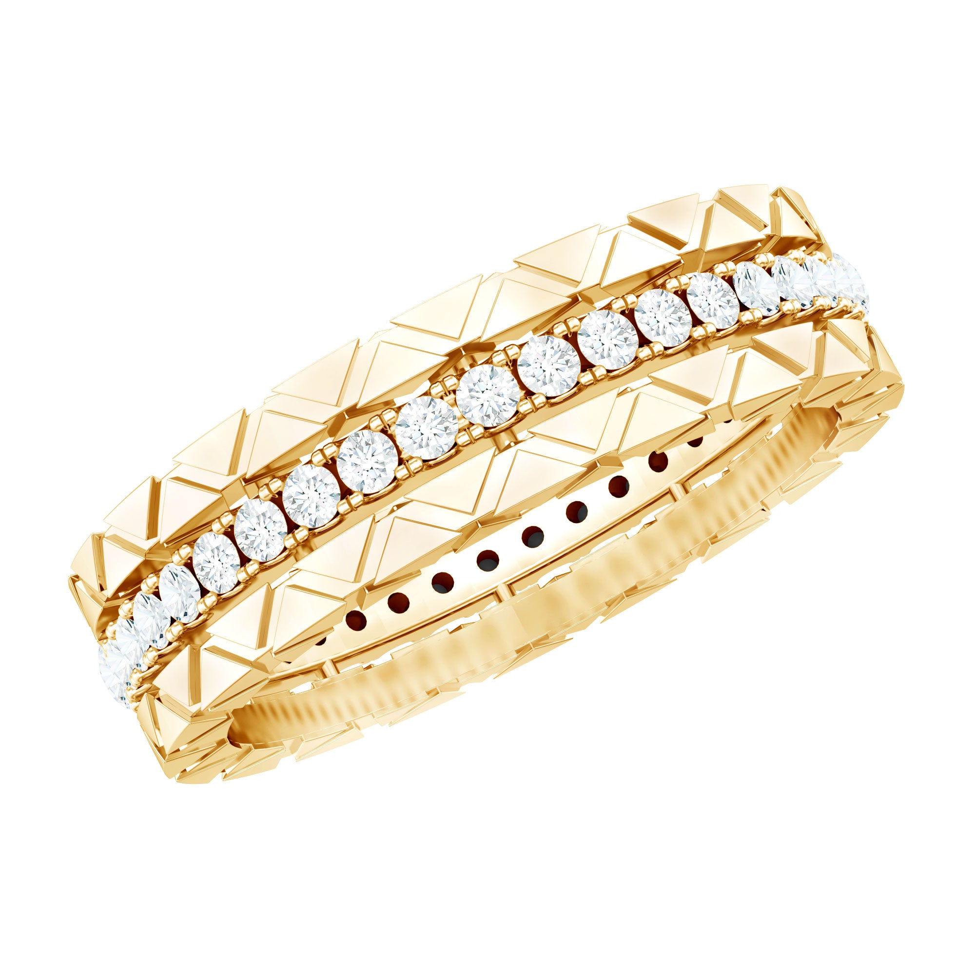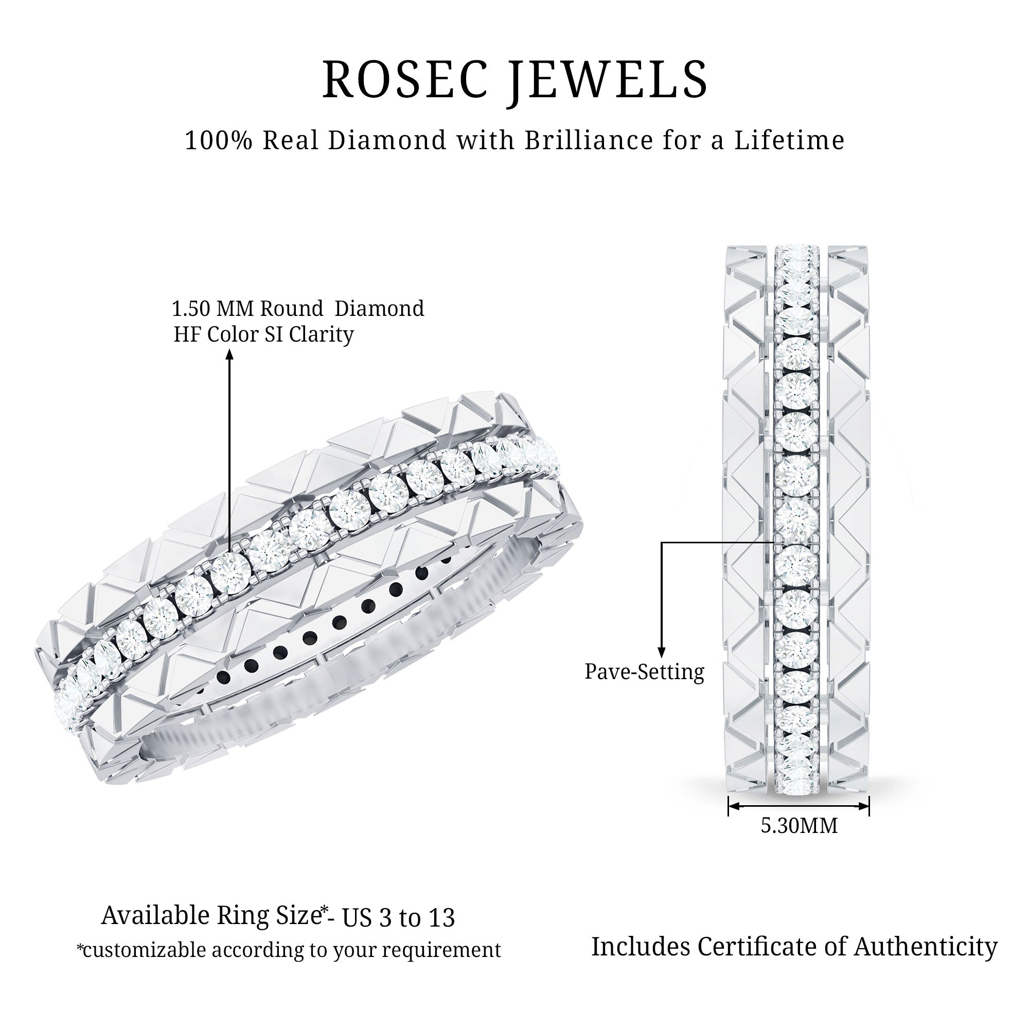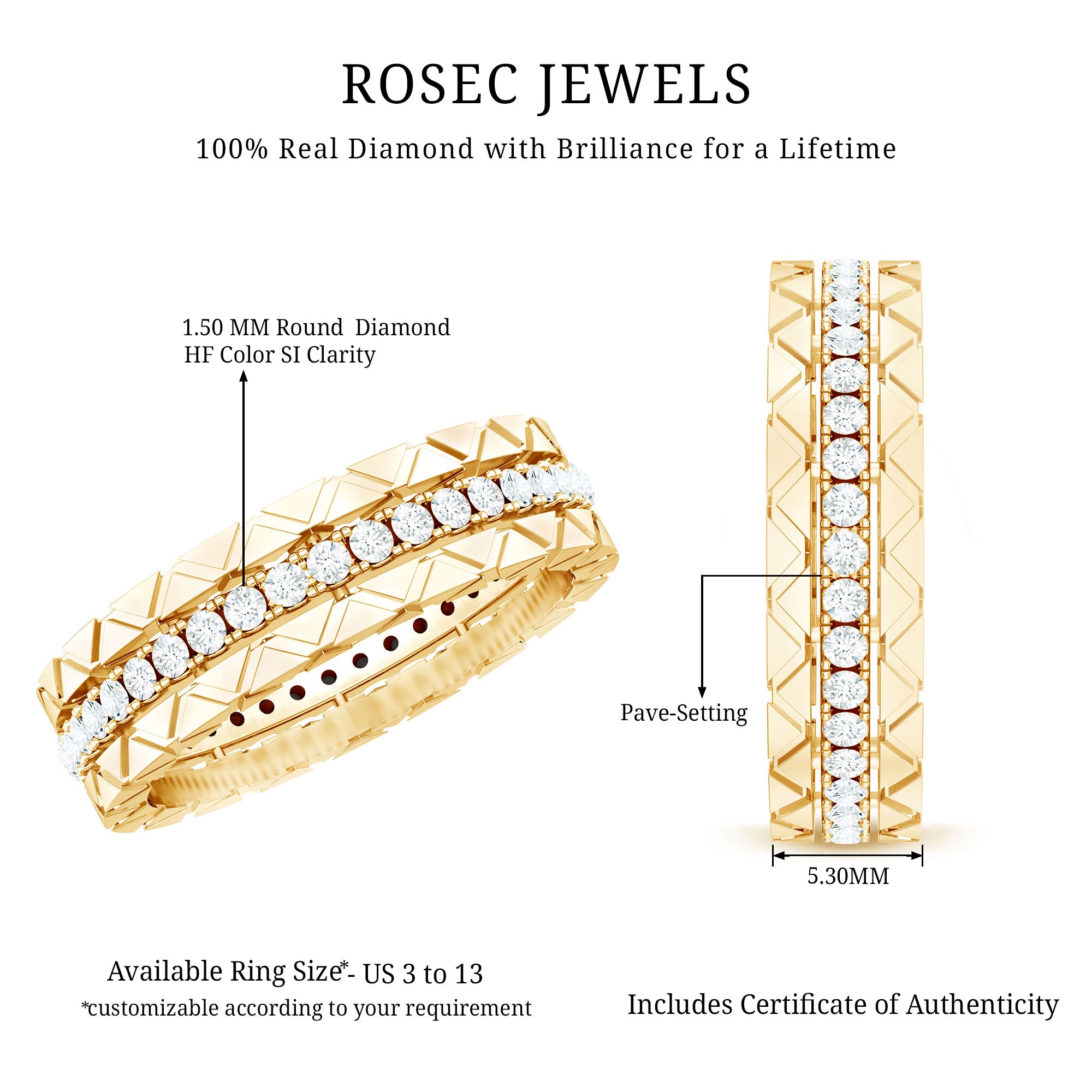 Unisex Diamond Eternity Band Ring with Textured Gold Embellishment