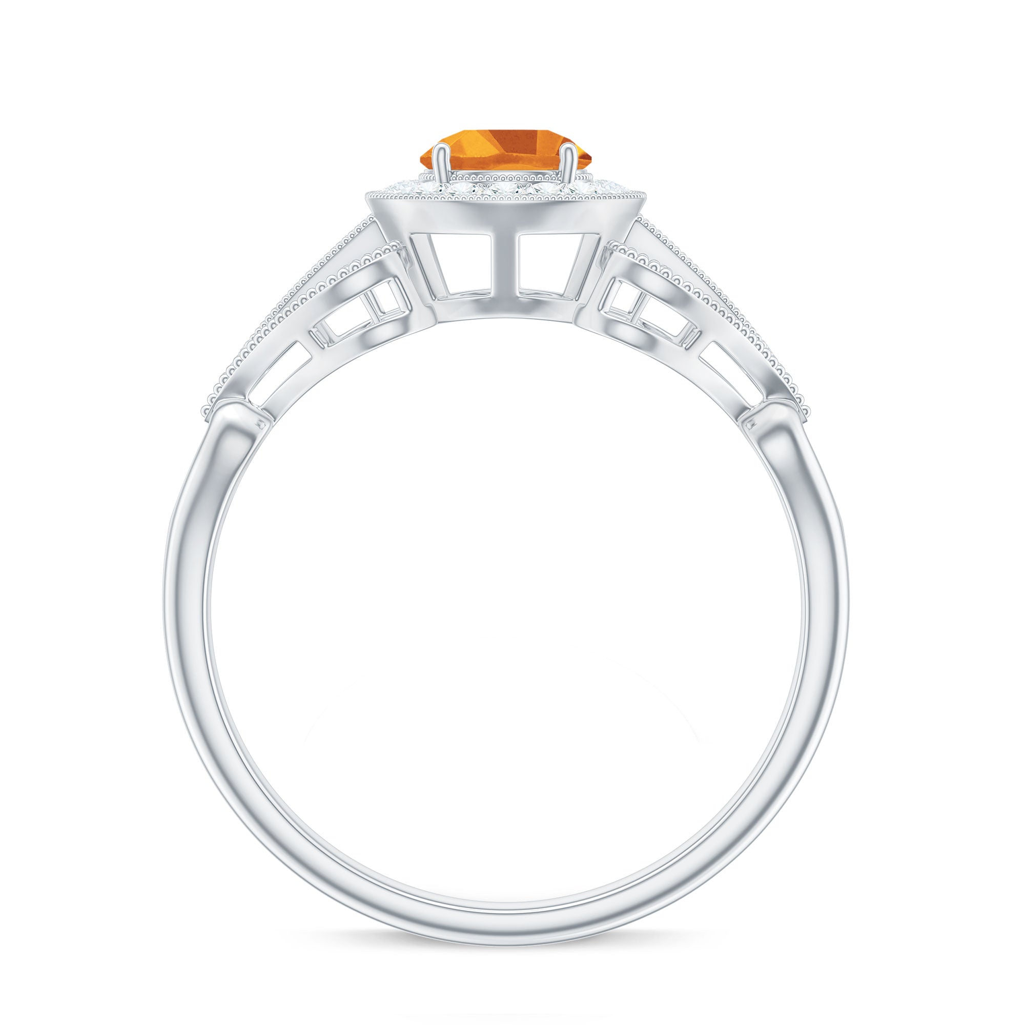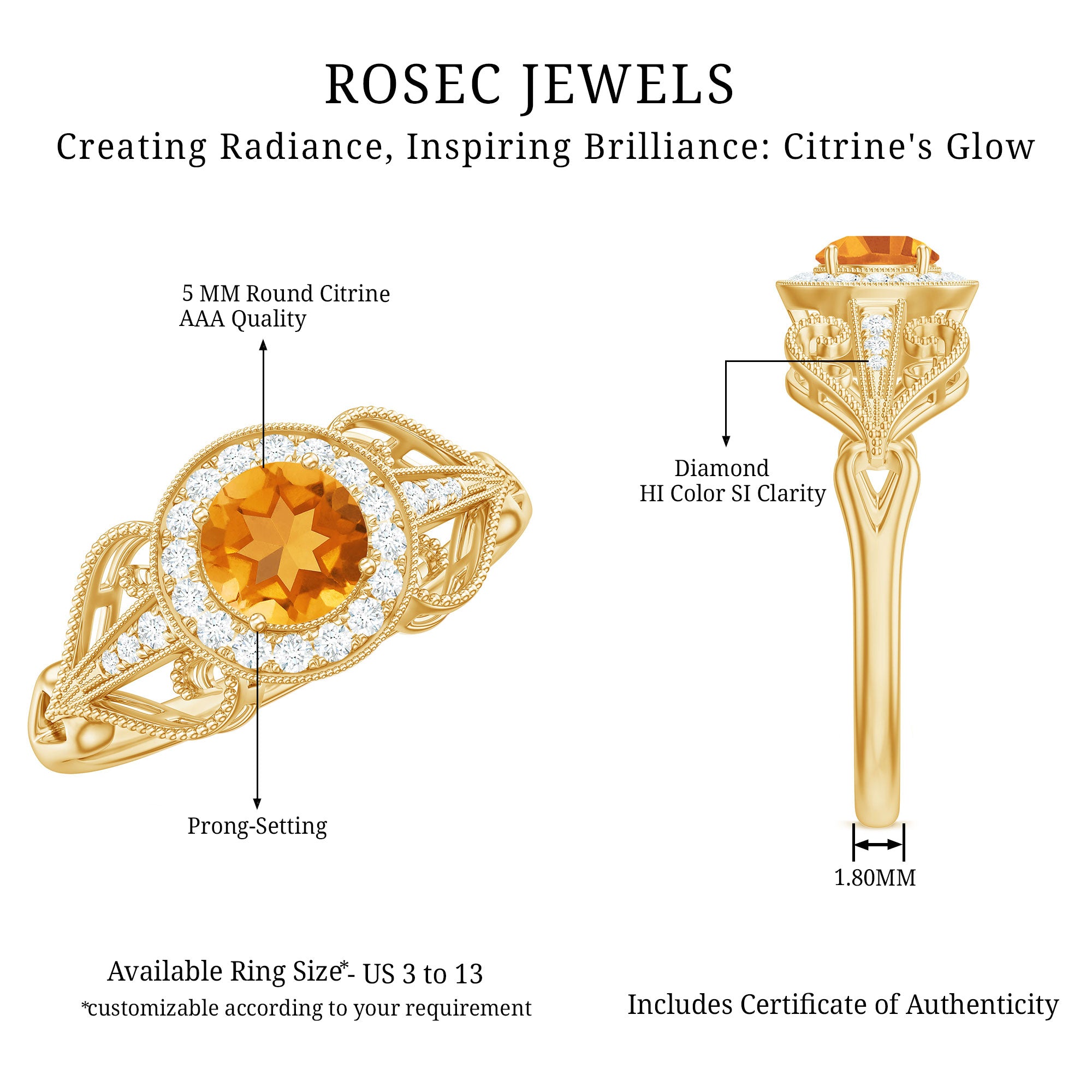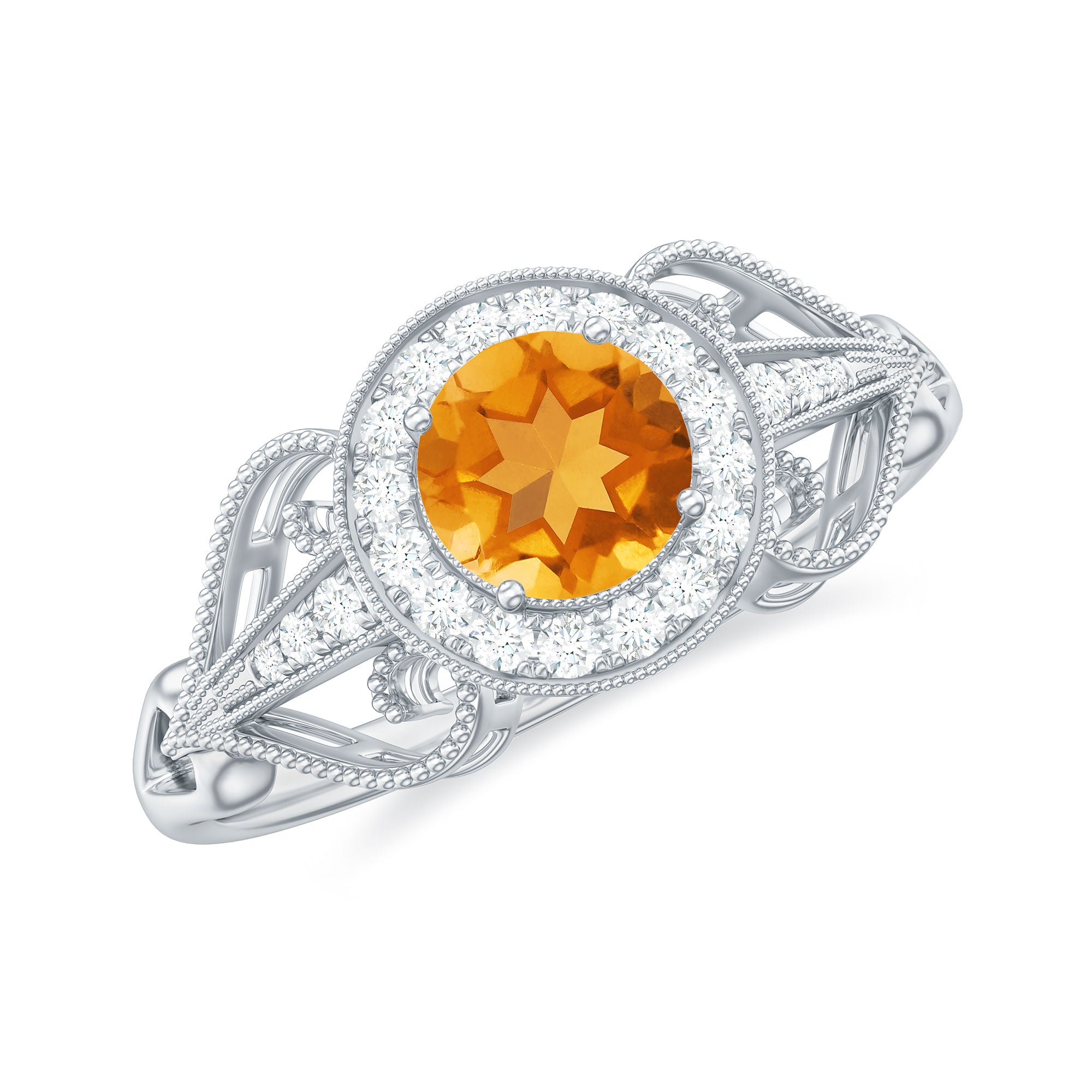 Vintage Citrine Diamond Engagement Ring with Beaded Detail