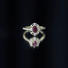 Infused with the charm of vintage romance, this Rhodolite Garnet Engagement Ring beautifully blends old-world elegance with timeless style. Crafted in yellow gold plated silver, the design is inspired by classic Art Deco details, perfect for someone who loves jewelry with a story to tell. At the heart of this Vintage Looking Engagement Ring is a 4X6 MM oval shaped Rhodolite, held securely in prong setting. Surrounding the center stone and lining the shank are round lab grown diamonds, adding a soft sparkle that enhances the romantic appeal of the piece. The detailed diamond accents create a sparkling effect, adding brilliance without overpowering the center stone. Each element of the design is thoughtfully placed, giving the Rhodolite and Diamond Ring a balanced and refined look that catches the light and hearts with every movement. Whether you are celebrating a promise, marking a milestone, or simply gifting something meaningful, this Vintage Inspired Rhodolite Ring makes a beautiful choice. Delicate, dreamy, and full of warmth, this Rhodolite Ring is perfect for someone who values beauty with depth and design with heart.