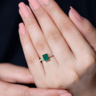 When love is bold and beautiful, you want a ring that speaks volumes without uttering a single word. This Emerald and Diamond Engagement Ring combines vintage charm with a contemporary flair, resulting in a stunning and meaningful piece. At its heart lies a 5X7 MM emerald cut emerald, securely held in prong setting. What truly distinguishes this Vintage Emerald Ring is the band, which is thoughtfully designed with diamonds that gracefully cascade down the sides. Each diamond sparkles brilliantly, giving the Emerald Cut Engagement Ring a gentle shimmer from every perspective. The gallery showcases a delicate beaded design along with additional diamonds that infuse a hint of vintage allure and romance, making the entire piece feel like it has a story to tell. Whether marking the start of forever, celebrating an anniversary, or simply surprising someone special, this Emerald Solitaire Ring symbolizes love, strength, and care. The blend of AAA quality emerald and HI-SI quality diamonds ensures it exudes elegance and enduring brilliance. This Emerald Engagement Ring is comfortable enough for everyday wear yet striking enough for lifes most significant occasions, designed to be cherished for years ahead.